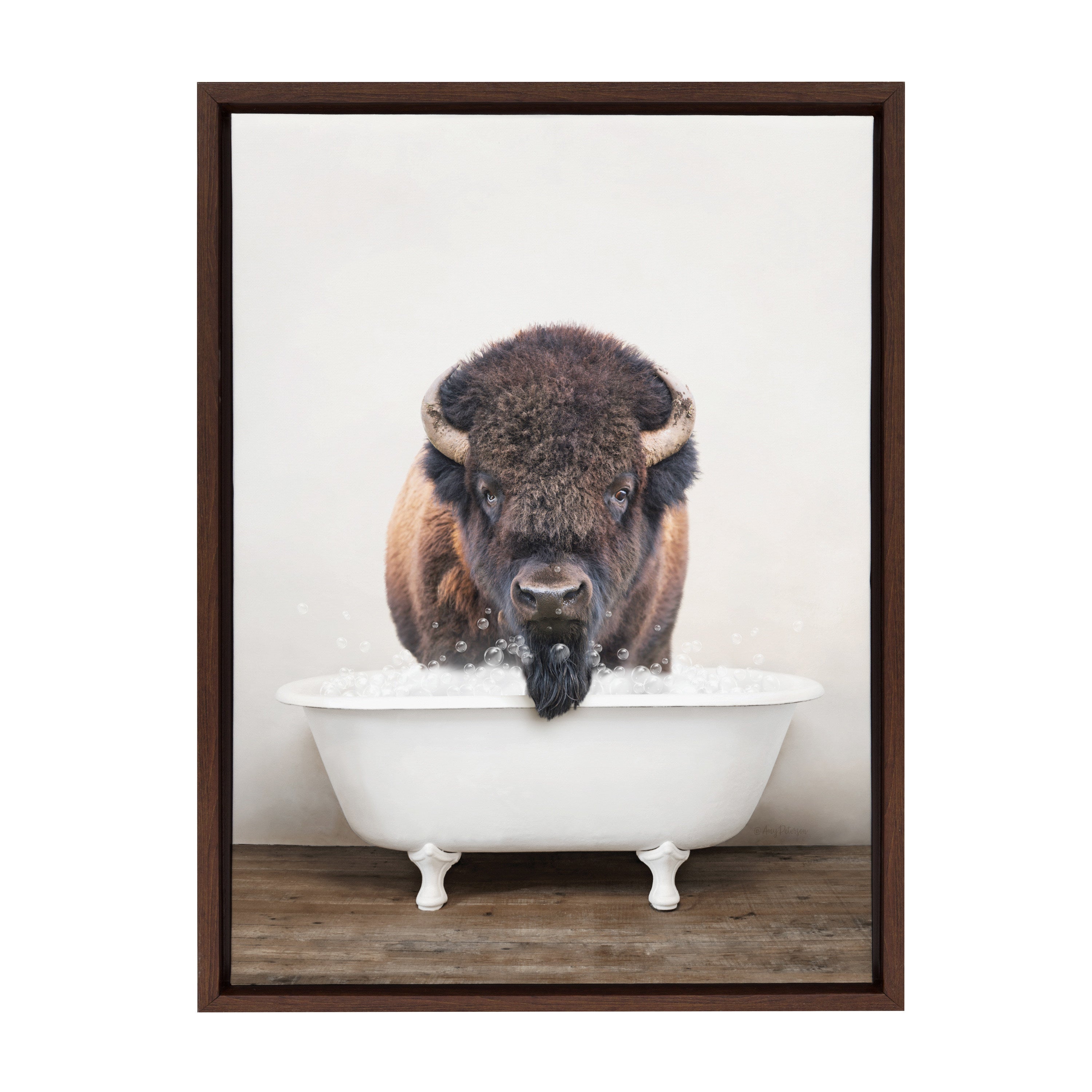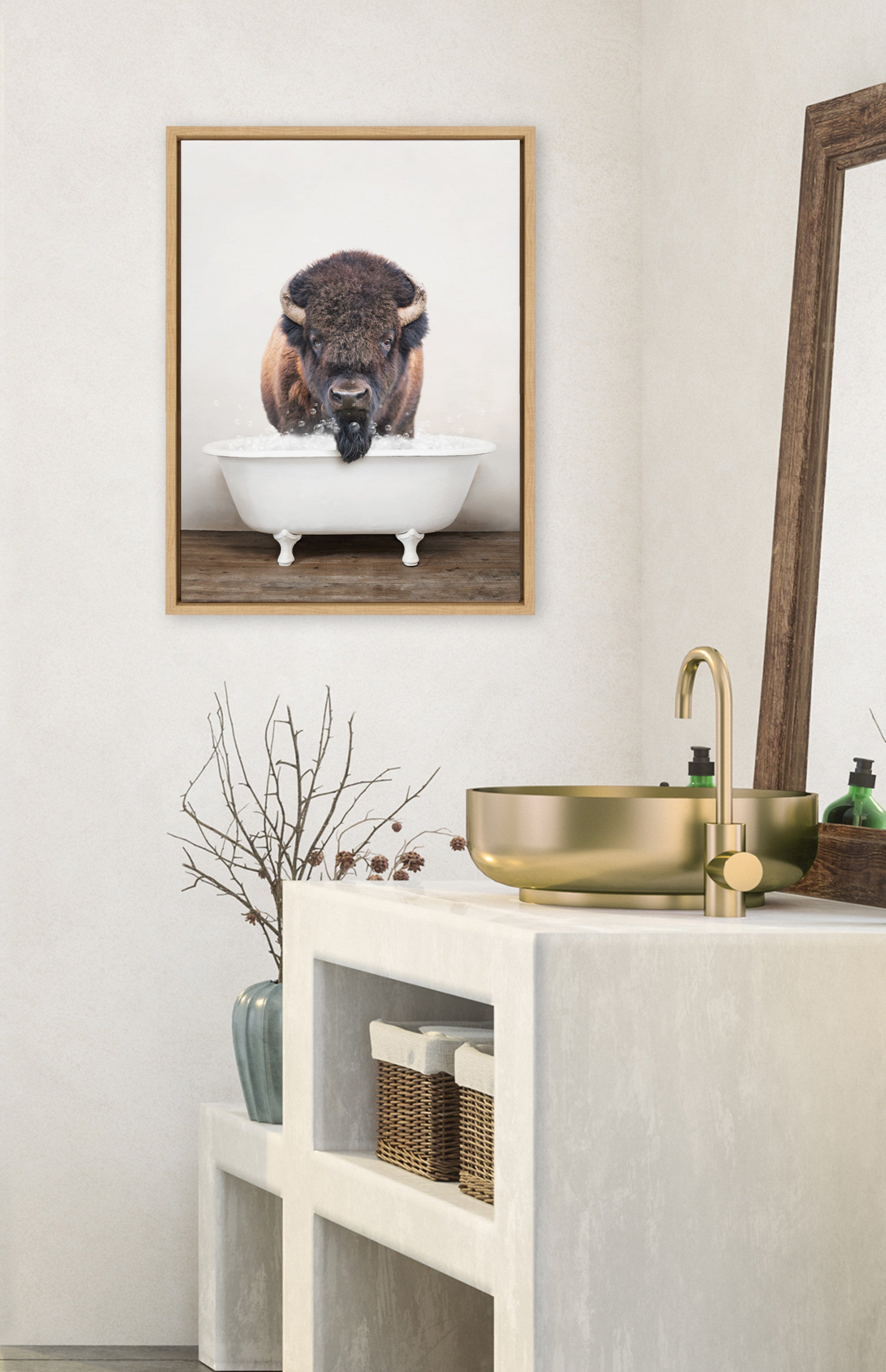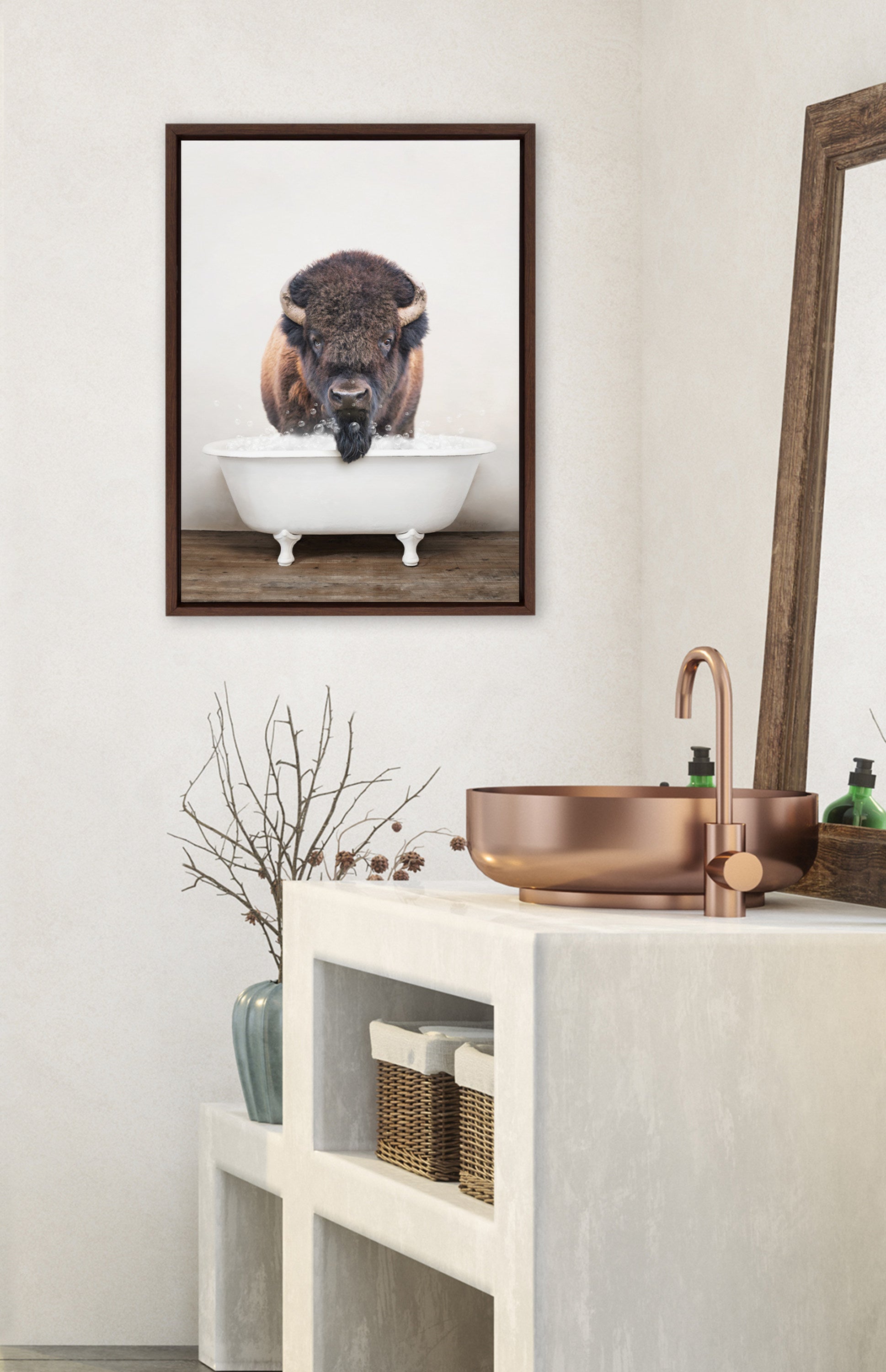Sylvie Bison Rustic Bubble Bath Framed Canvas by Amy Peterson Art Studio
