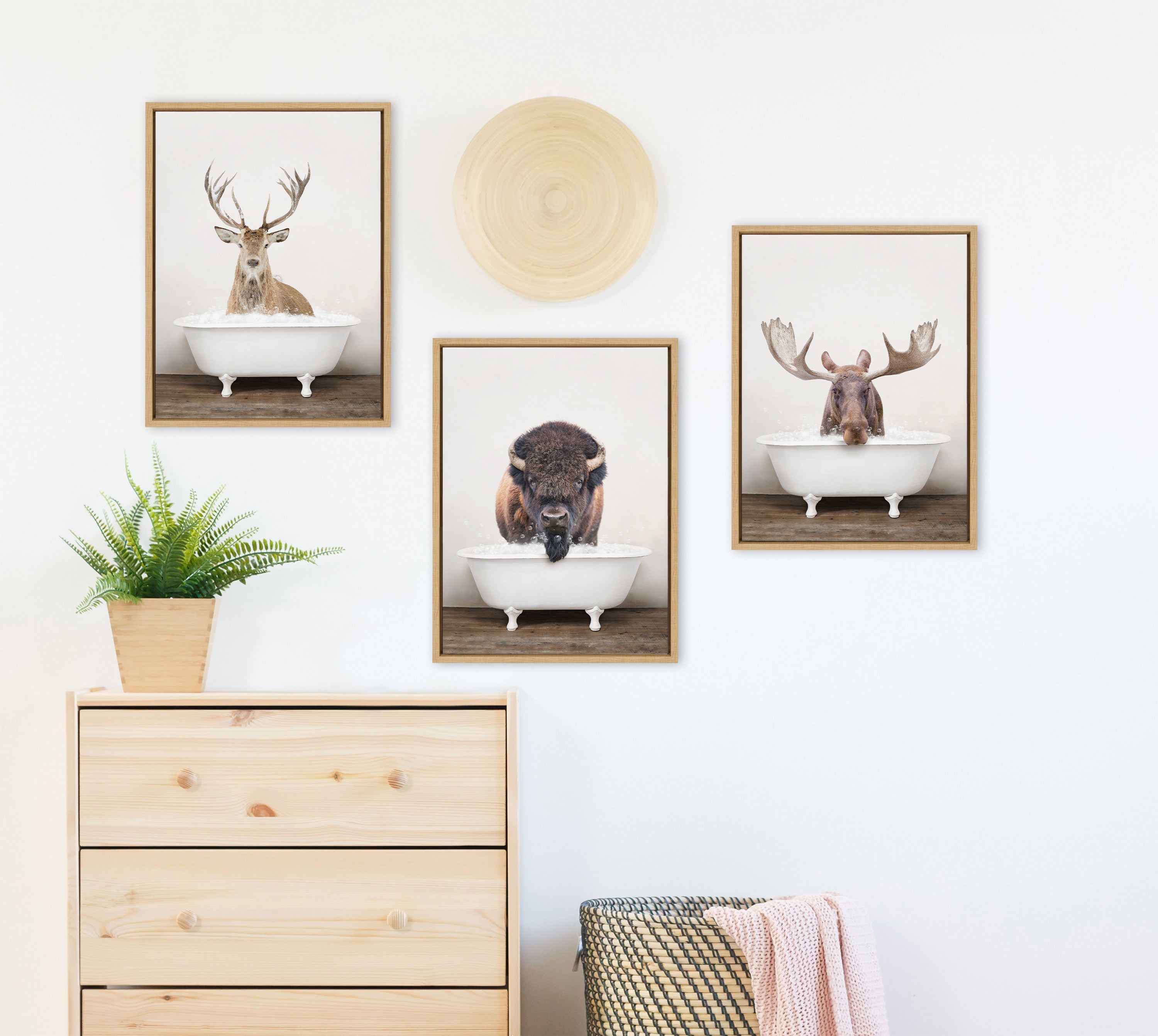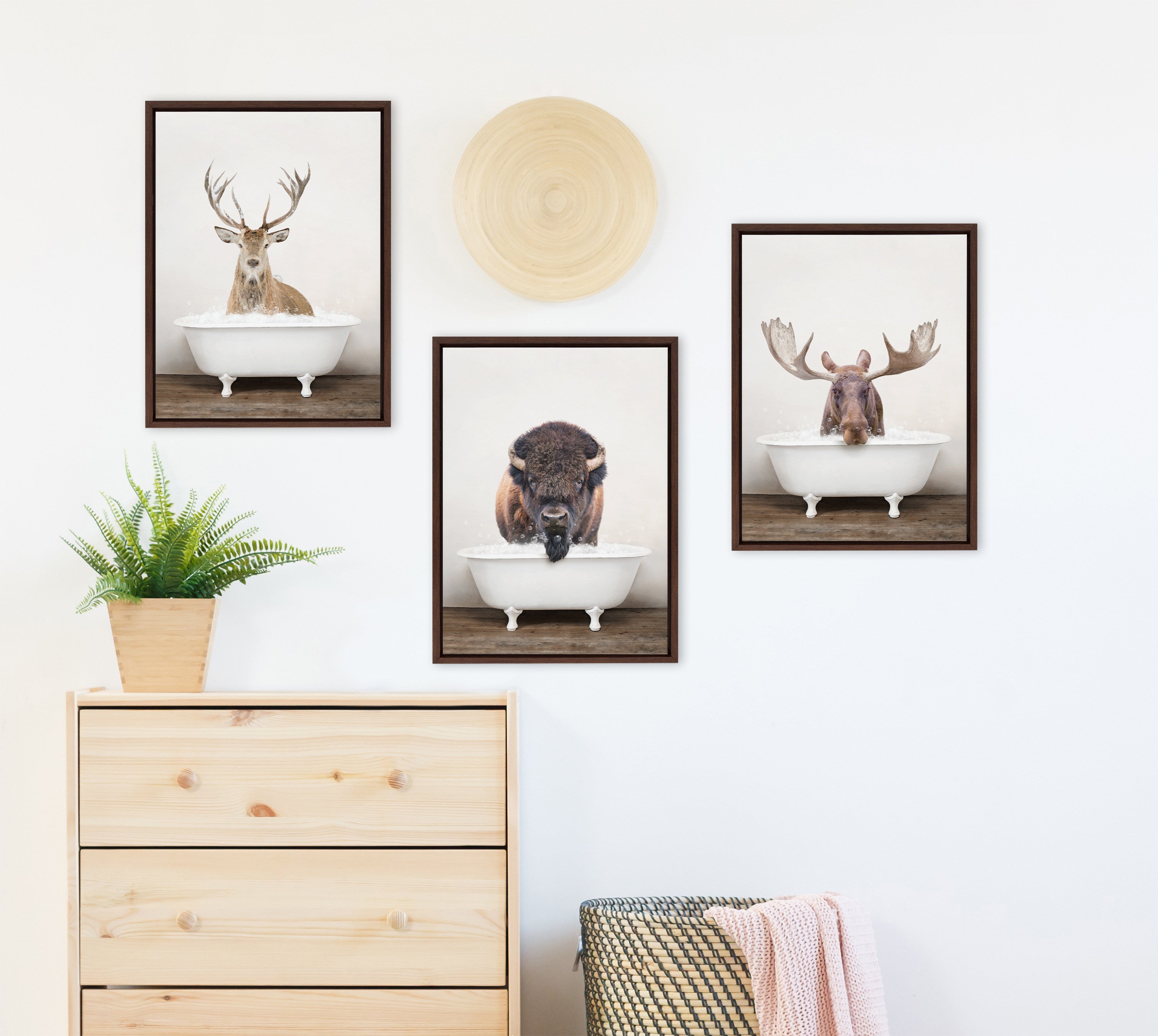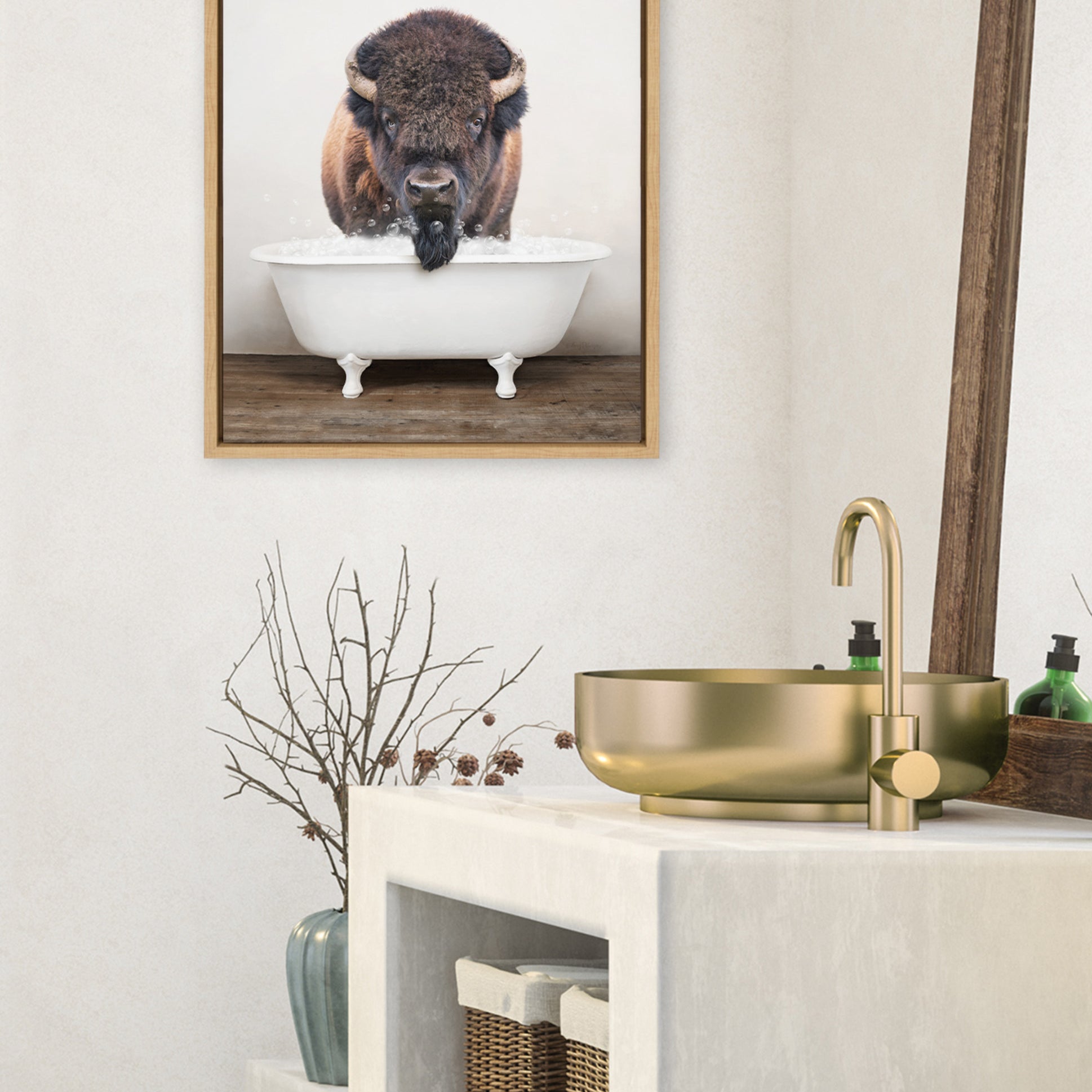 Sylvie Bison Rustic Bubble Bath Framed Canvas by Amy Peterson Art Studio