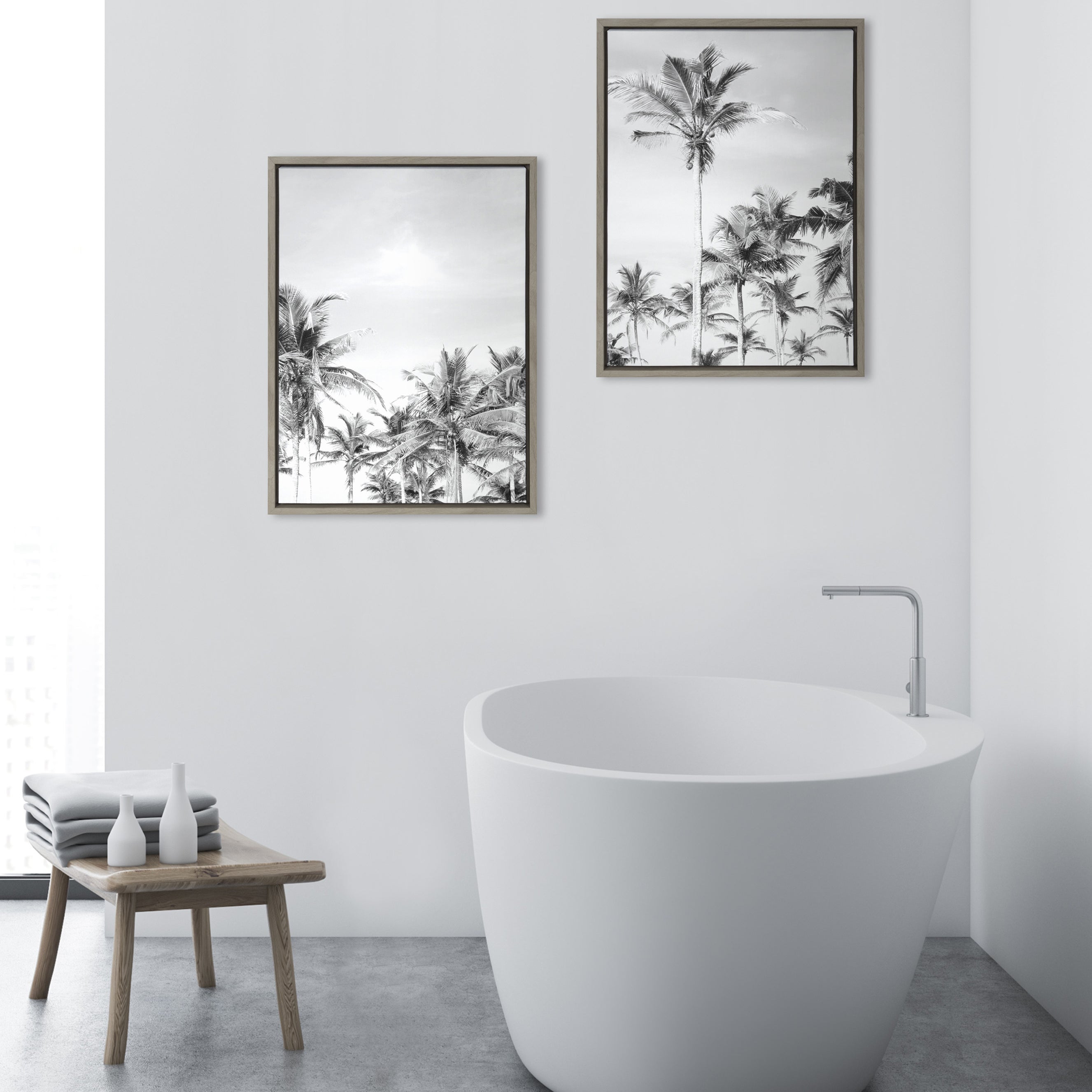 Create a tropical themed space without being too overpowering with this gorgeous palm tree art set. Printed and framed in the USA in Waunakee, Wisconsin, this framed floating canvas art set will be a pleasure to look at every day in your living room, bedroom, office, or any room in the home. This curated set also makes an excellent gift for birthdays, holidays, or house-warming parties. Printed on gallery-wrapped canvas and framed with a lightweight polystyrene frame, this wall art set is easy to display on the wall.