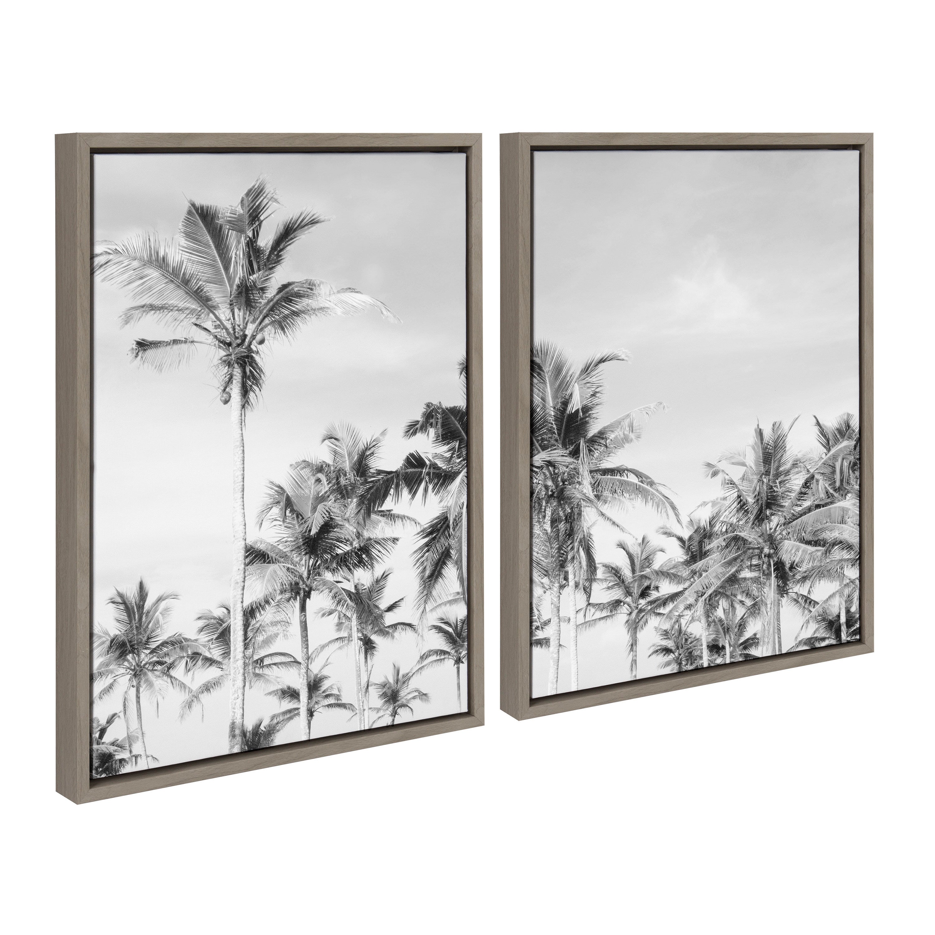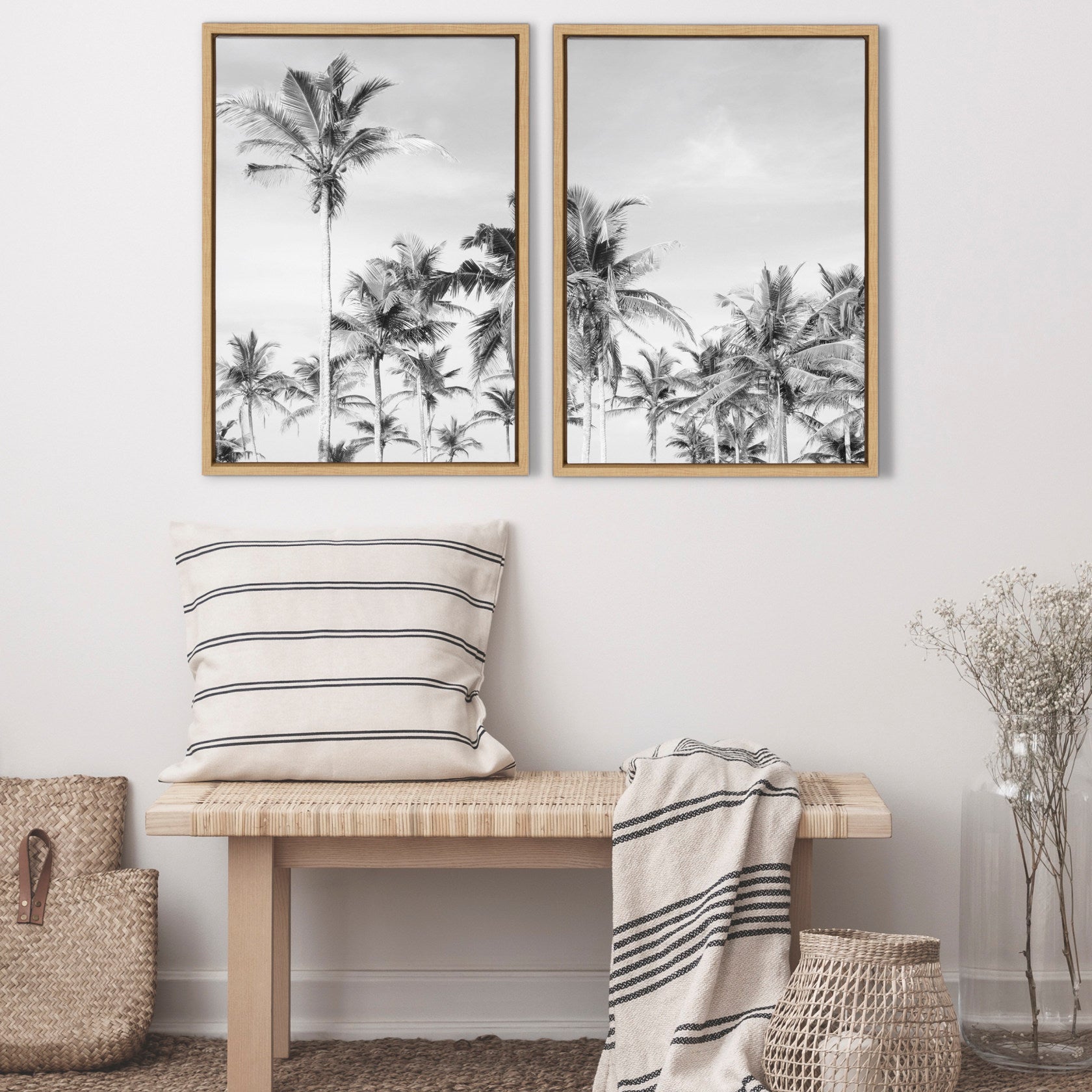 Sylvie Coastal Coconut Palm Tree Beach BW Framed Canvas Set by The Creative Bunch Studio