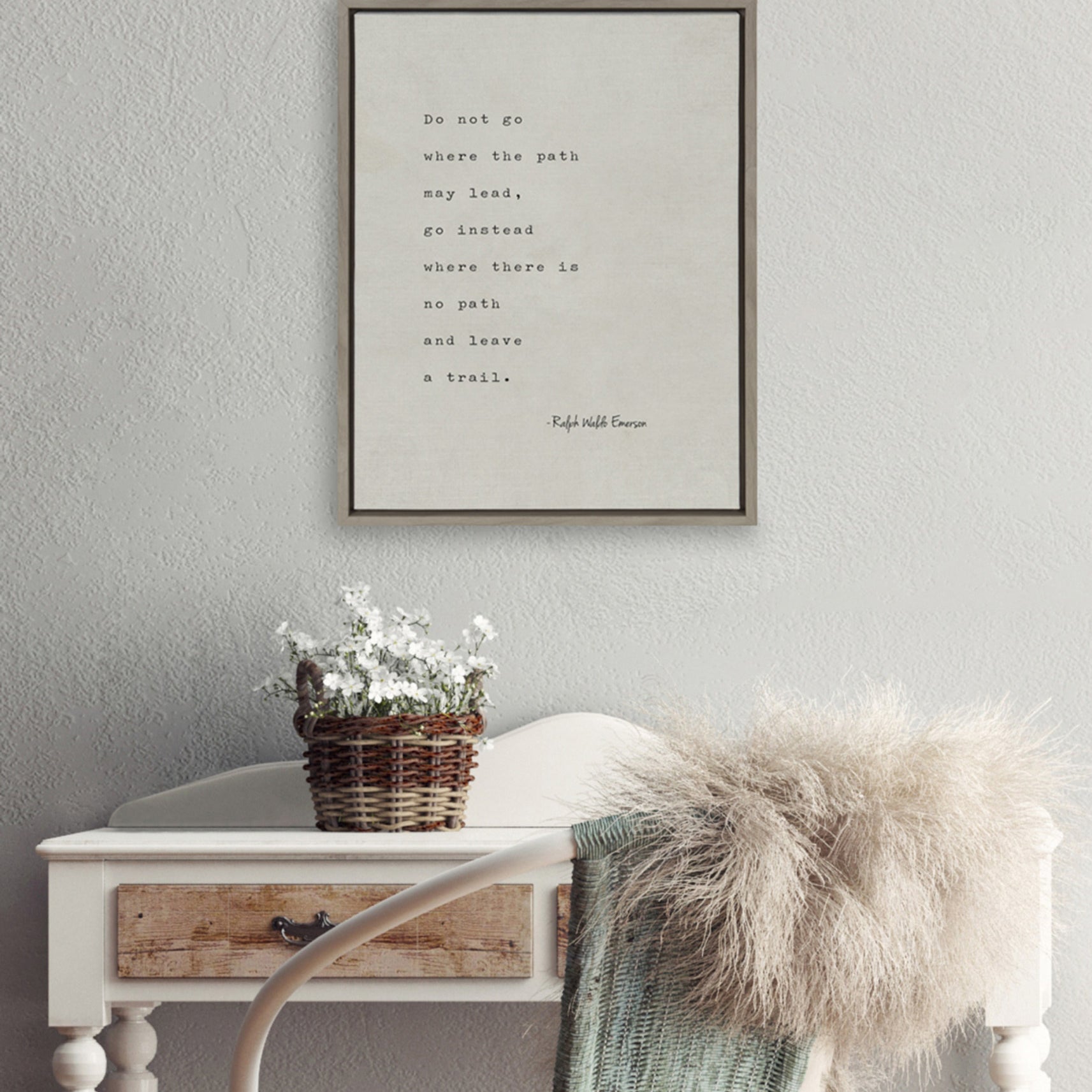 Re-energize your passion for creativity with this quote by Ralph Waldo Emerson. Printed and framed in the USA in Waunakee, Wisconsin, this framed floating canvas art will be a pleasure to look at every day in your living room, bedroom, office, or any room in the home. This art print also makes an excellent gift for birthdays, holidays, or house-warming parties. Printed on gallery-wrapped canvas and framed with a lightweight polystyrene frame, this wall art has two hangers already attached to the MDF back for easy wall display.