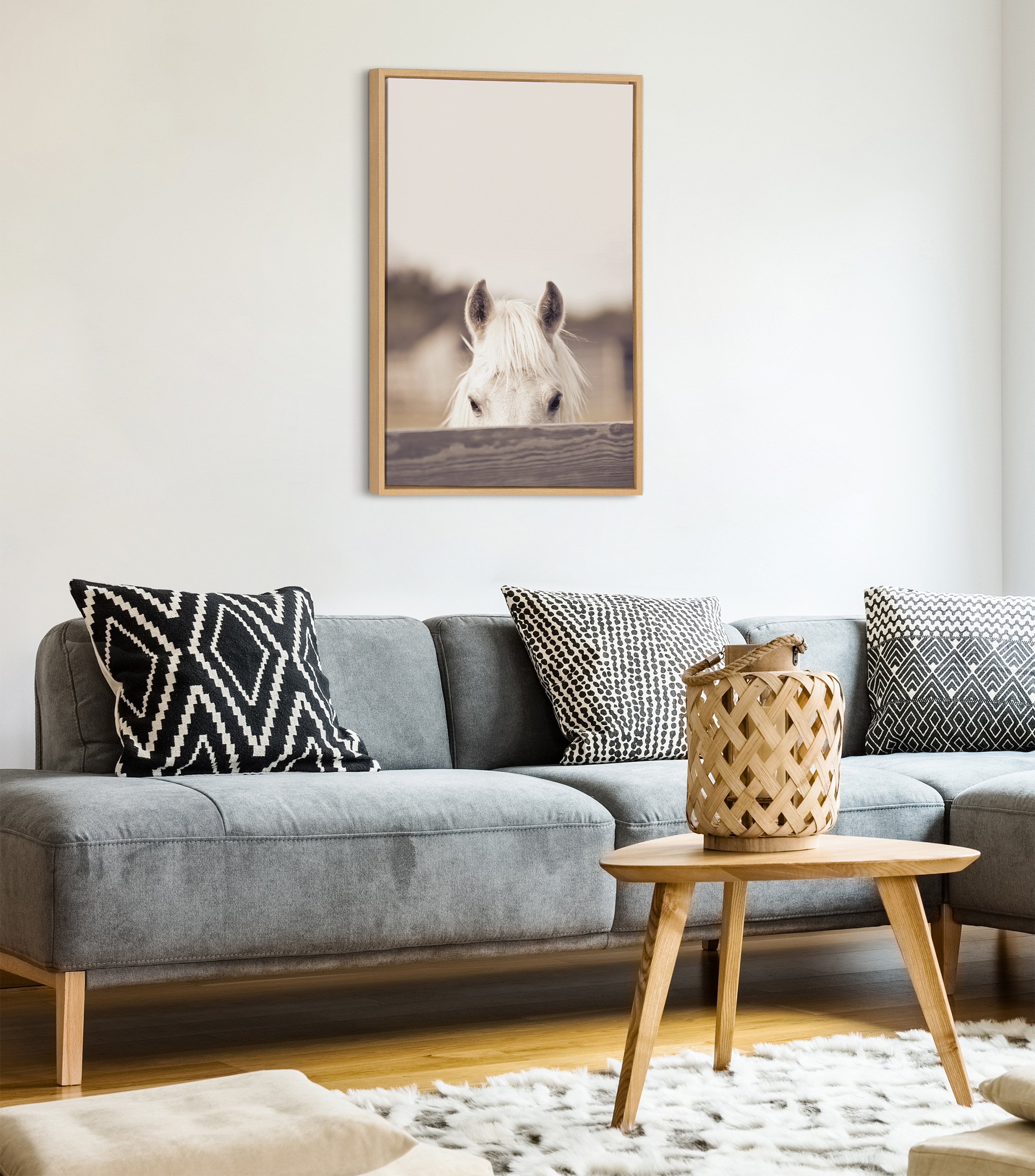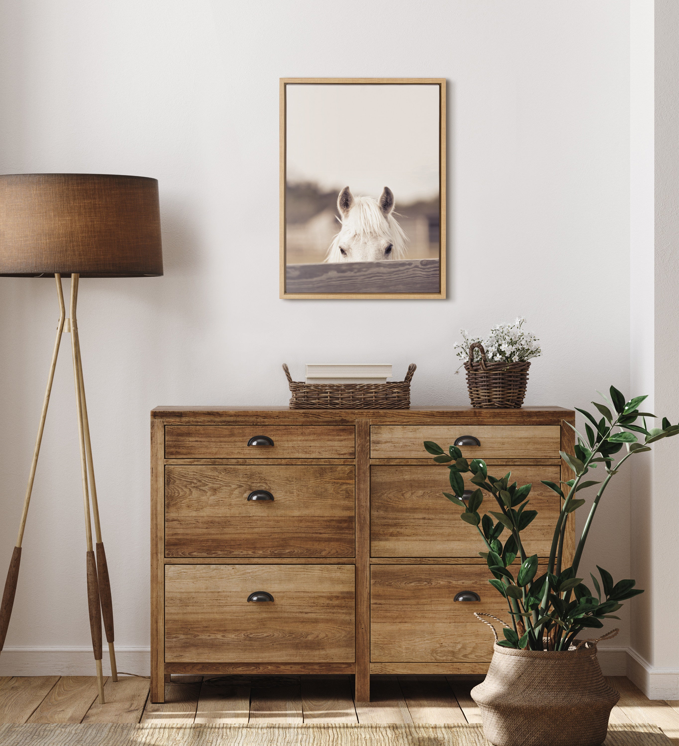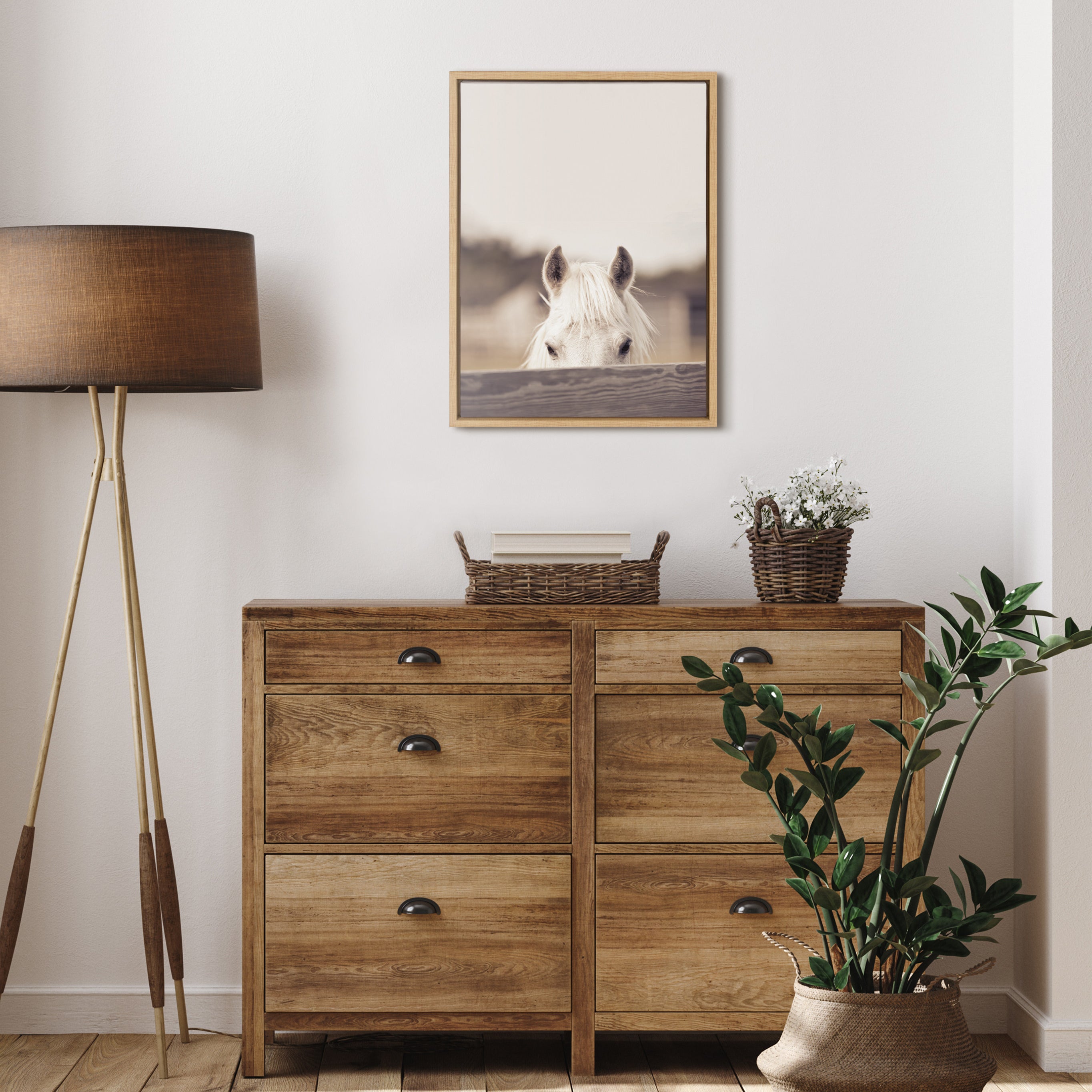 Escape to a place of freedom and wide-open prairies with this ranch-style horse print. Printed and framed in the USA in Waunakee, Wisconsin, this framed floating canvas art will be a pleasure to look at every day in your living room, bedroom, office, or any room in the home. This art print also makes an excellent gift for birthdays, holidays, or house-warming parties. Printed on gallery-wrapped canvas and framed with a lightweight polystyrene frame, this wall art has two hangers already attached to the MDF back for easy wall display.