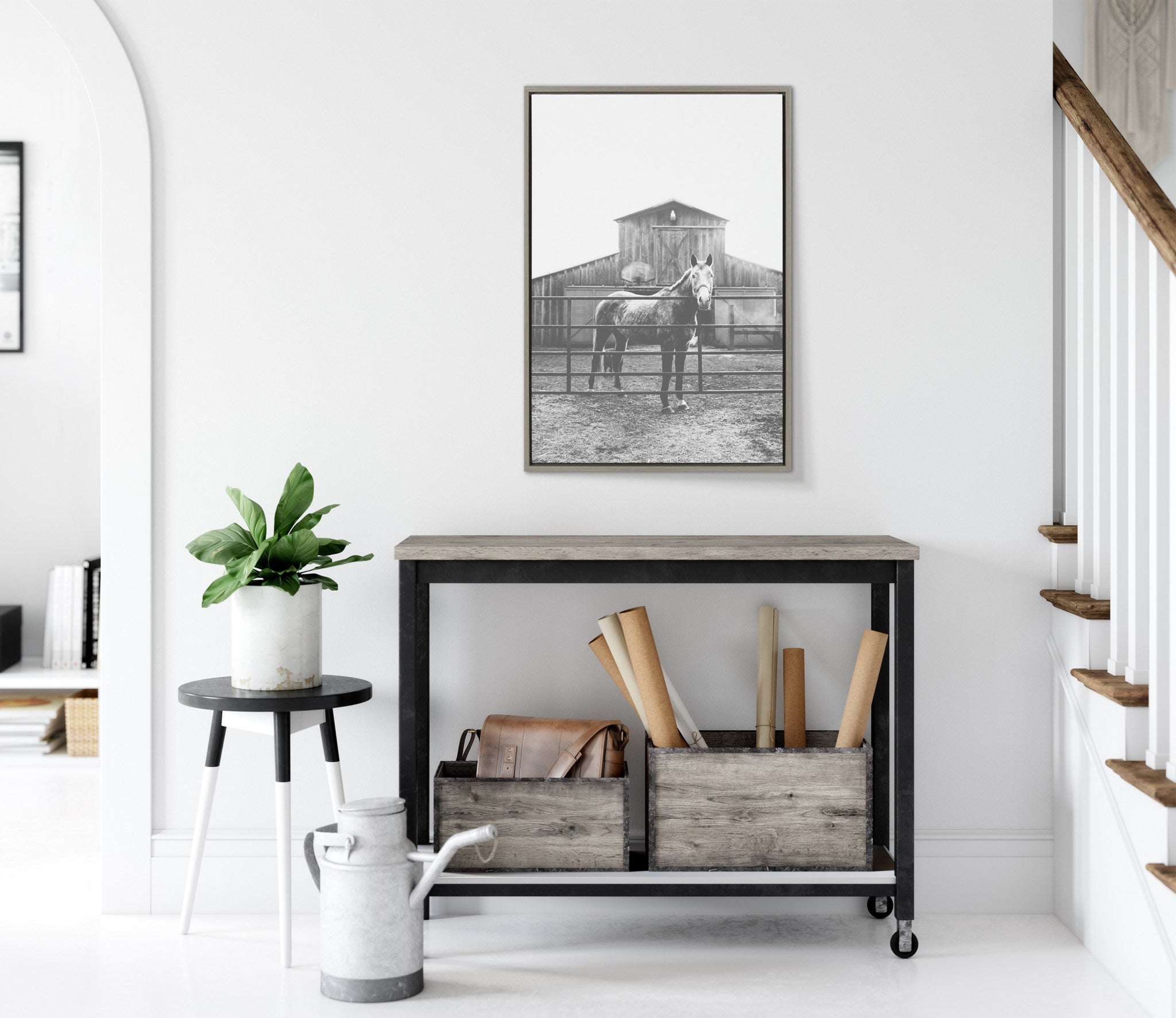 Sylvie Modern Farmhouse Horse Black and White Framed Canvas by Patricia Hasz of Patricia Rae Photography