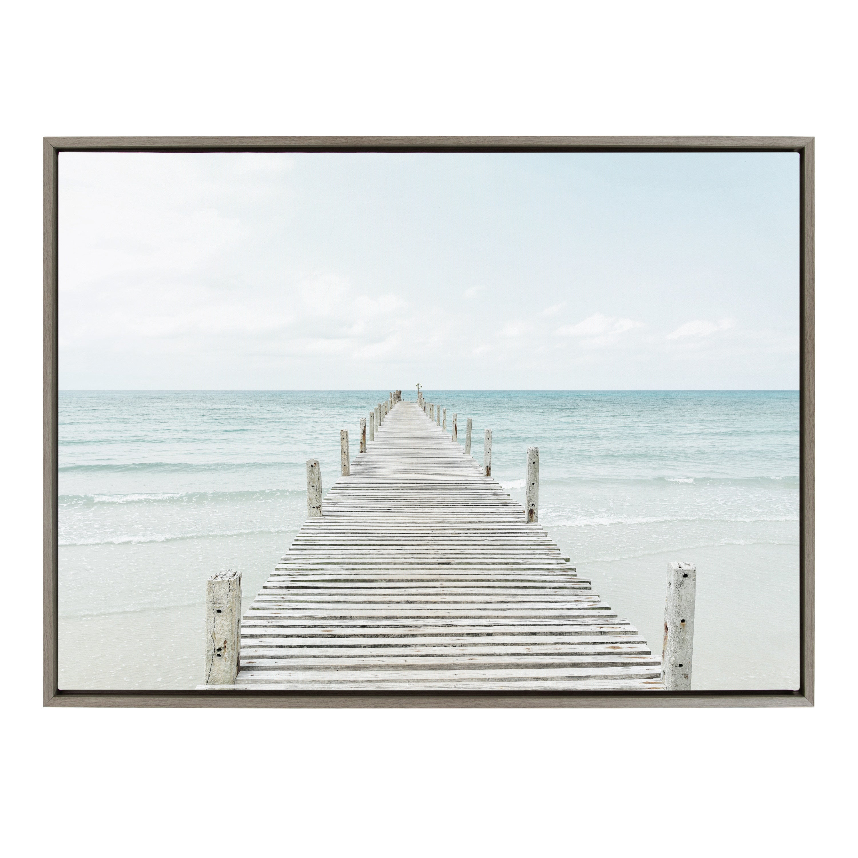Sylvie Wooden Pier on Beach Framed Canvas by Amy Peterson Art Studio