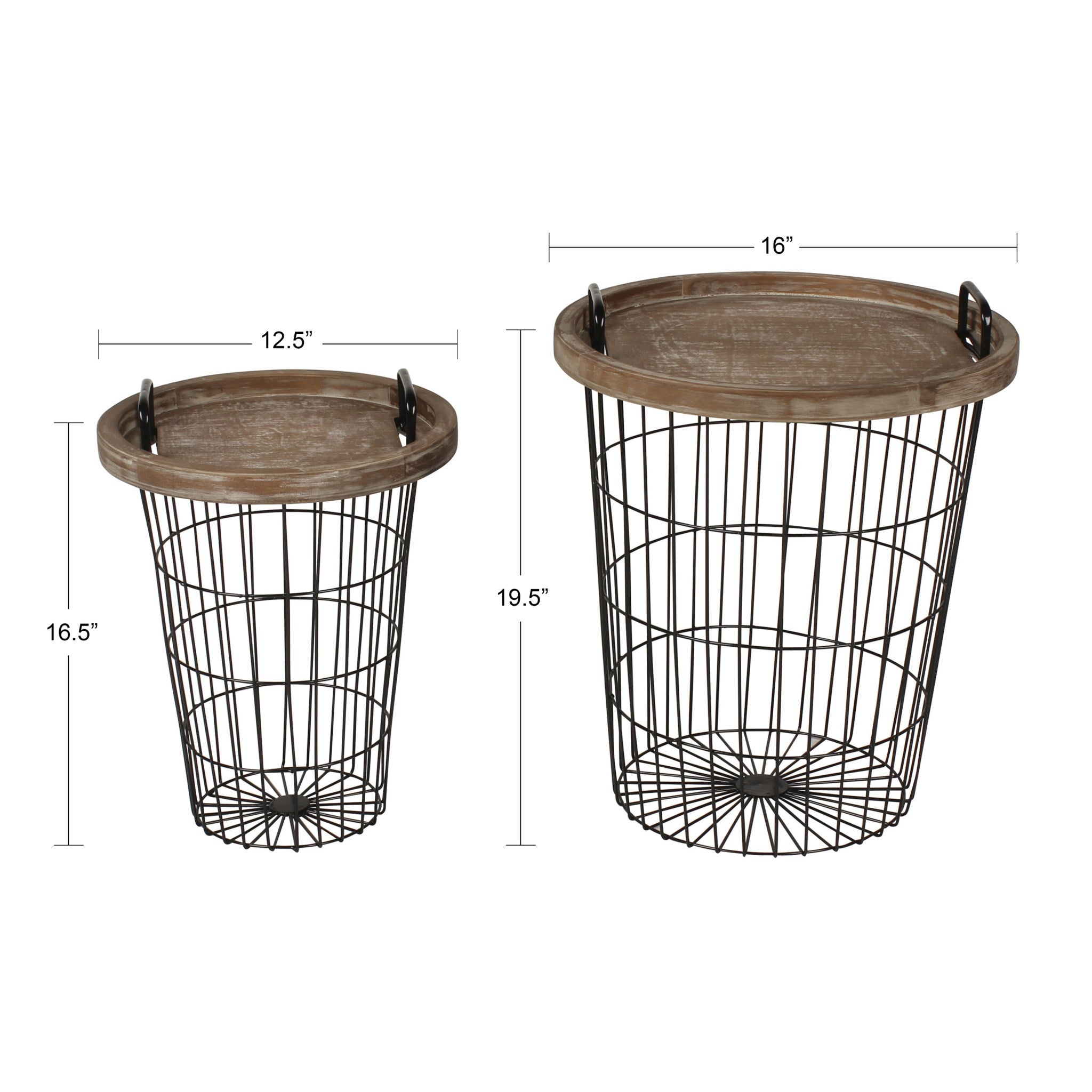Tenby Nesting Metal and Wood Tray Basket End Tables