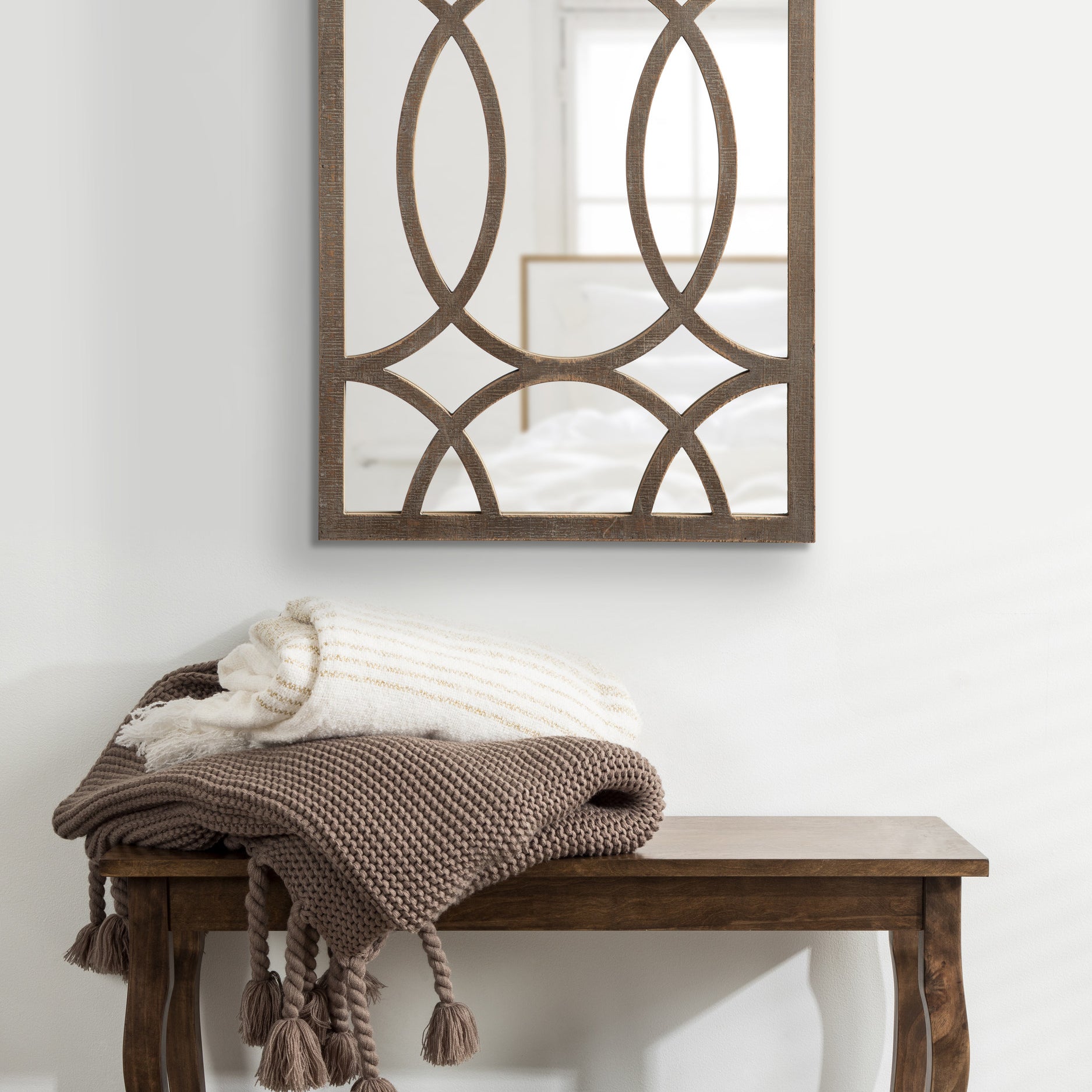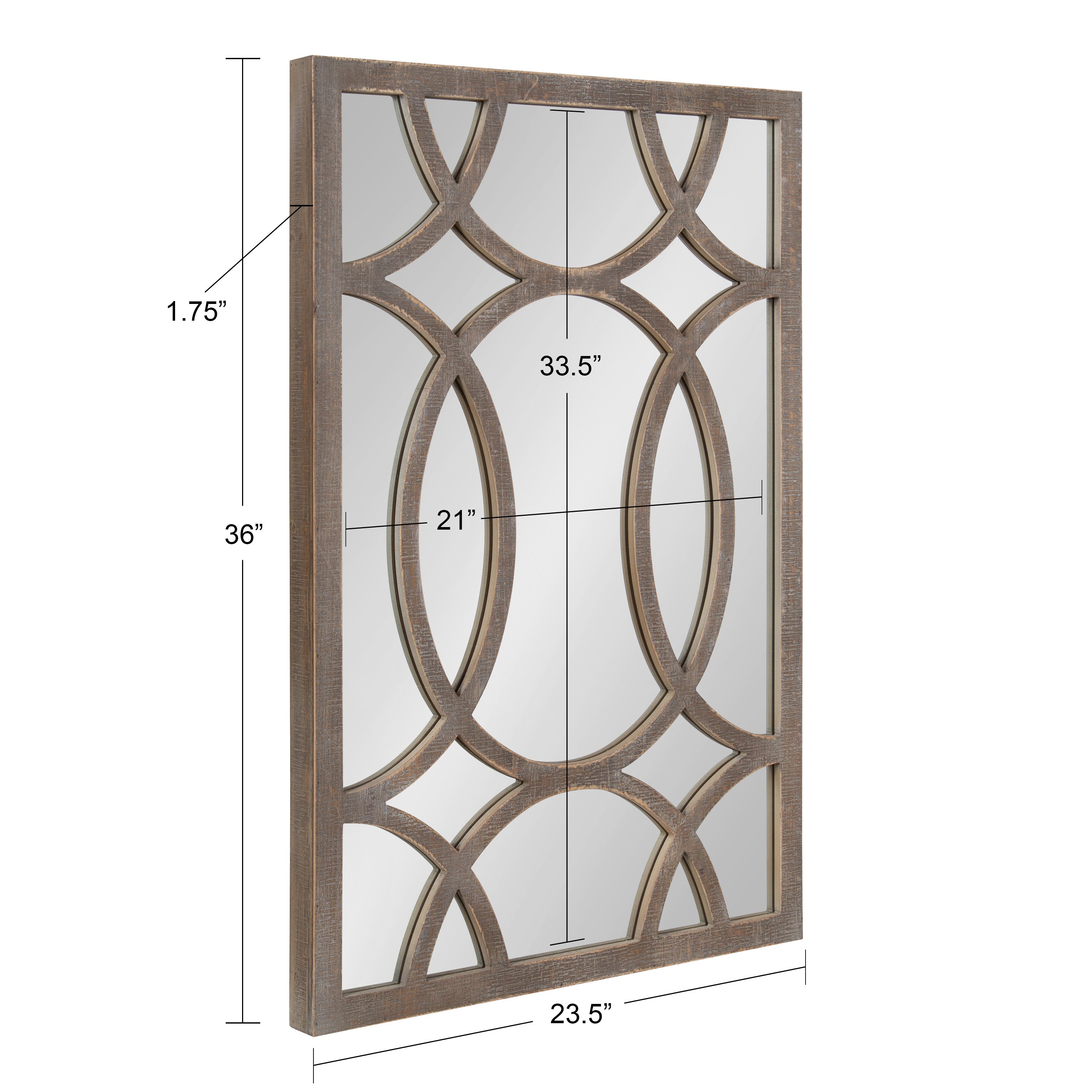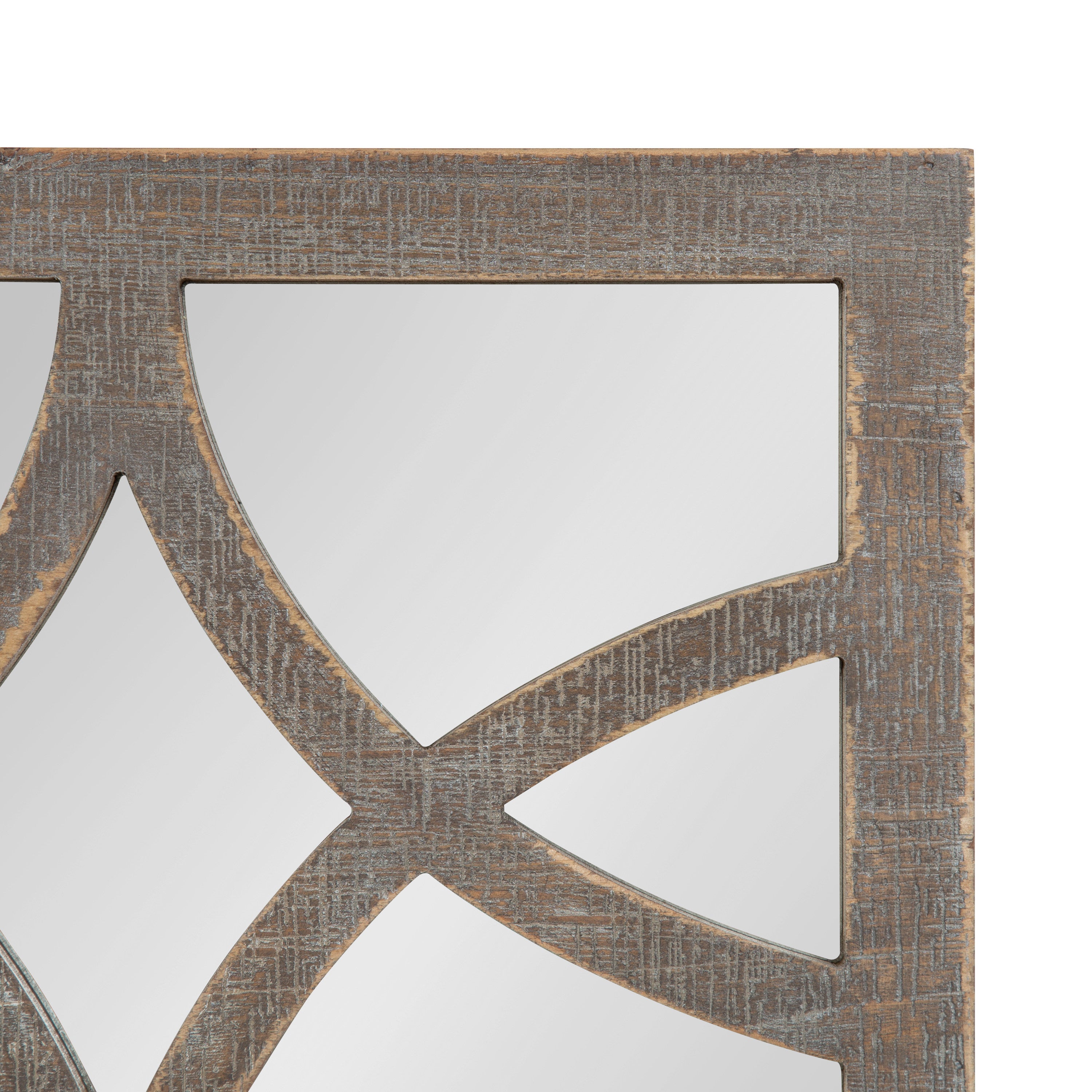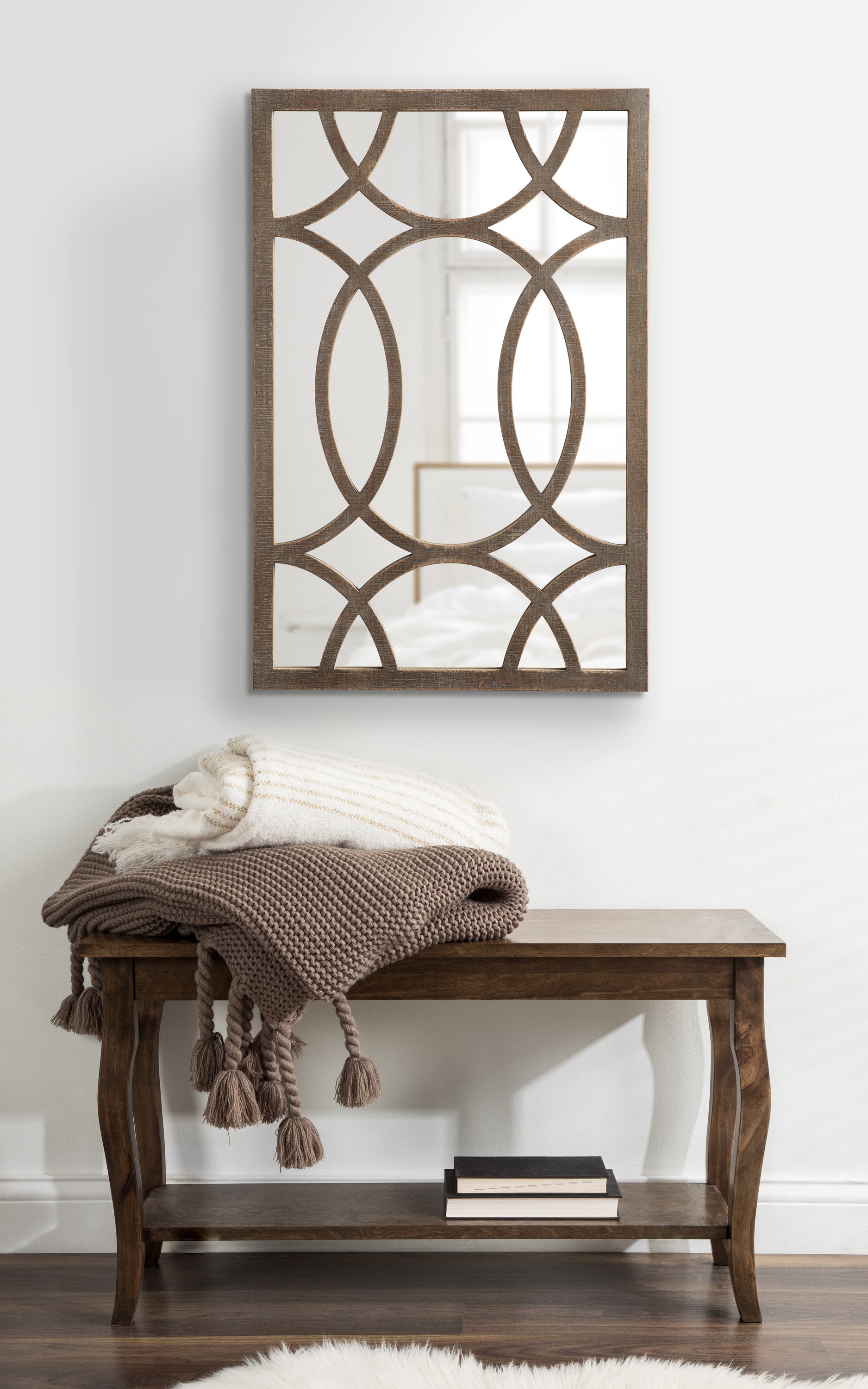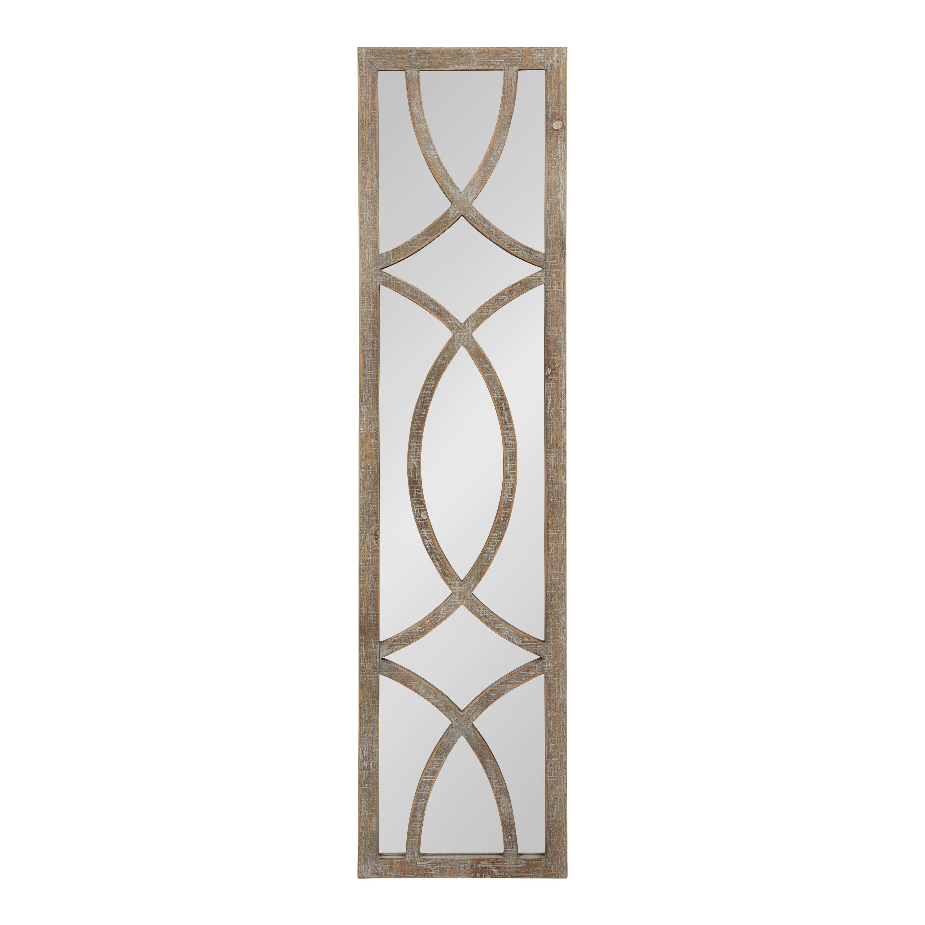 Embrace the romantic look of traditional shabby chic design with the Tolland wood panel wall mirror. A light rustic wood finish plays up the beautiful fretwork inlay and promotes the inset mirror that'll lighten and brighten your space. Display on its own or with two or three side-by-side for a striking arrangement on a primary wall.