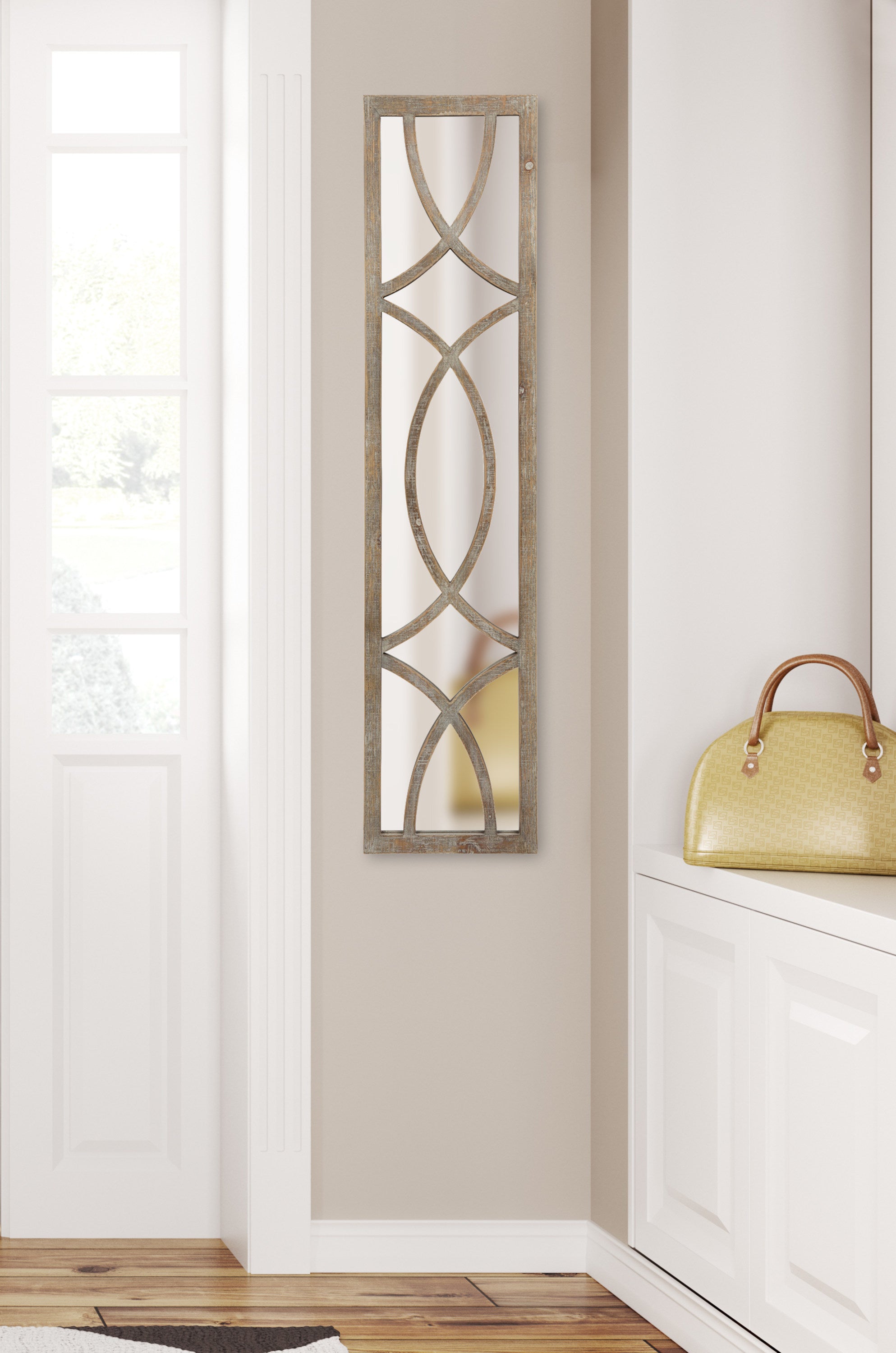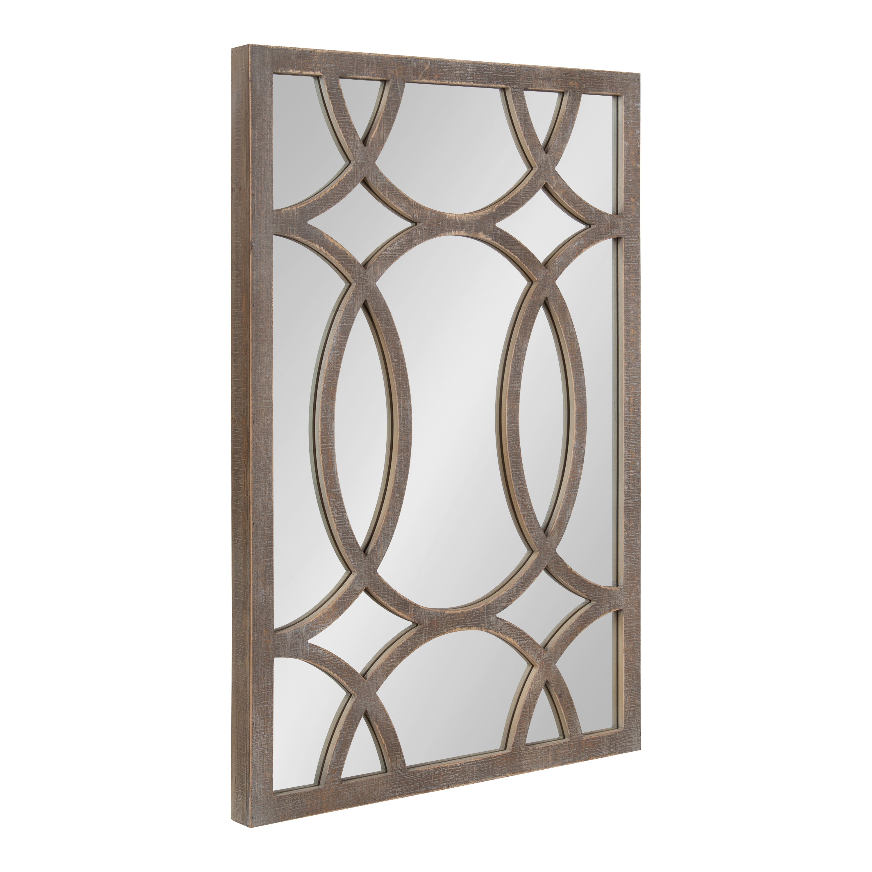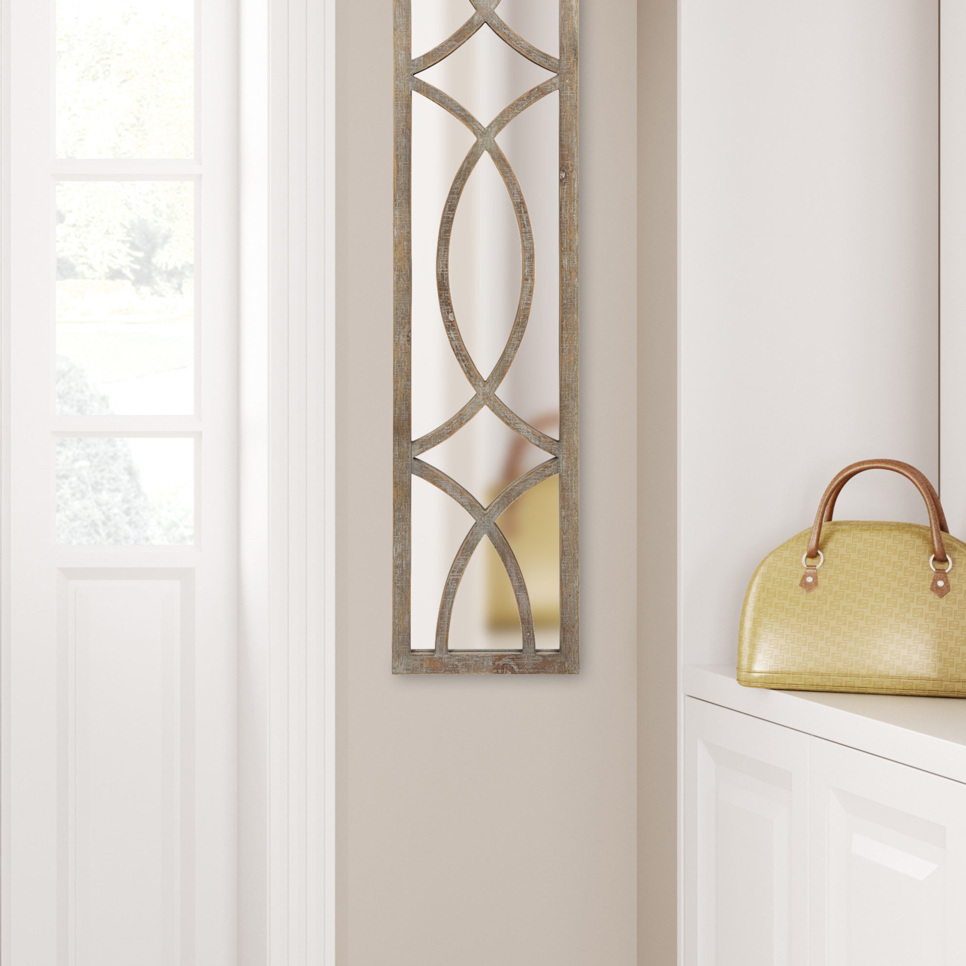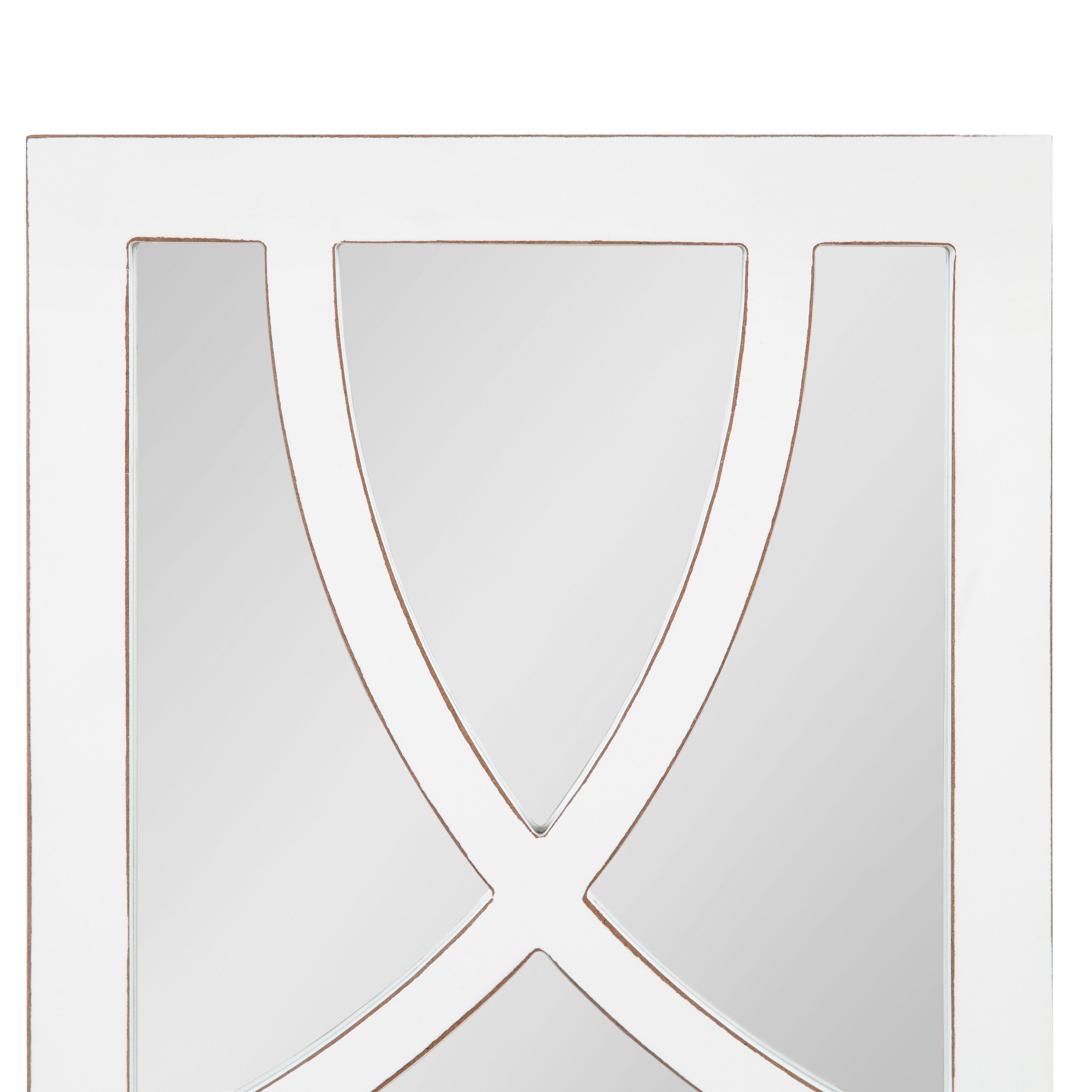 Embrace the romantic look of traditional shabby chic design with the Tolland wood panel wall mirror. A light rustic wood finish plays up the beautiful fretwork inlay and promotes the inset mirror that'll lighten and brighten your space. Display on its own or with two or three side-by-side for a striking arrangement on a primary wall.