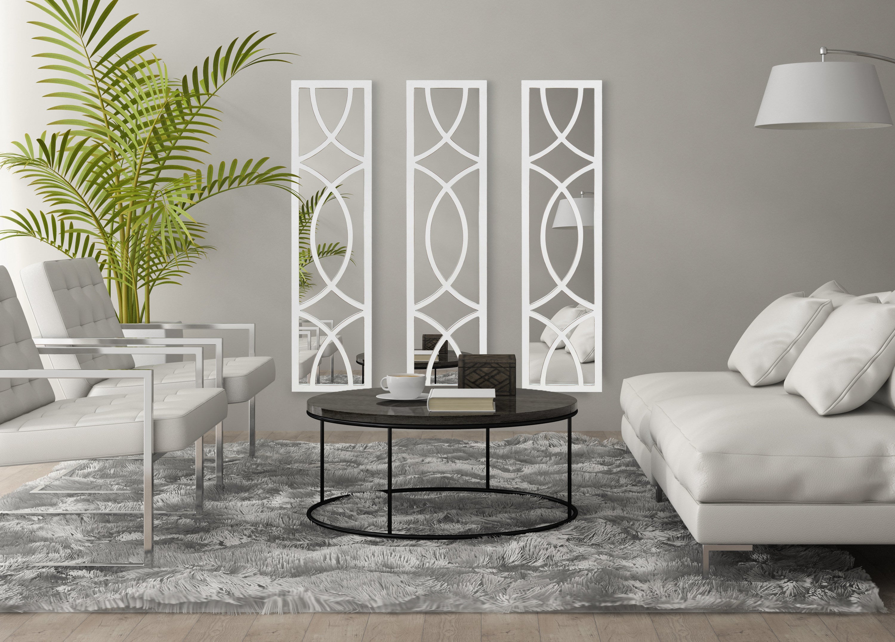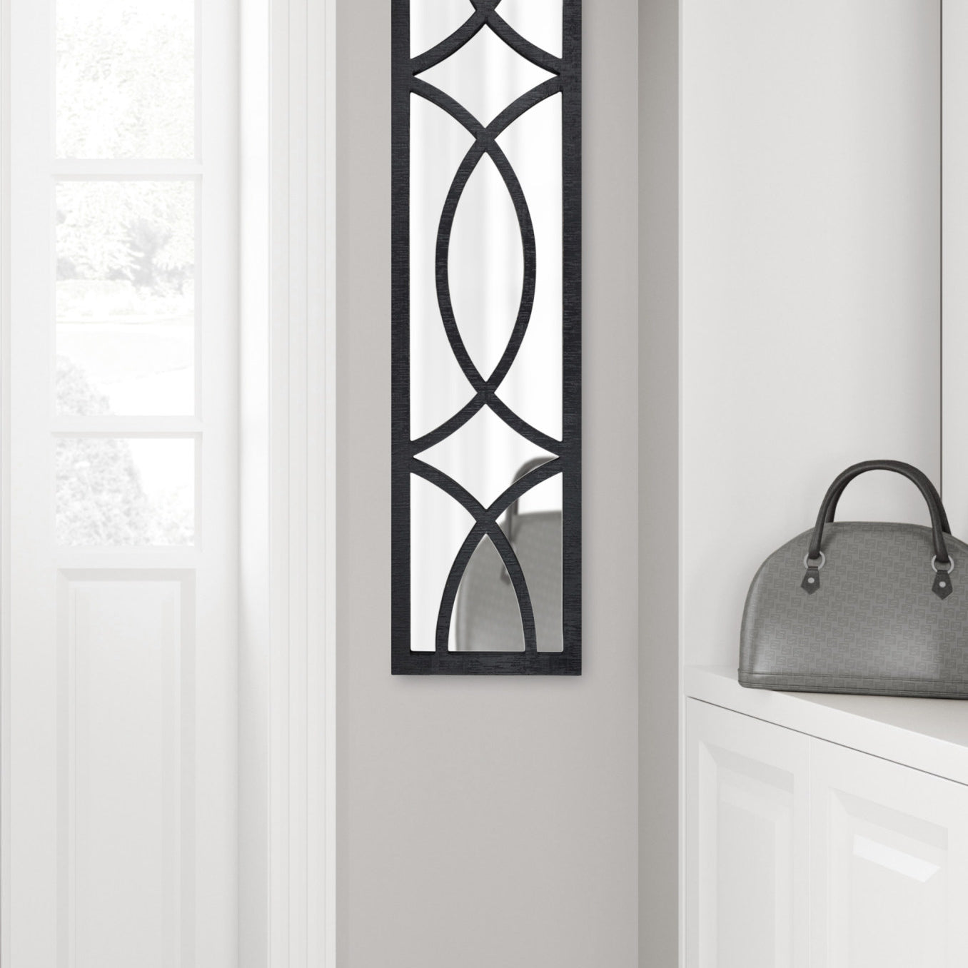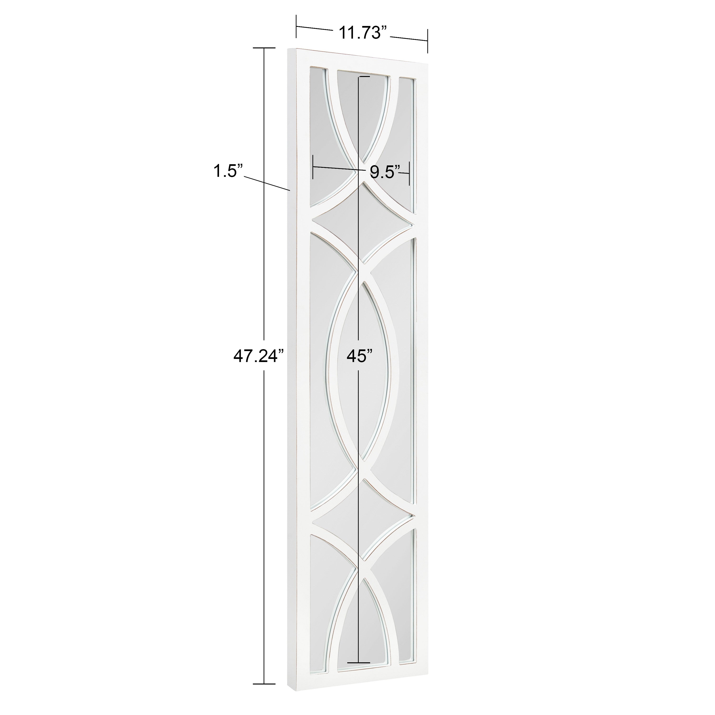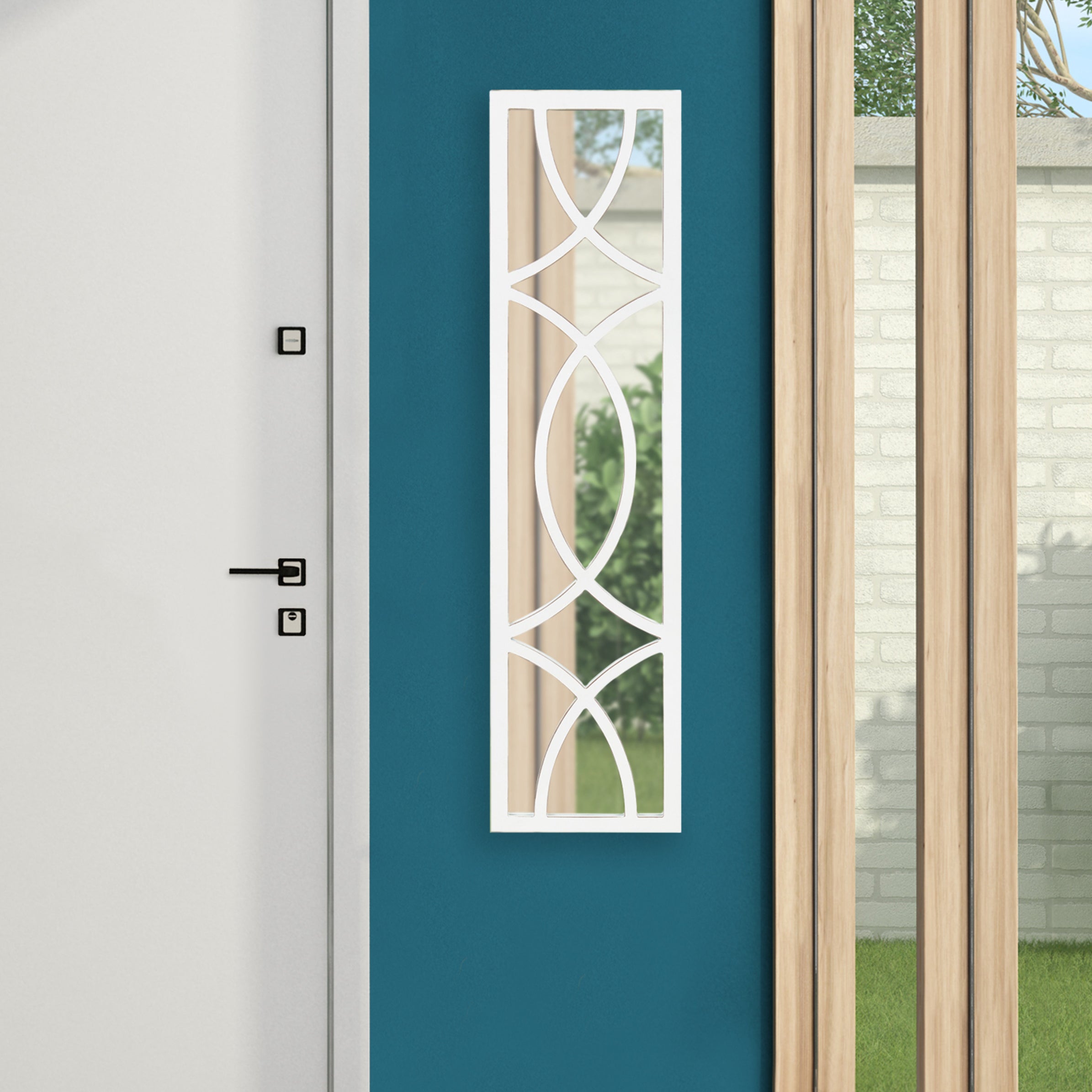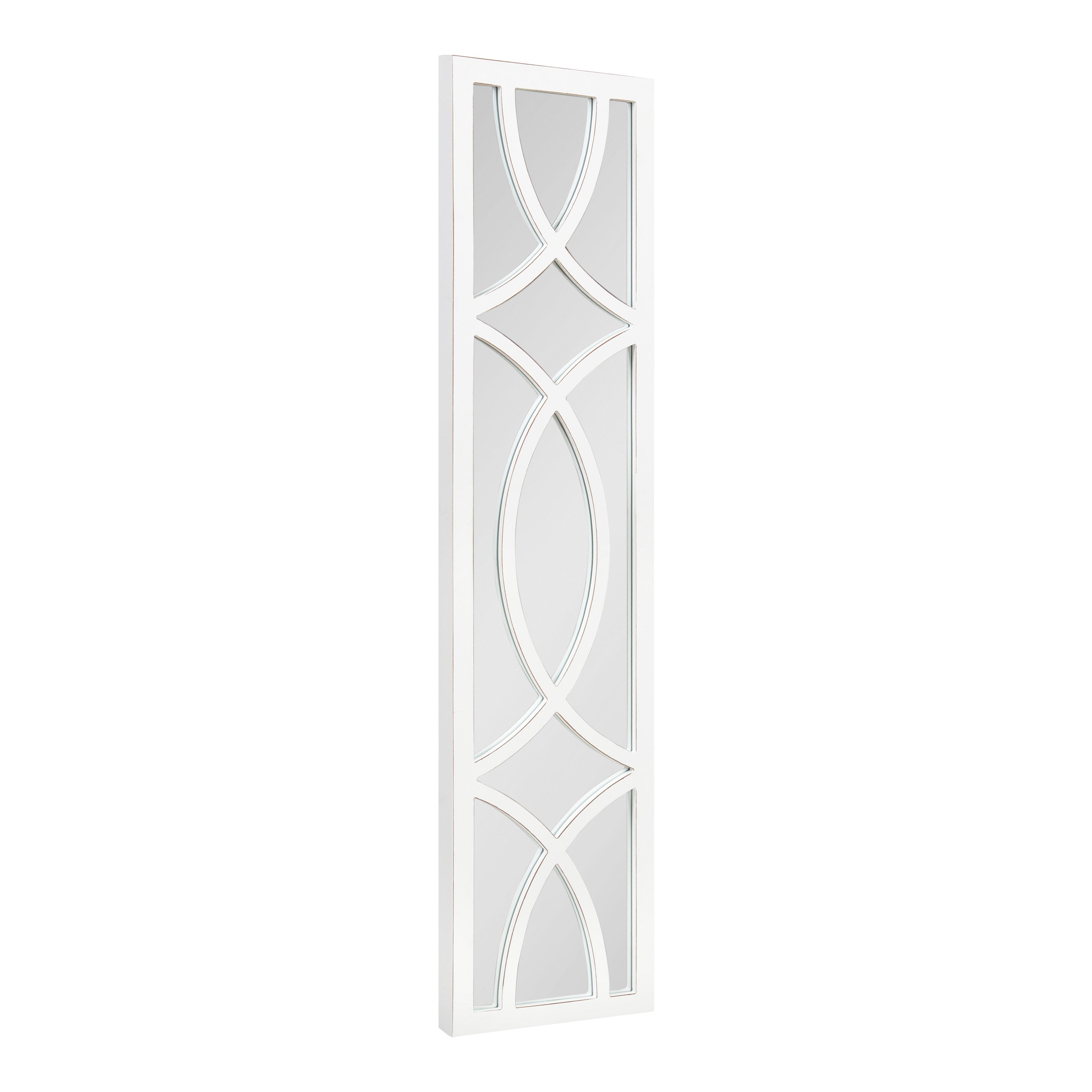 Embrace the romantic look of traditional shabby chic design with the Tolland wood panel wall mirror. A light rustic wood finish plays up the beautiful fretwork inlay and promotes the inset mirror that'll lighten and brighten your space. Display on its own or with two or three side-by-side for a striking arrangement on a primary wall.