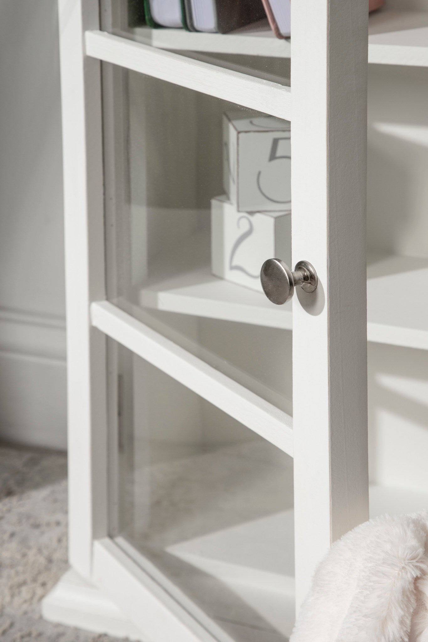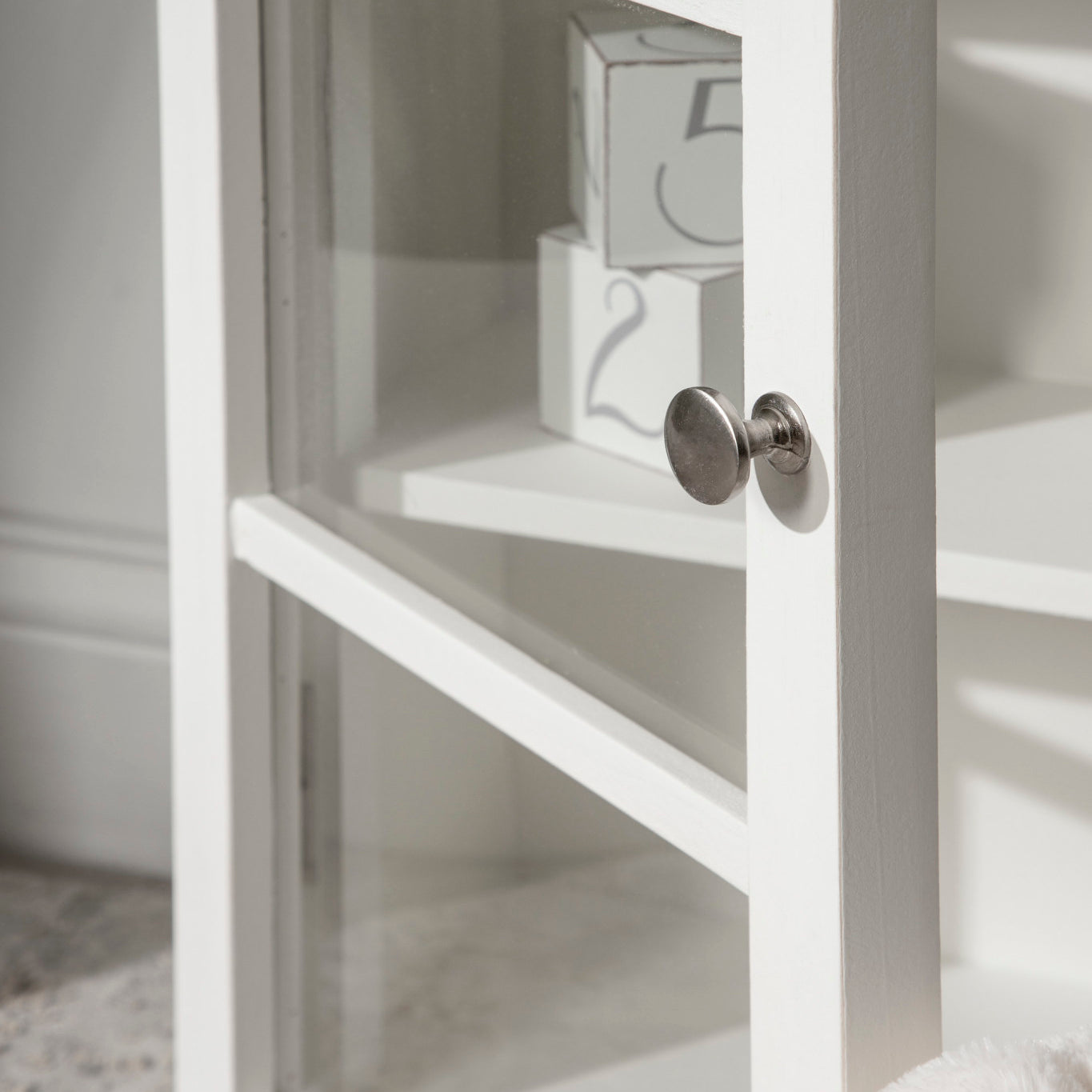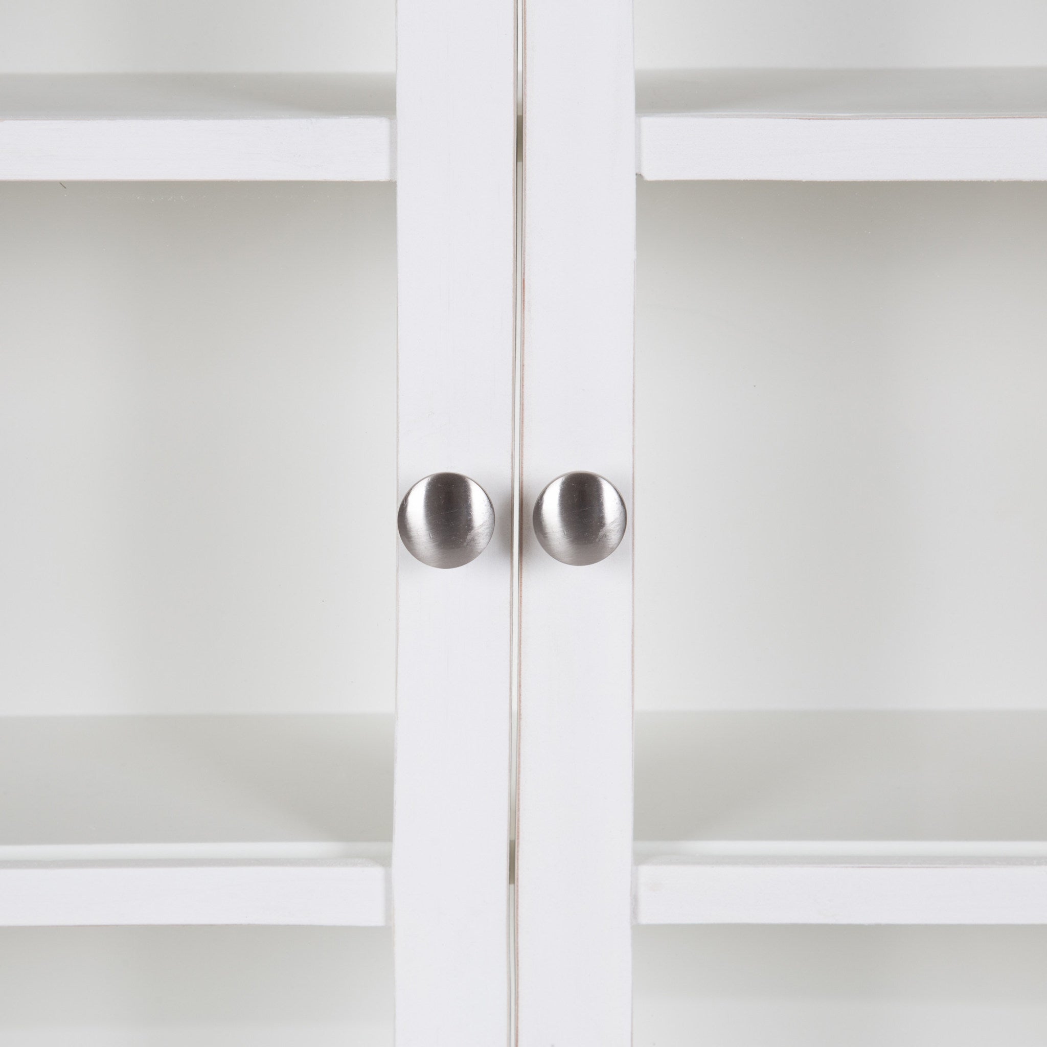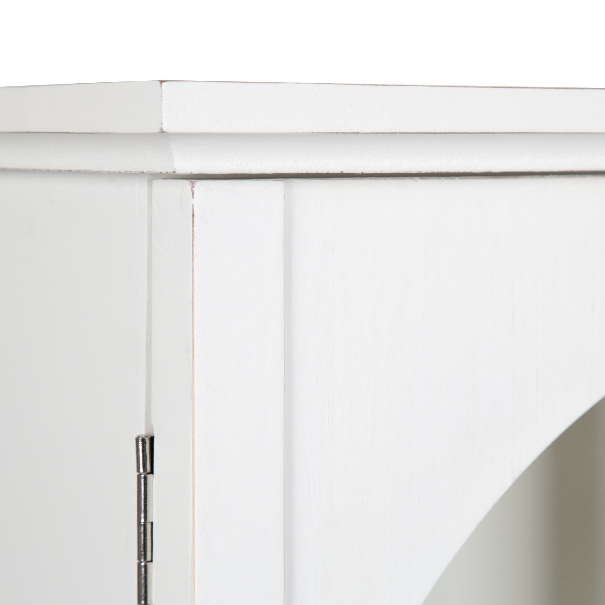 Decorate your bathroom, living room, or bedroom with a farmhouse storage cabinet in the Walsted! Crafted with a hand-distressed finish and a sophisticated arched opening, the Walsted is perfect for your rustic decorating aesthetics. Use it as a spice rack, a decorative display cabinet, or a medicine cabinet with its clear glass doors. It's the perfect way to tie your farmhouse decor together while providing a convenient and space-saving design for all your household necessities.