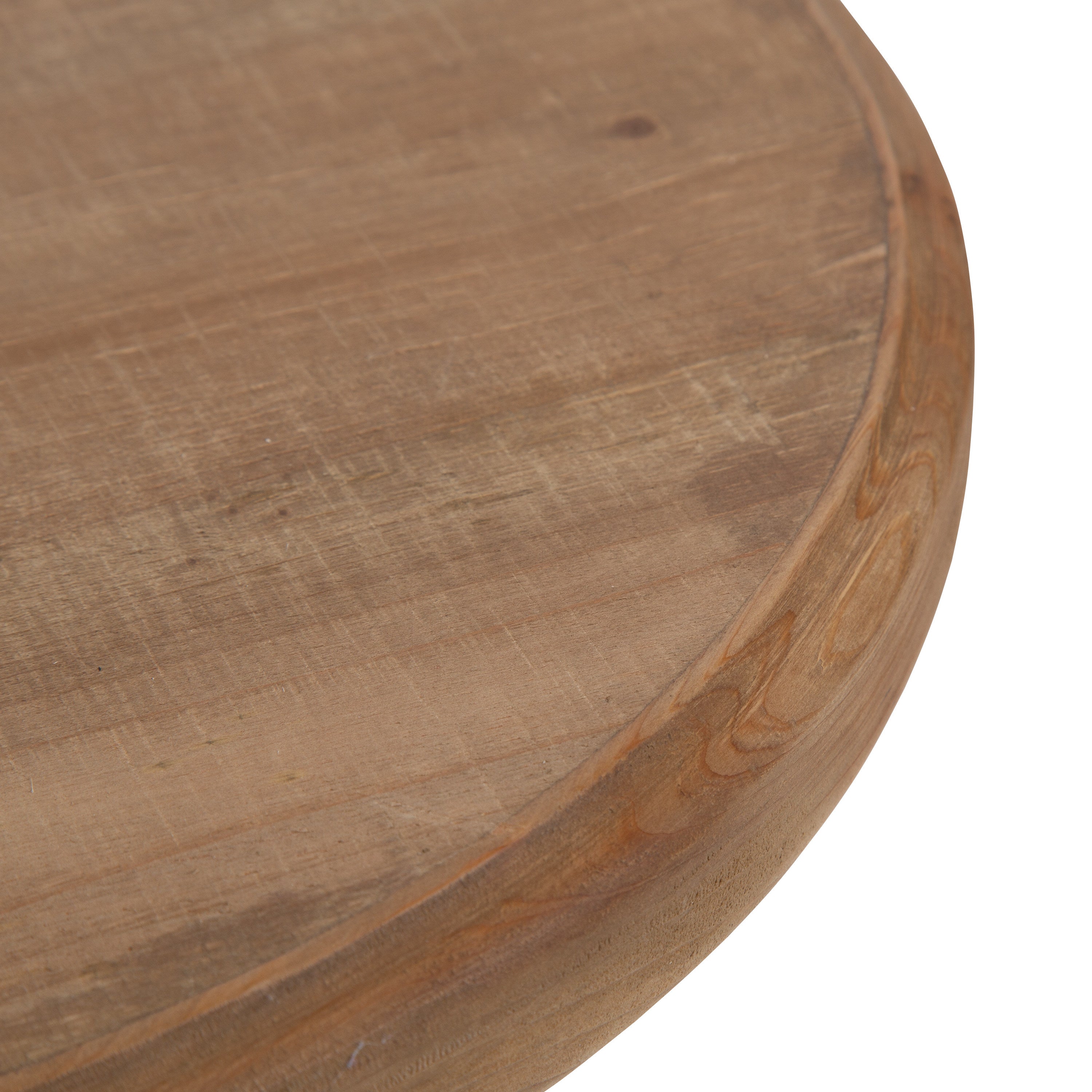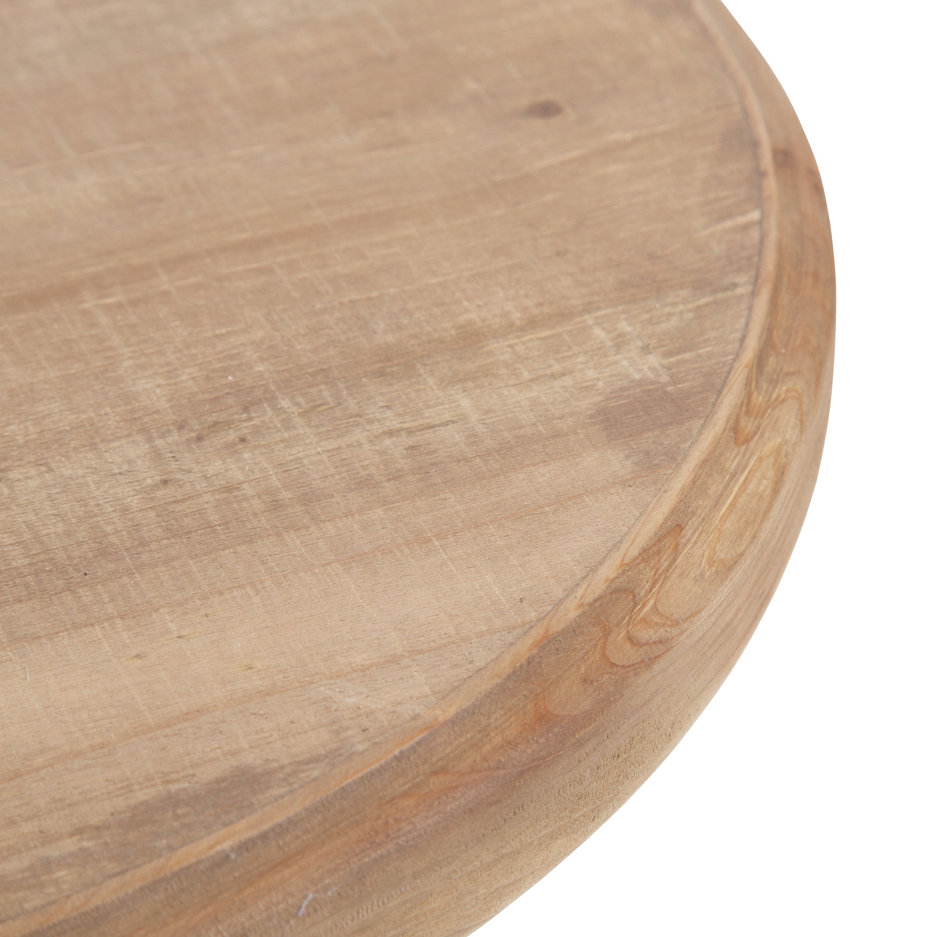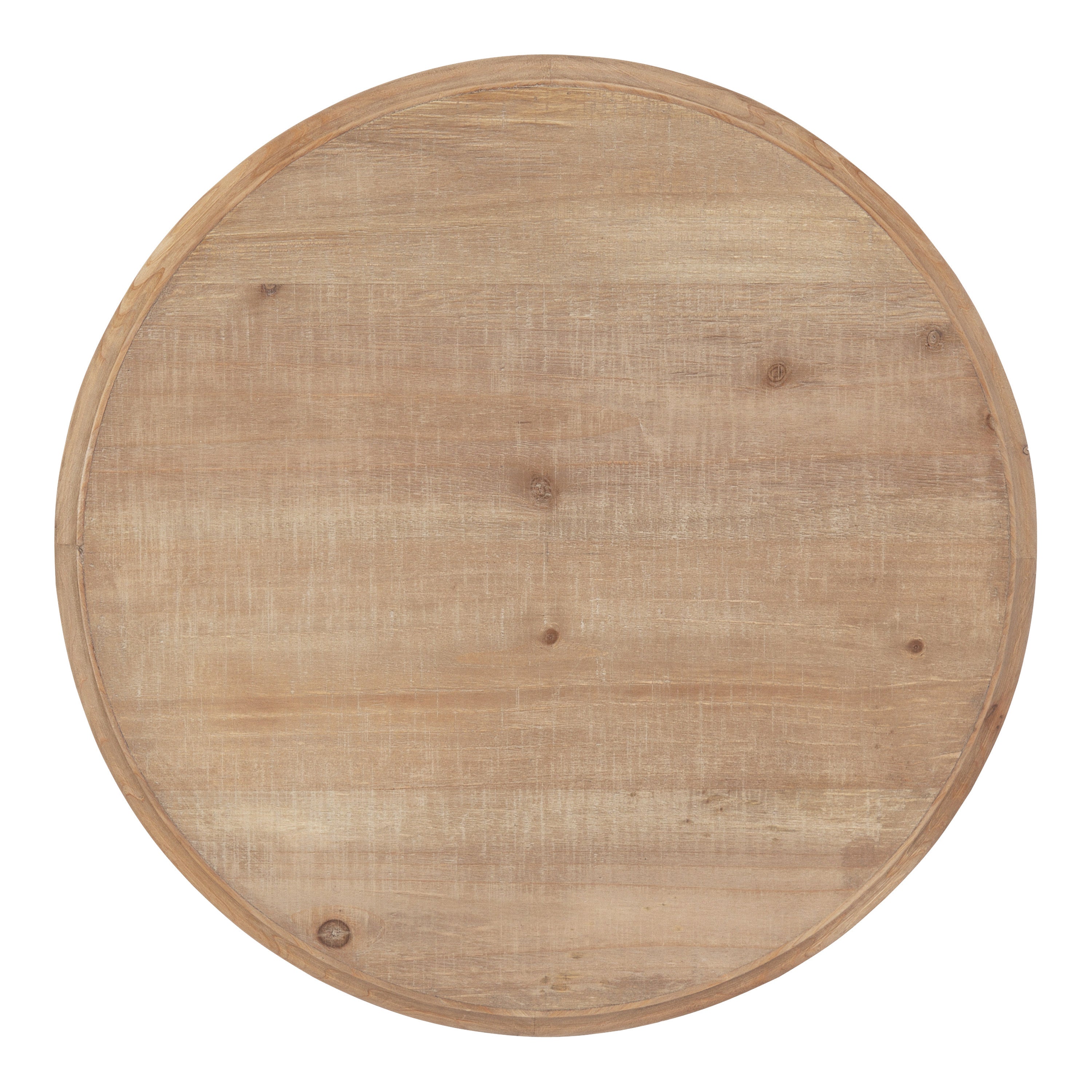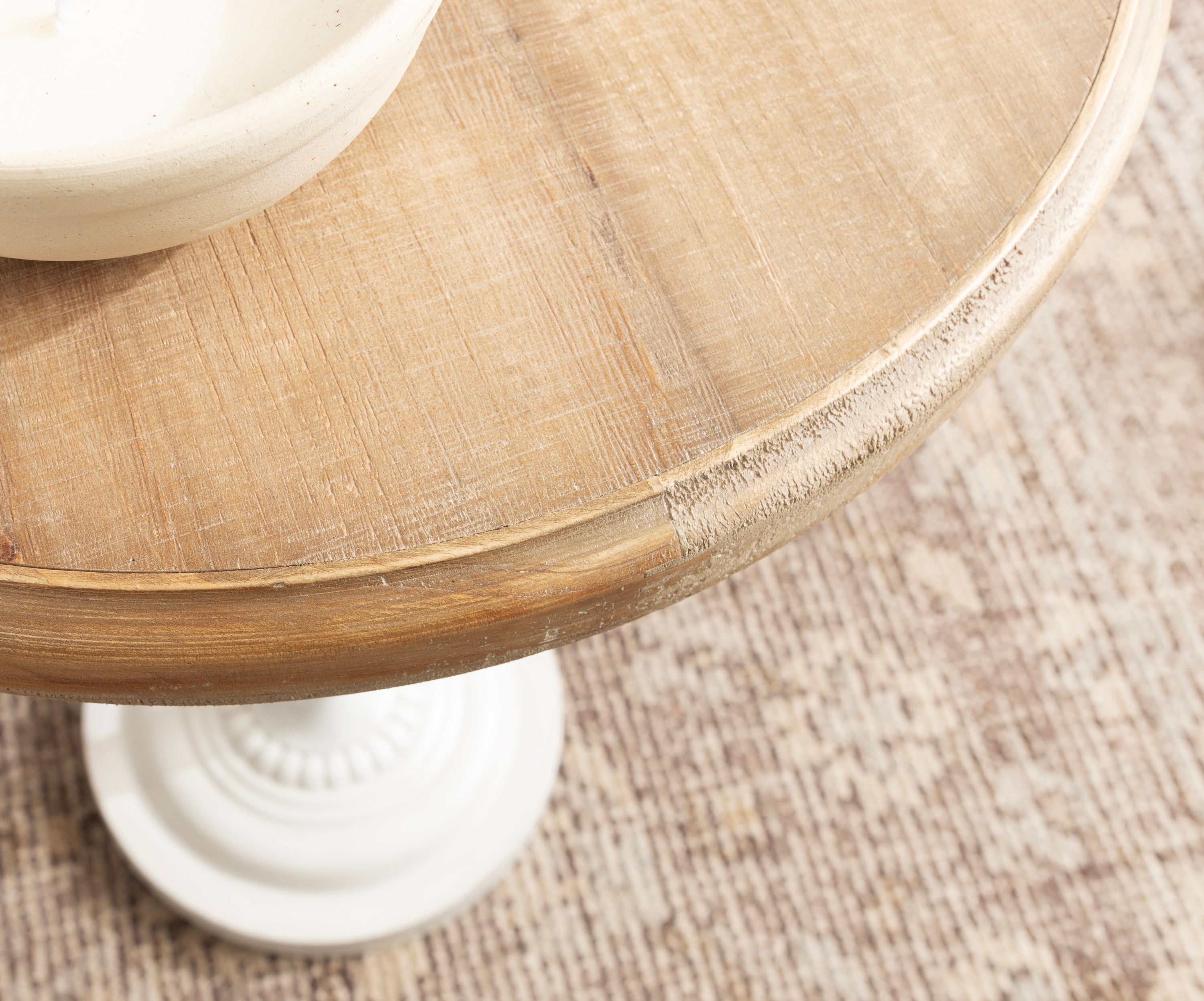 Embrace farmhouse charm with this lovely Wixley round side table. Between its sturdy iron base and its wooden tabletop, this side table boasts a charming mixed materials design. This round pedestal table offers farmhouse style with some traditional accenting between its turned base and beaded detail toward the bottom of the base.