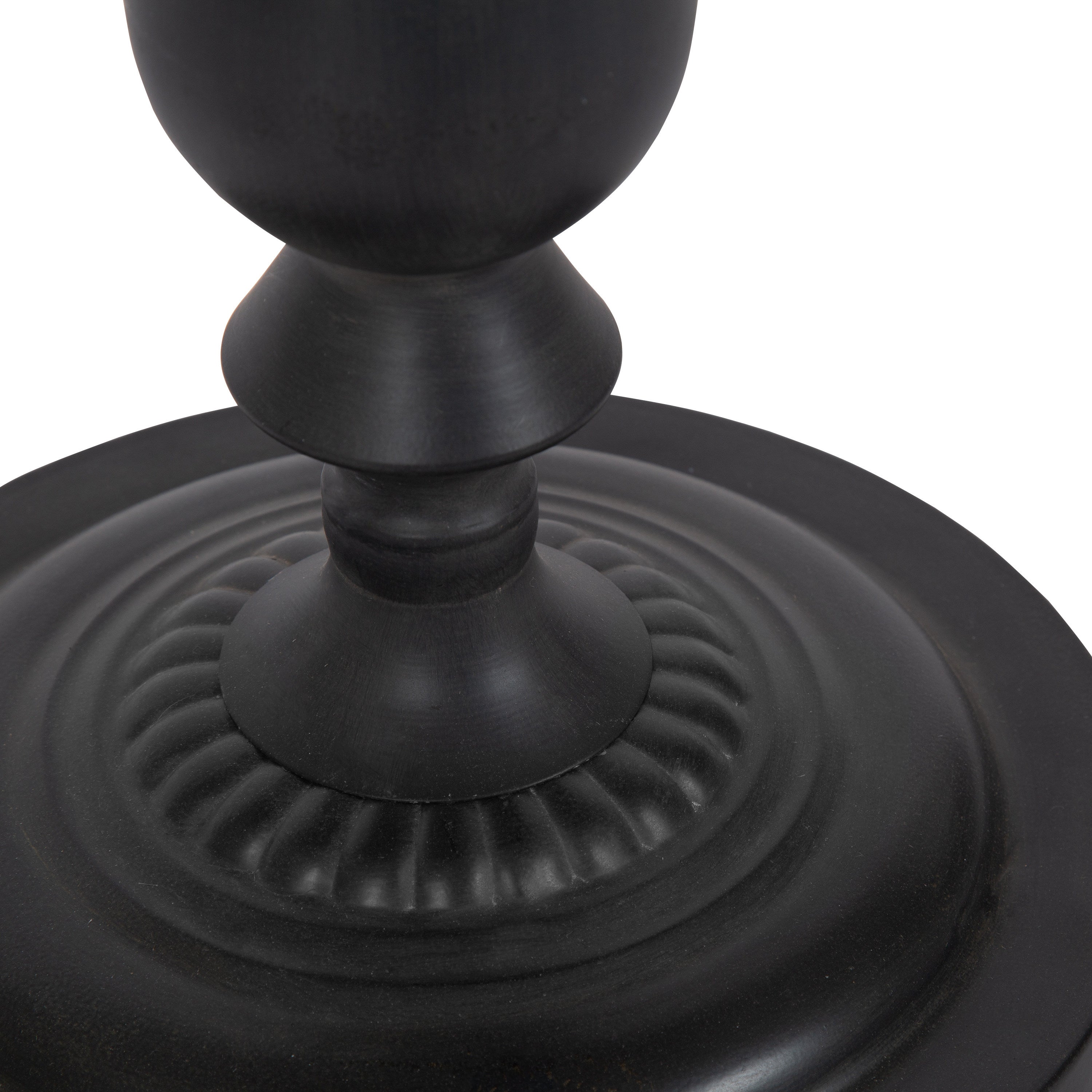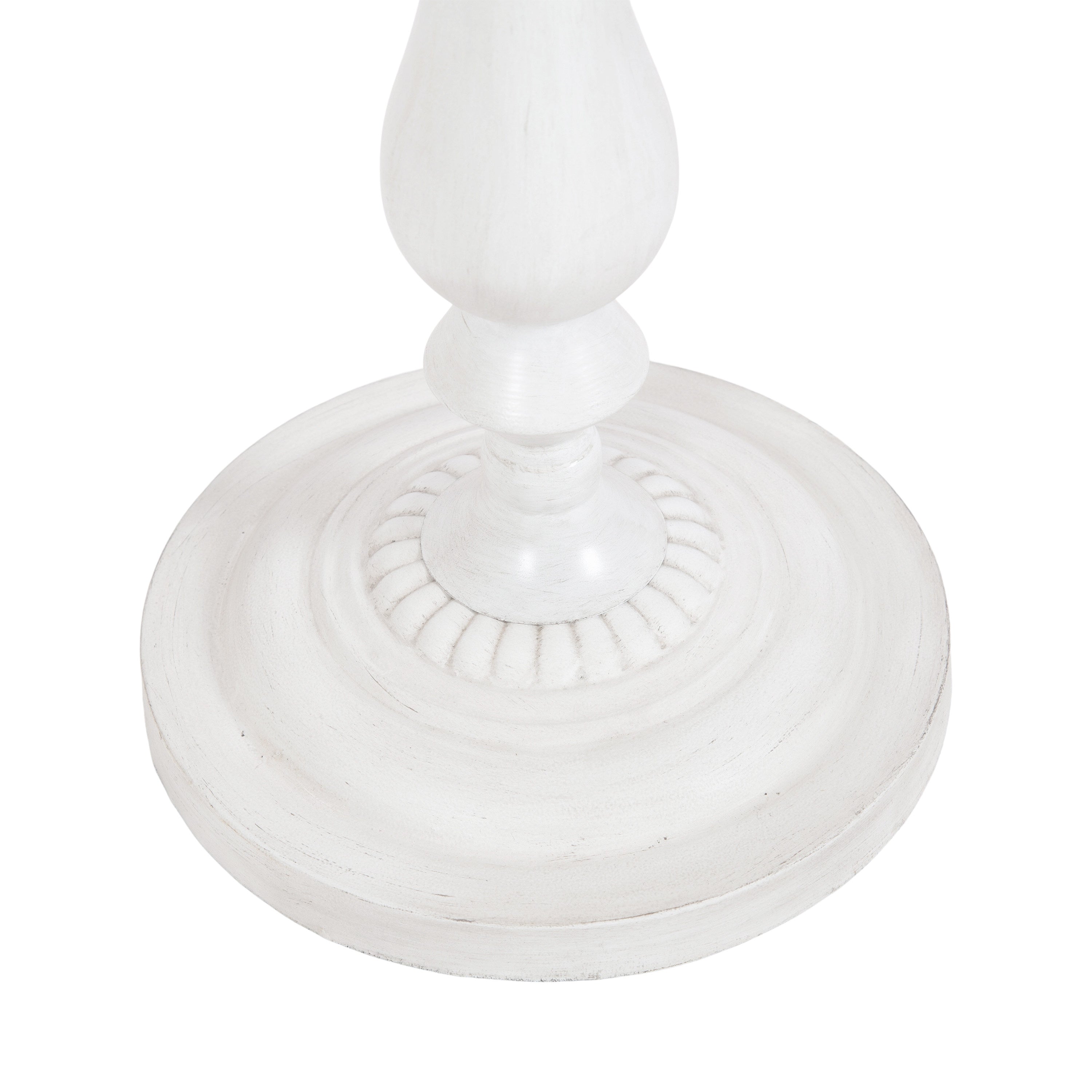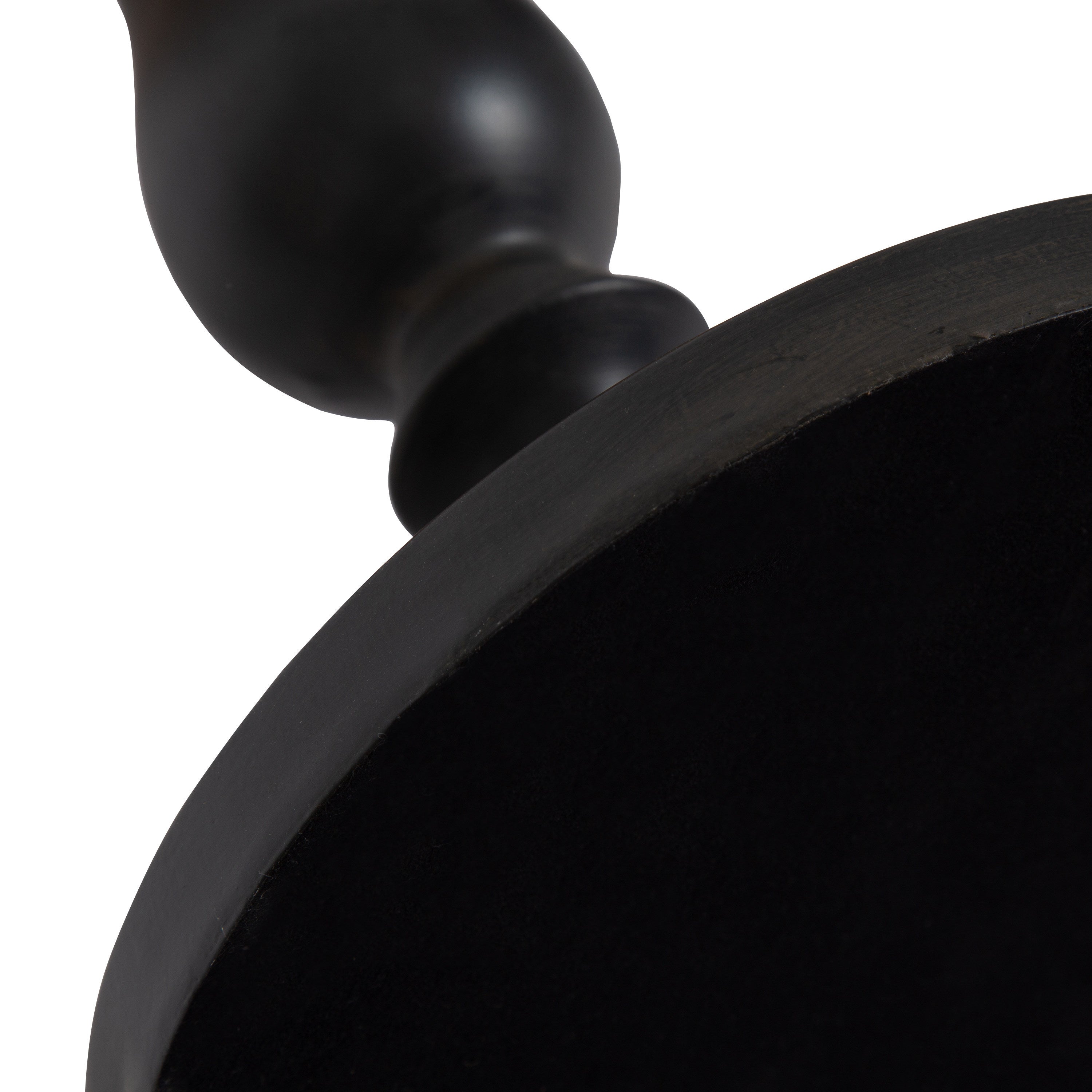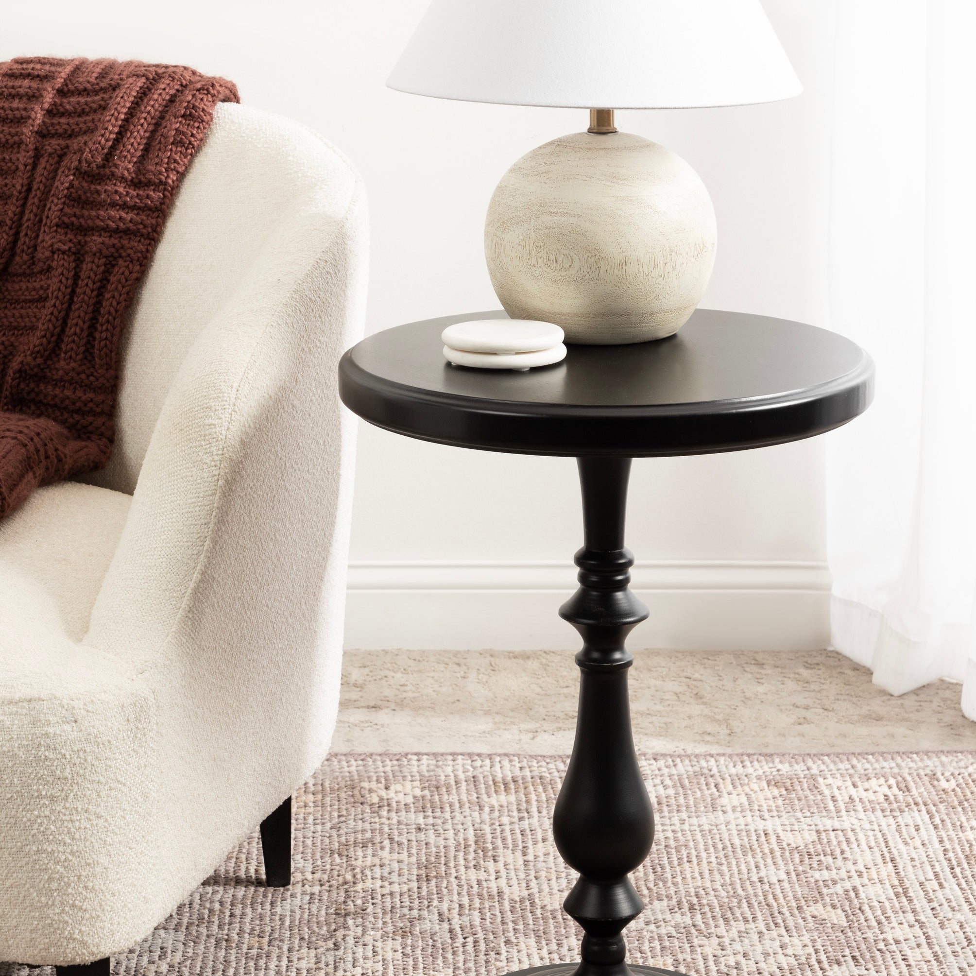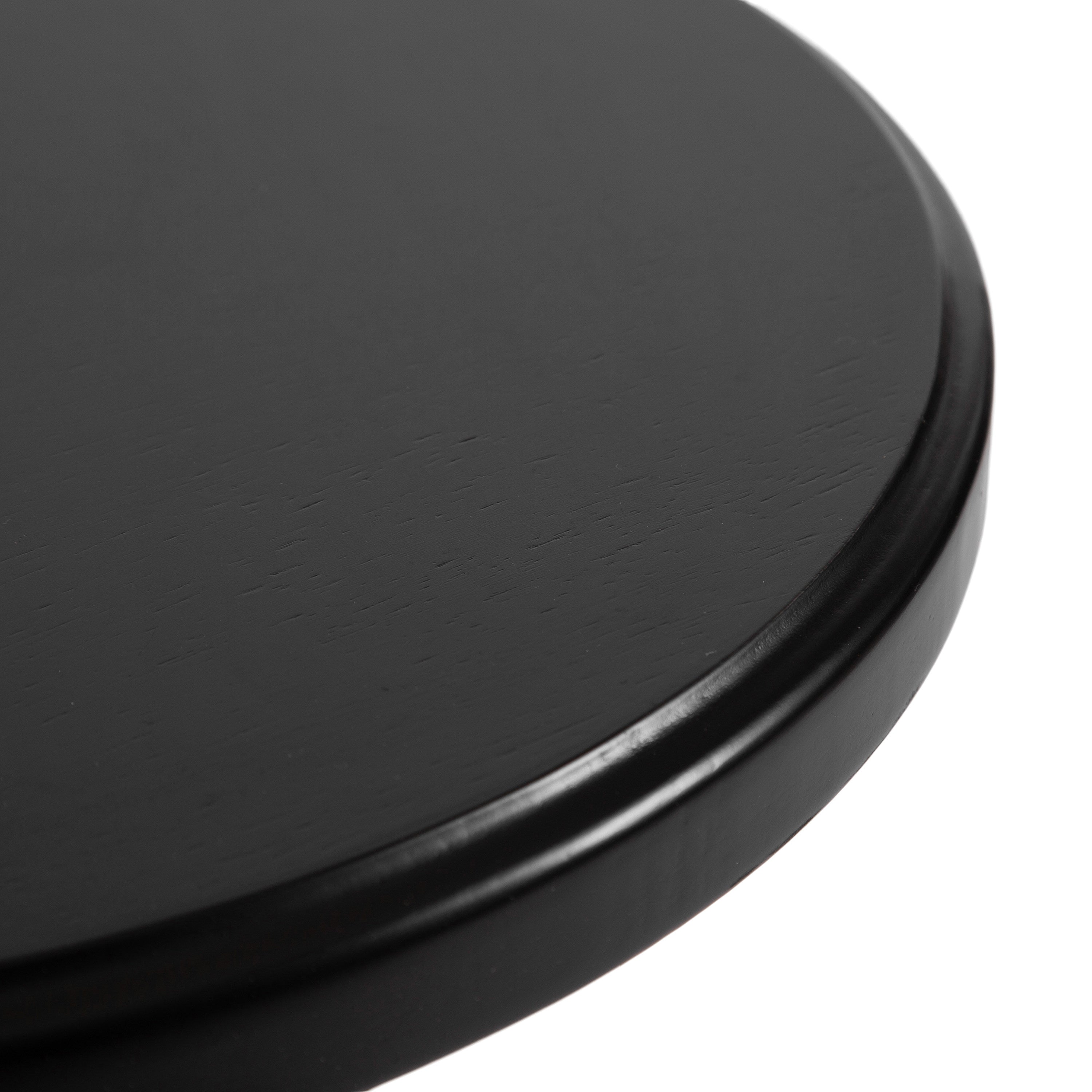 Embrace farmhouse charm with this lovely Wixley round side table. Between its sturdy iron base and its wooden tabletop, this side table boasts a charming mixed materials design. This round pedestal table offers farmhouse style with some traditional accenting between its turned base and beaded detail toward the bottom of the base.