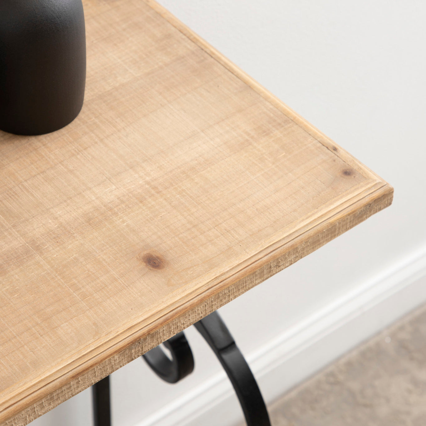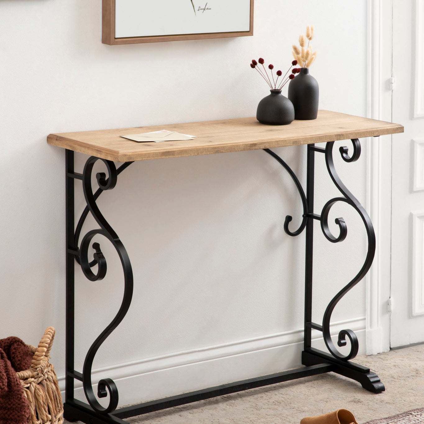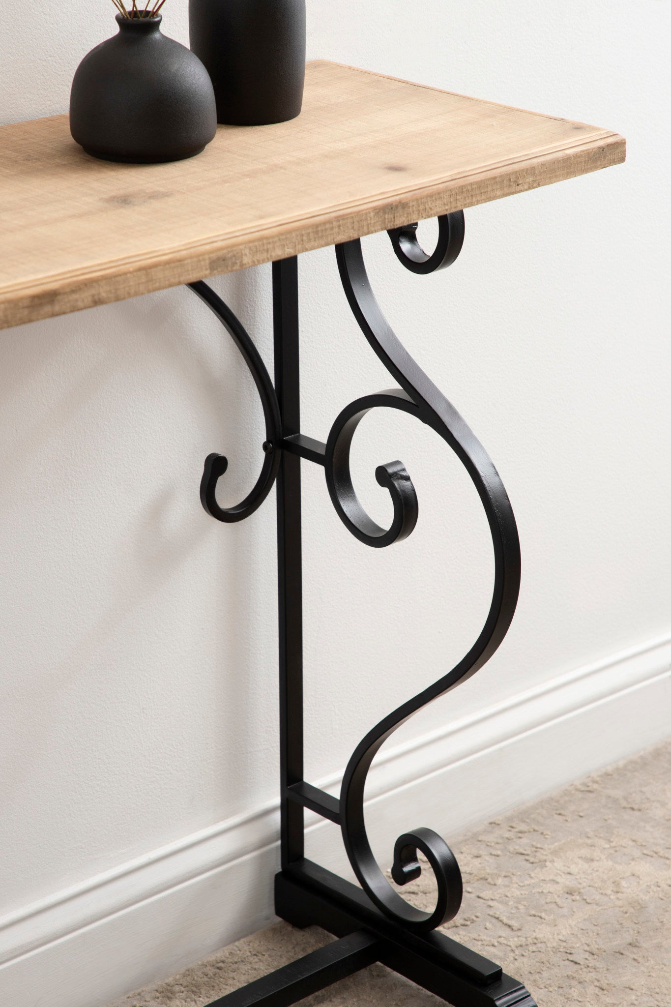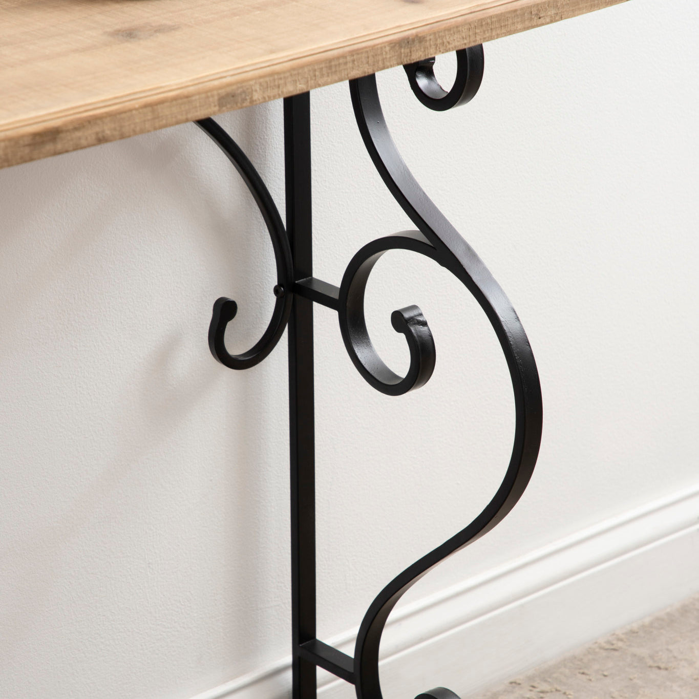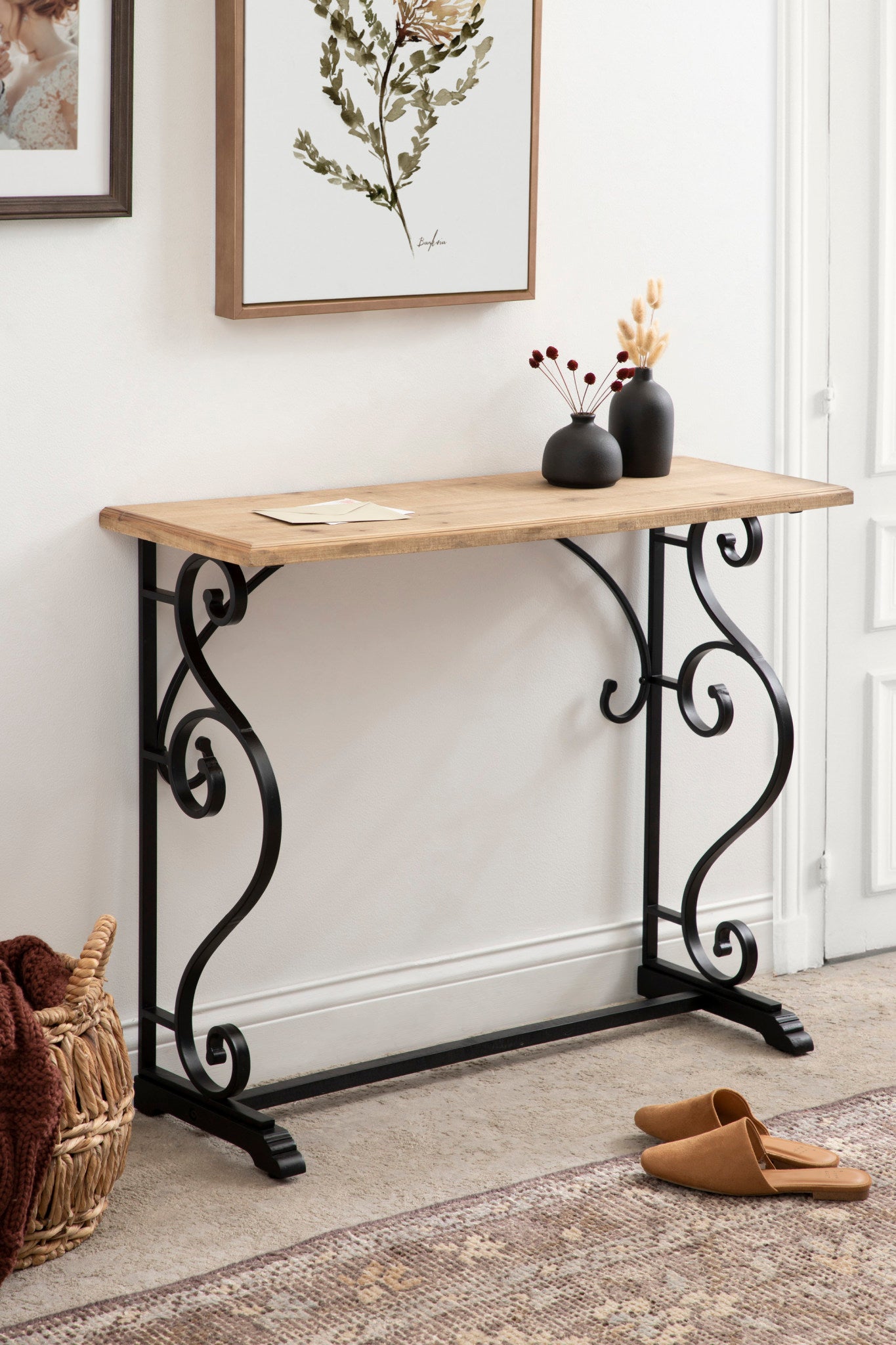 Warmly exhibit your family photos, memorabilia, or any number of your favorite home decor accents on this beautiful console table. Constructed of solid wood, the light finish of the tabletop creates a genuine natural look while the curved legs complete an authentically ornate piece. In the entryway, it makes a fantastic welcoming table or you can place it in the dining room as a bar or serving area. A truly versatile piece of furniture, the Wyldwood console is a practical luxury.