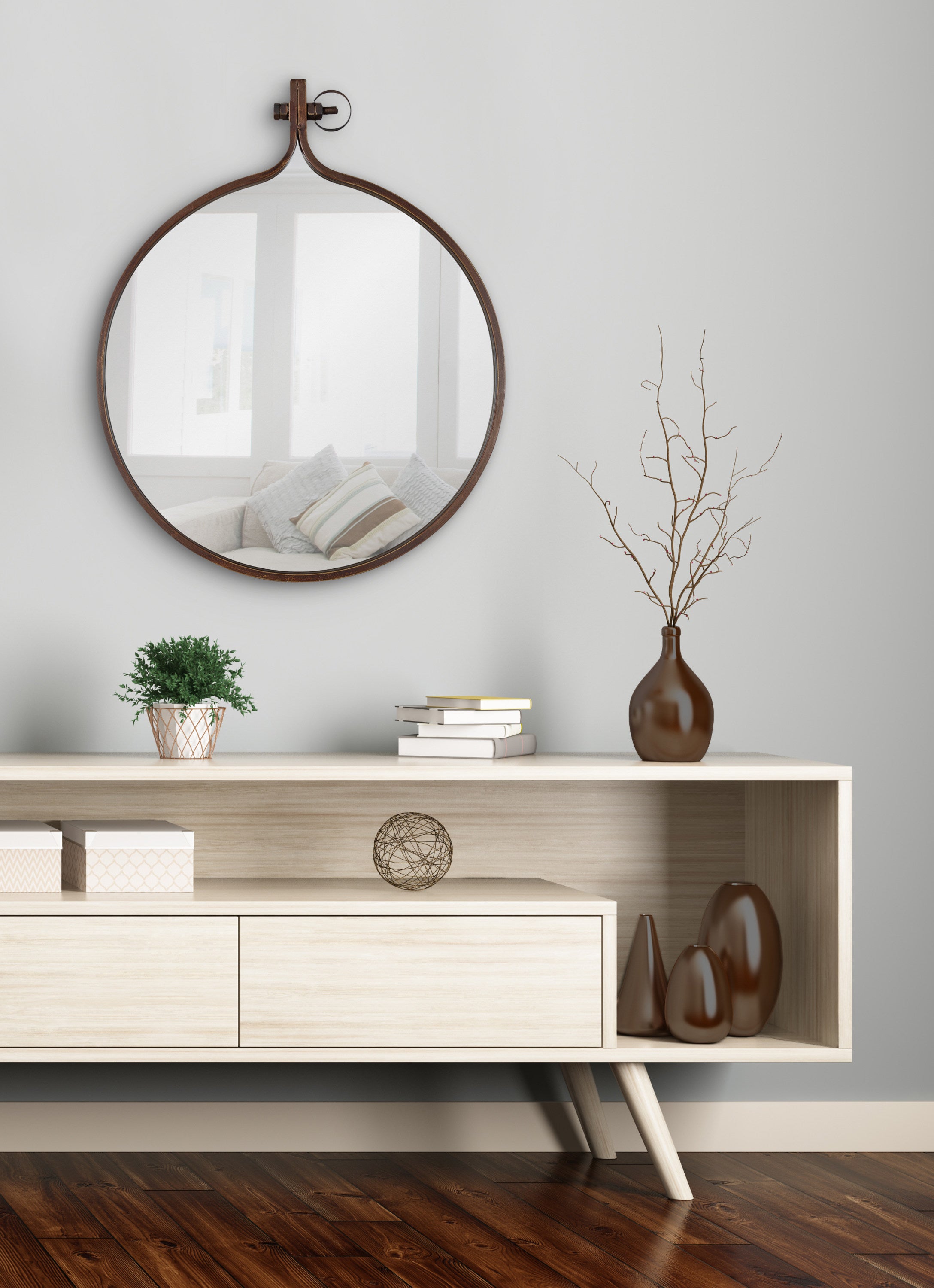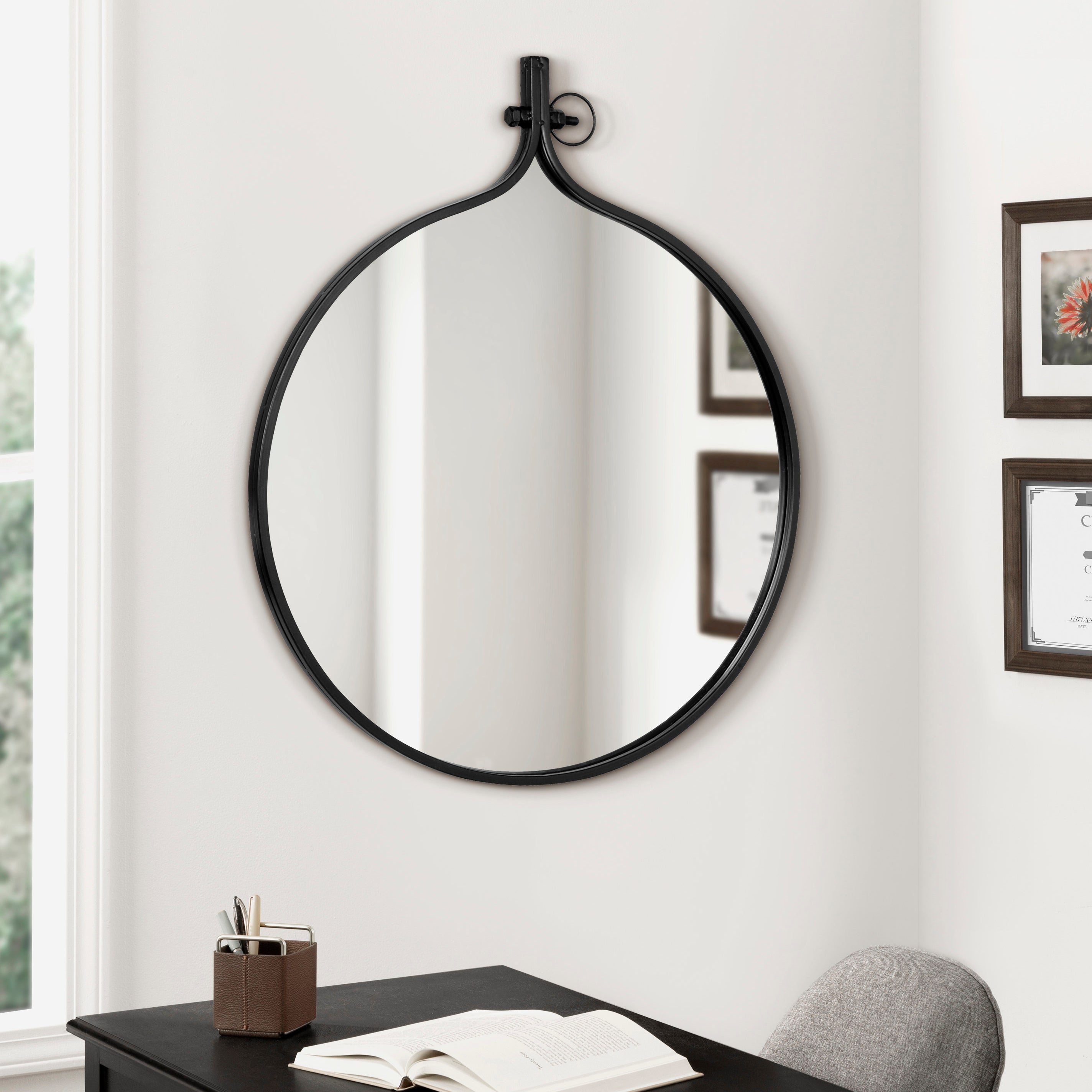 Used on its own or in combination with your other wall decor, this Yitro mirror is sure to fit in with your best look, creating an eye-catching exhibit of pure inspiration. The shape is a great way to break up the straight lines of a gallery display wall or just the right size to hang on its own directly above a sink making it perfect for a vanity.