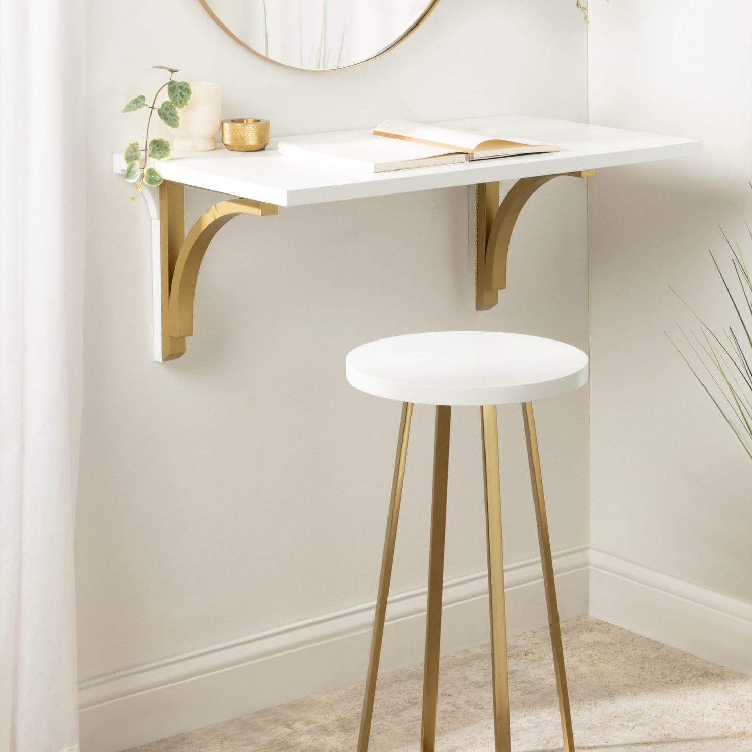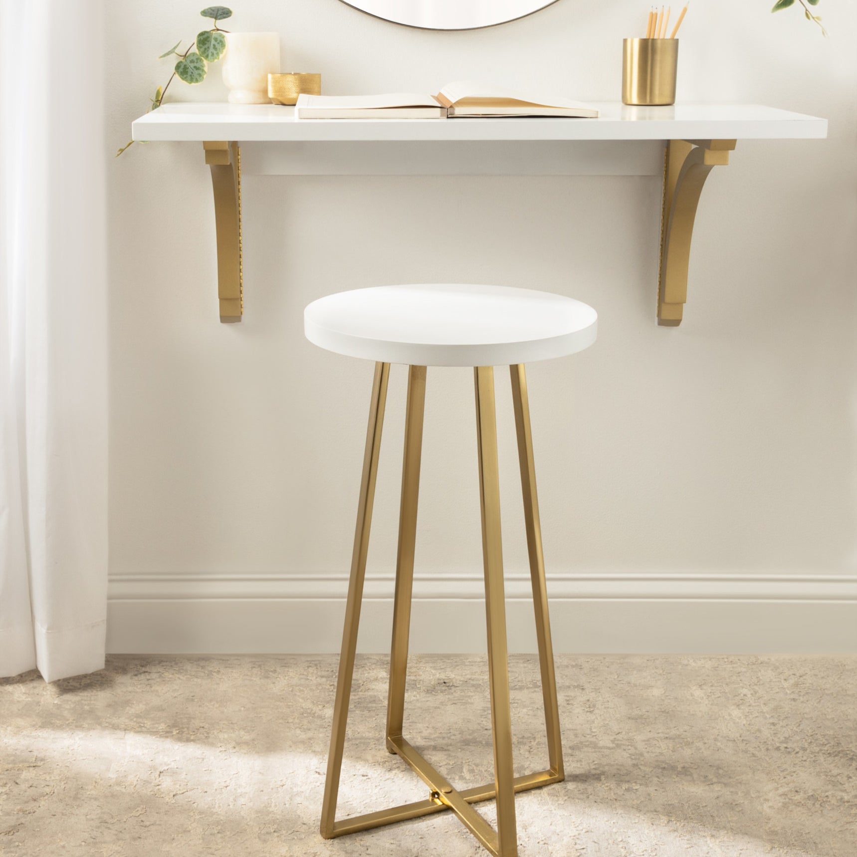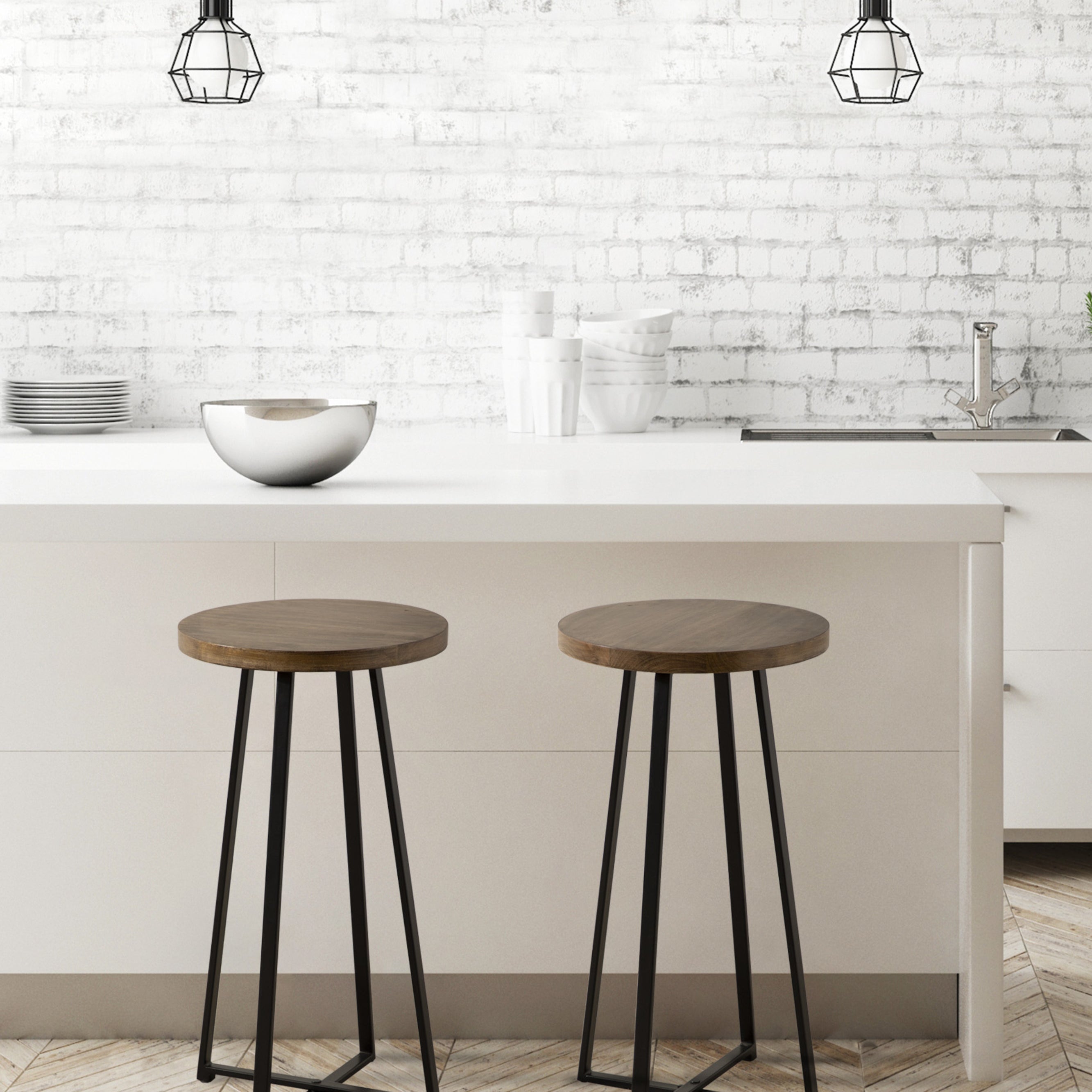 Create a modern and sophisticated aesthetic with the Zia stool. This stool is handcrafted in India with a hand-applied, two-tone finish, making each piece look distinct and varied. It's great for use as a counter stool, a plant stand, a seat next to your makeup vanity, or extra seating in your living room. When you need extra space, it's also easy to disassemble when you need to save space; simply unscrew the round top and fold the iron X-frame.