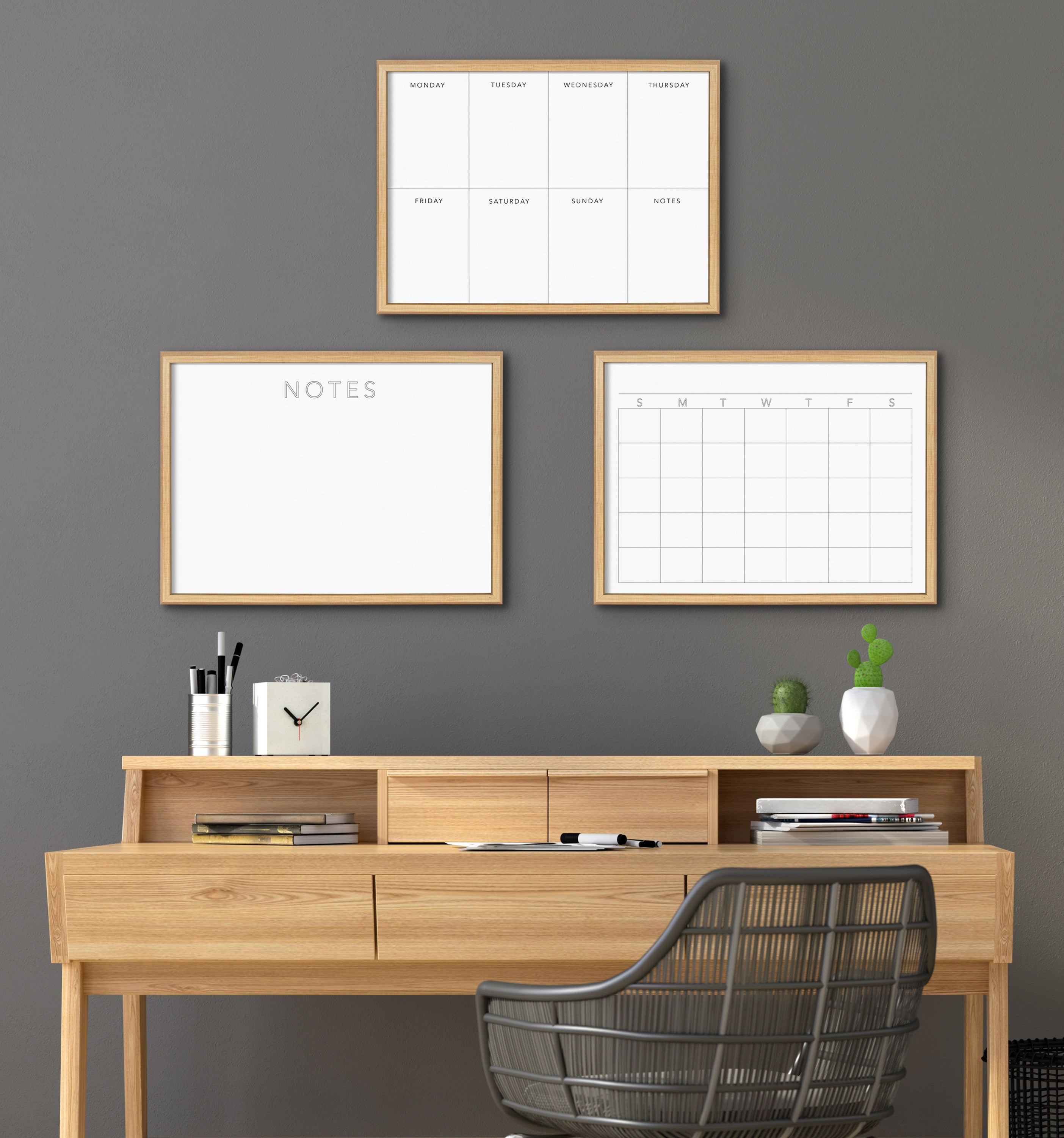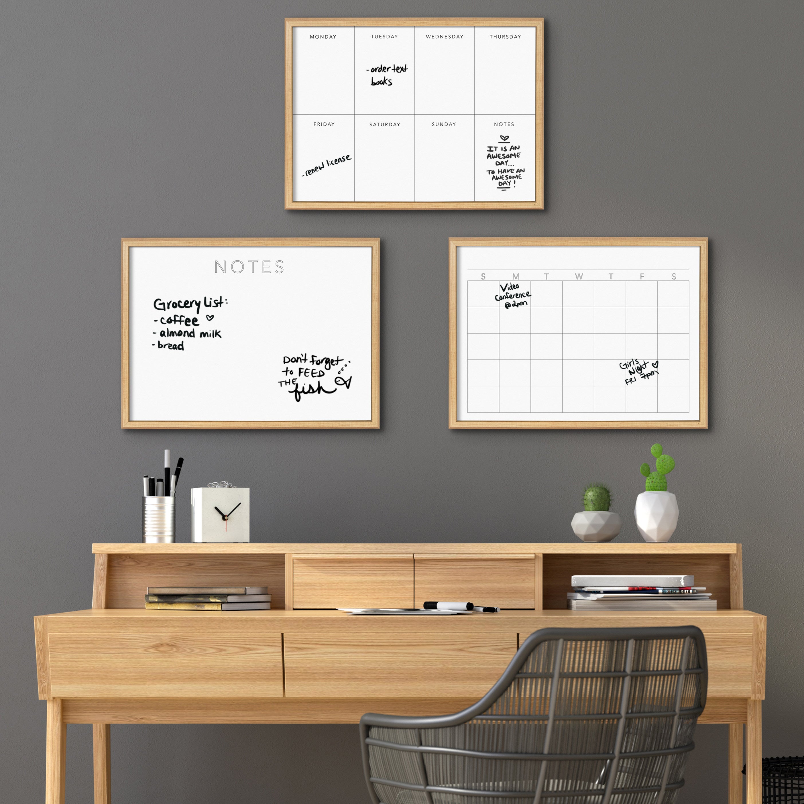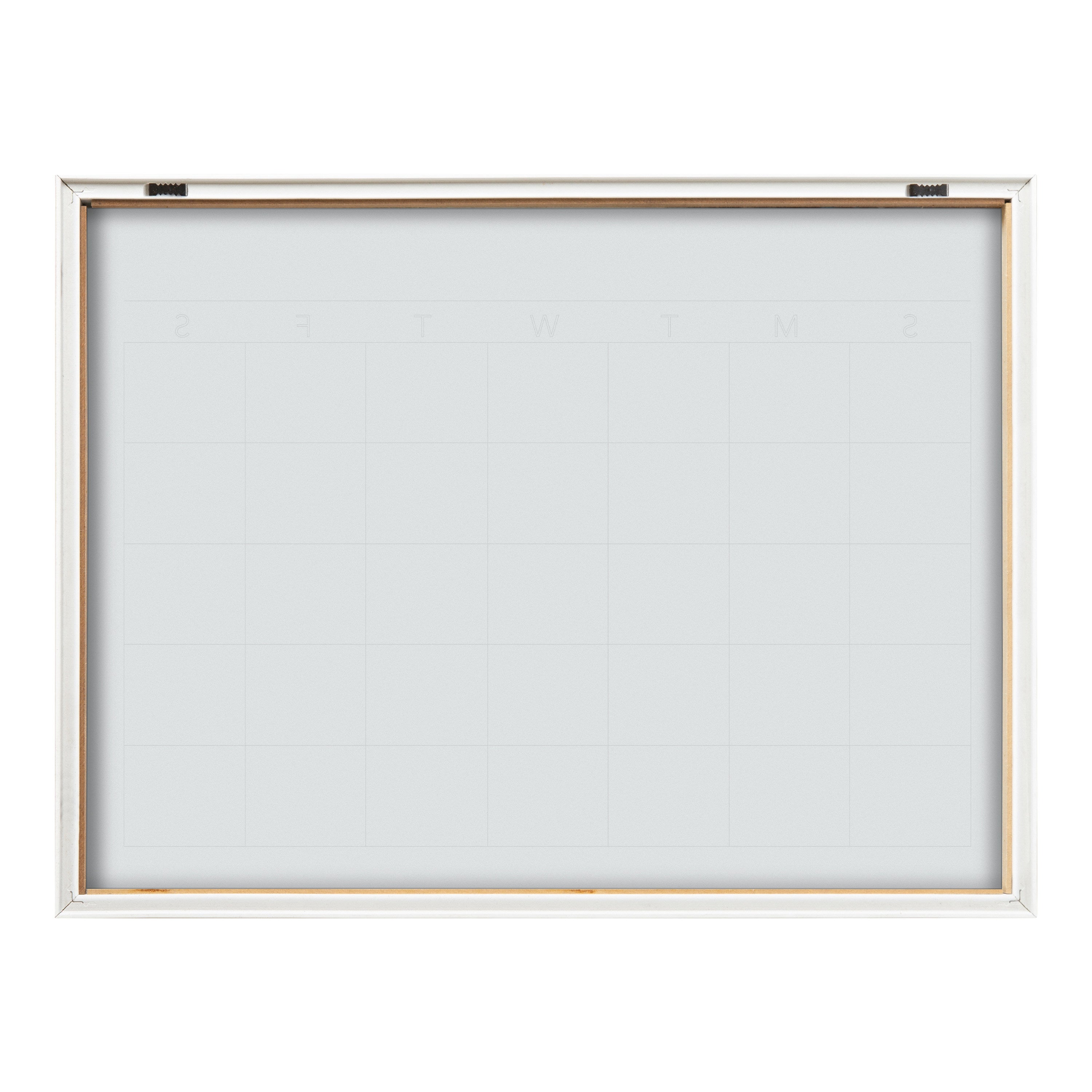 Add a classical elegant touch to any room of your home with this printed glass dry erase monthly calendar. A glass dry erase board doesn't wear out as easily as traditional whiteboards, allowing you to wipe and reuse the surface over and over again. Dry erase markers are not included. Printed on glass and framed with a lightweight polystyrene frame, this neutral wall organizer has hangers already attached for easy wall display.