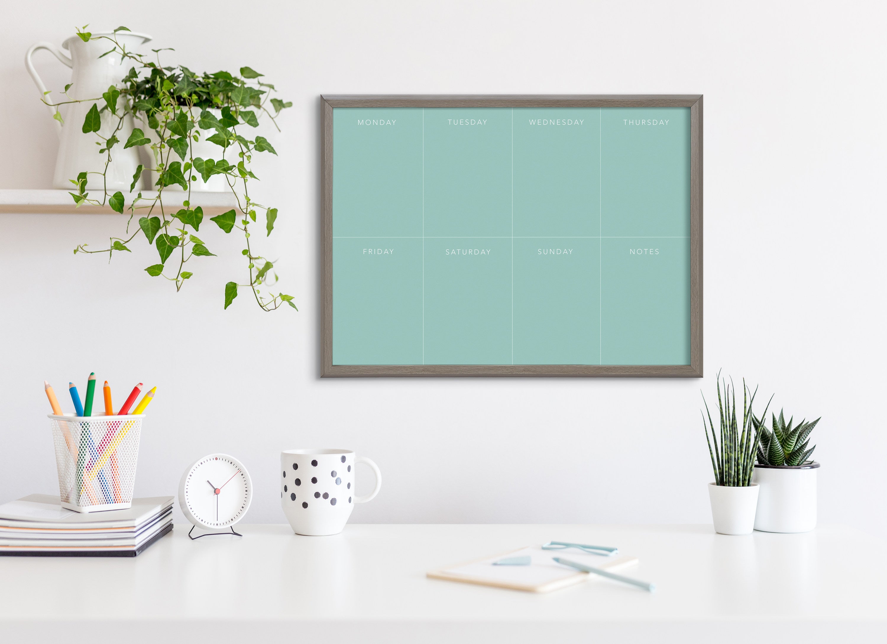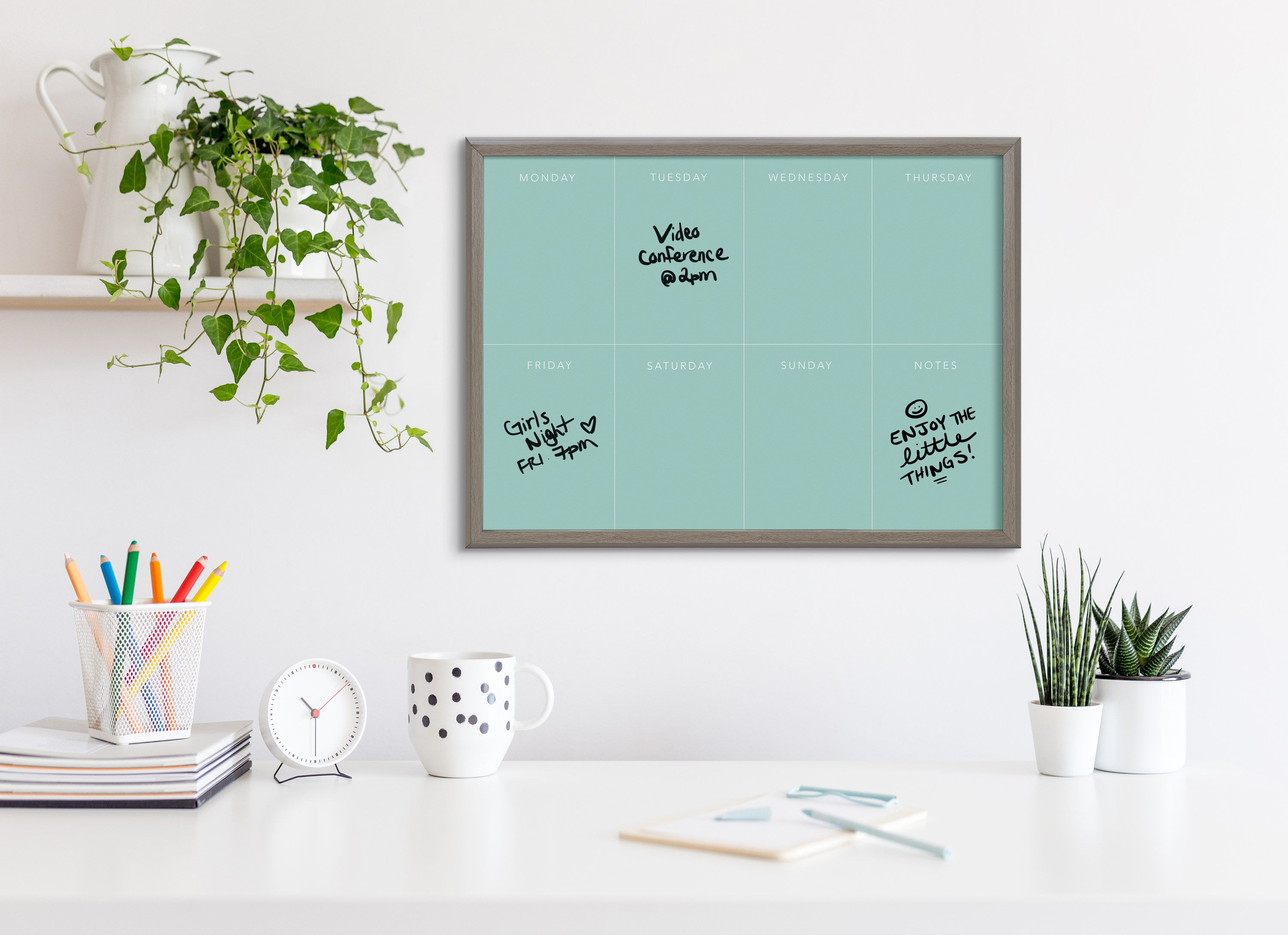 Add a classical elegant touch to any room of your home with this printed glass dry erase weekly calendar. A glass dry erase board doesn't wear out as easily as traditional whiteboards, allowing you to wipe and reuse the surface over and over again. Dry erase markers are not included. Printed on glass and framed with a lightweight polystyrene frame, this neutral wall organizer has hangers already attached for easy wall display.