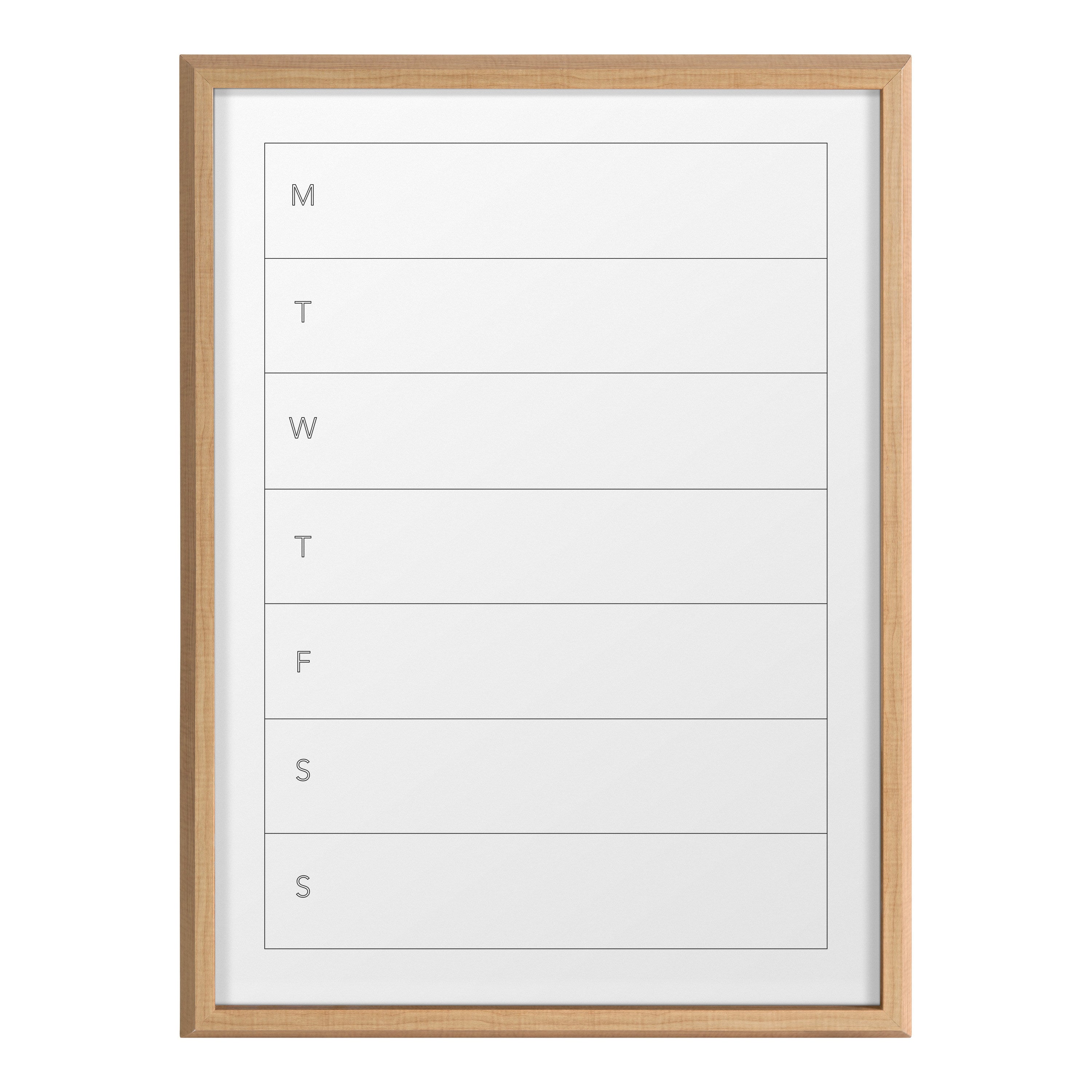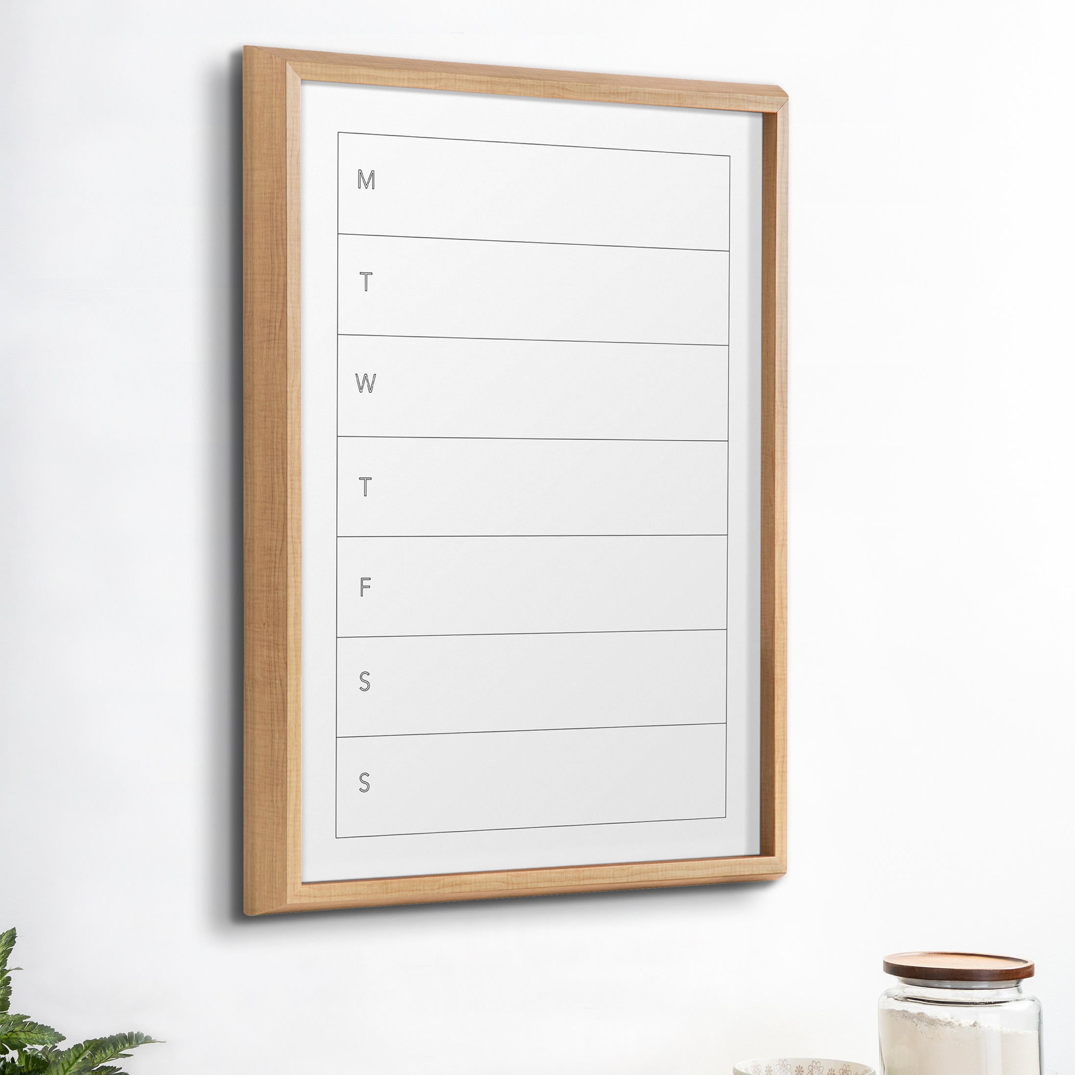 Add a classical touch to any room of your home with this printed glass dry erase weekly calendar. A glass dry erase board doesn't wear out as easily as traditional whiteboards, allowing you to wipe and reuse the surface over and over again. Dry erase markers are not included. Printed on glass and framed with a lightweight polystyrene frame, this neutral wall organizer has hangers already attached for easy wall display.