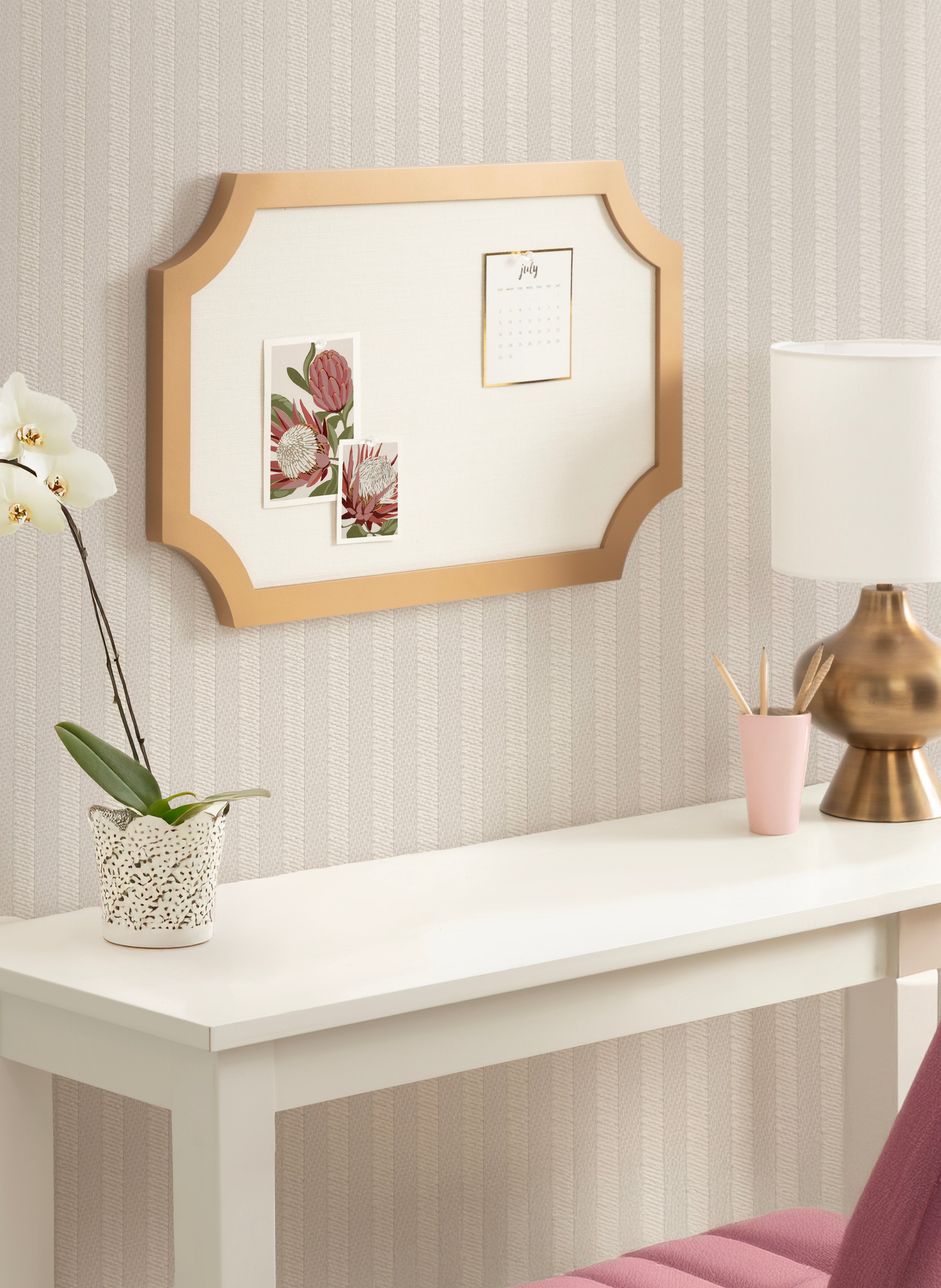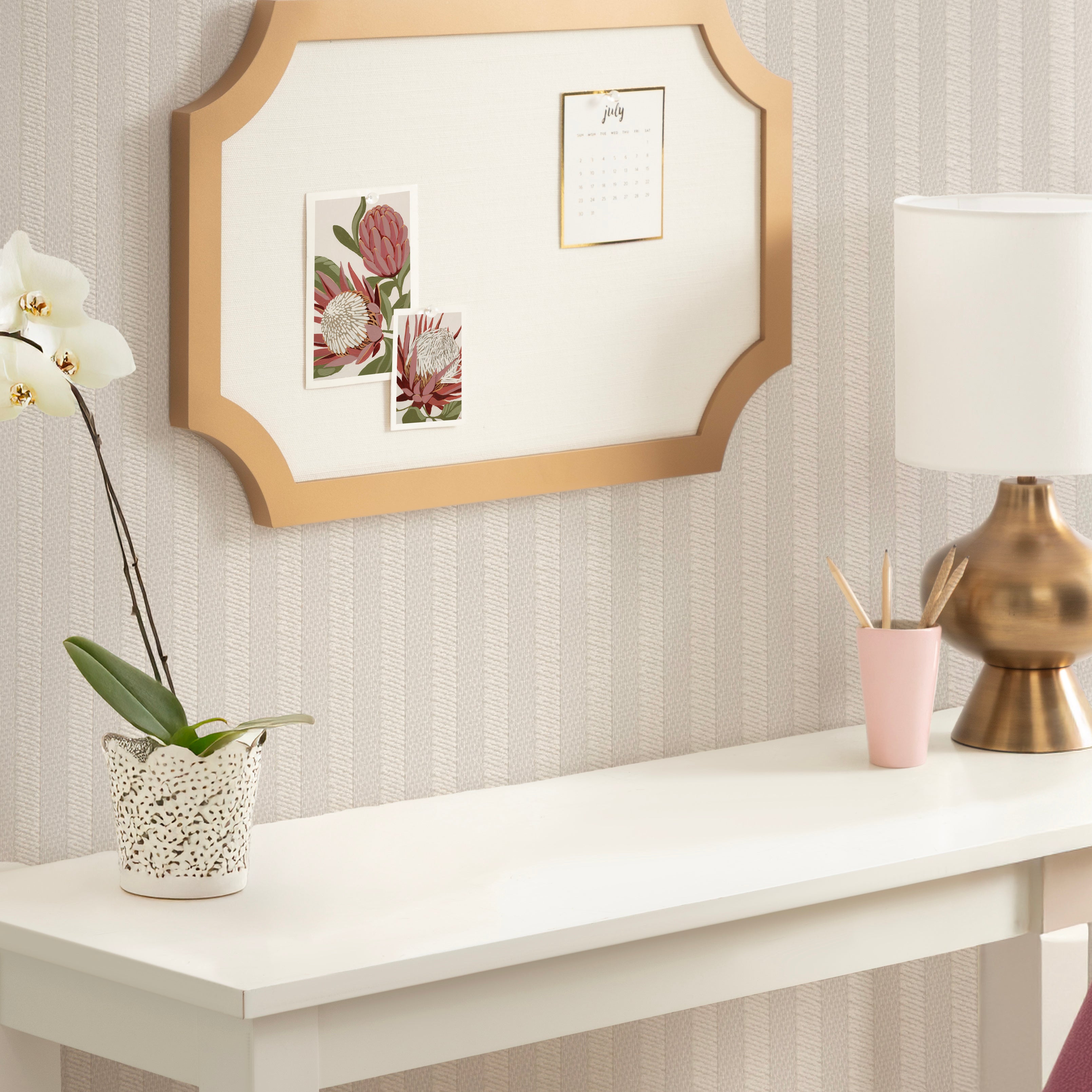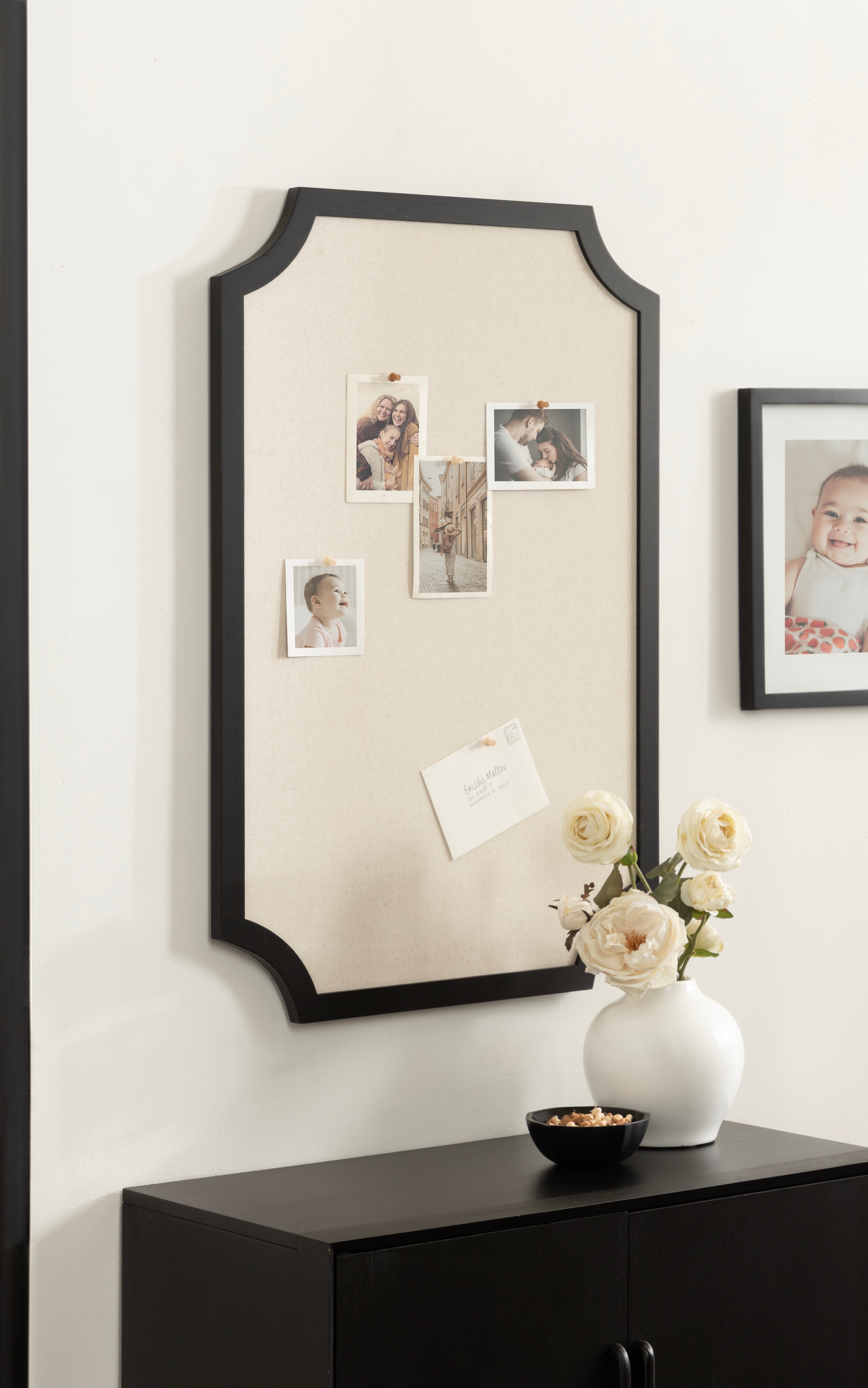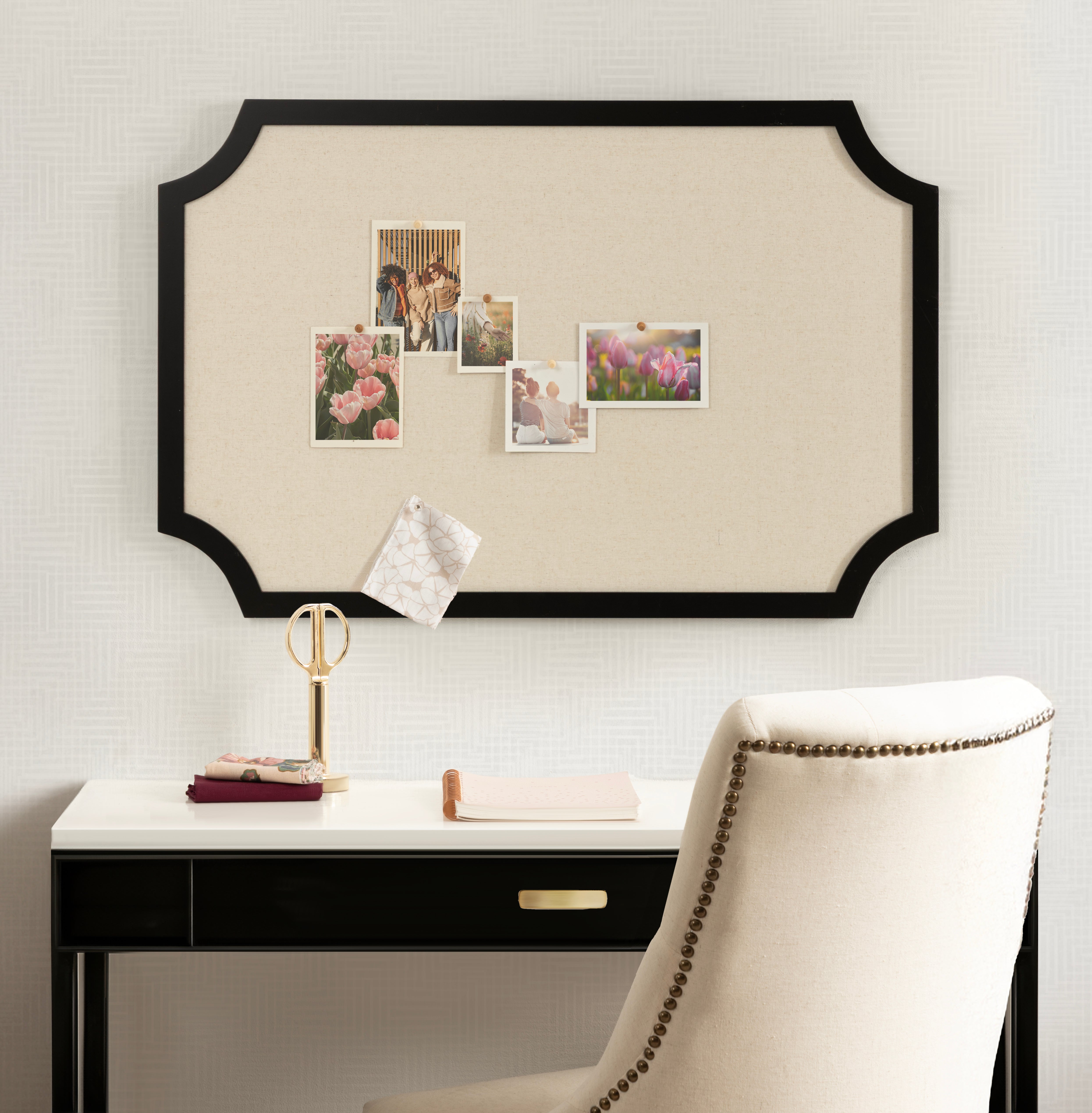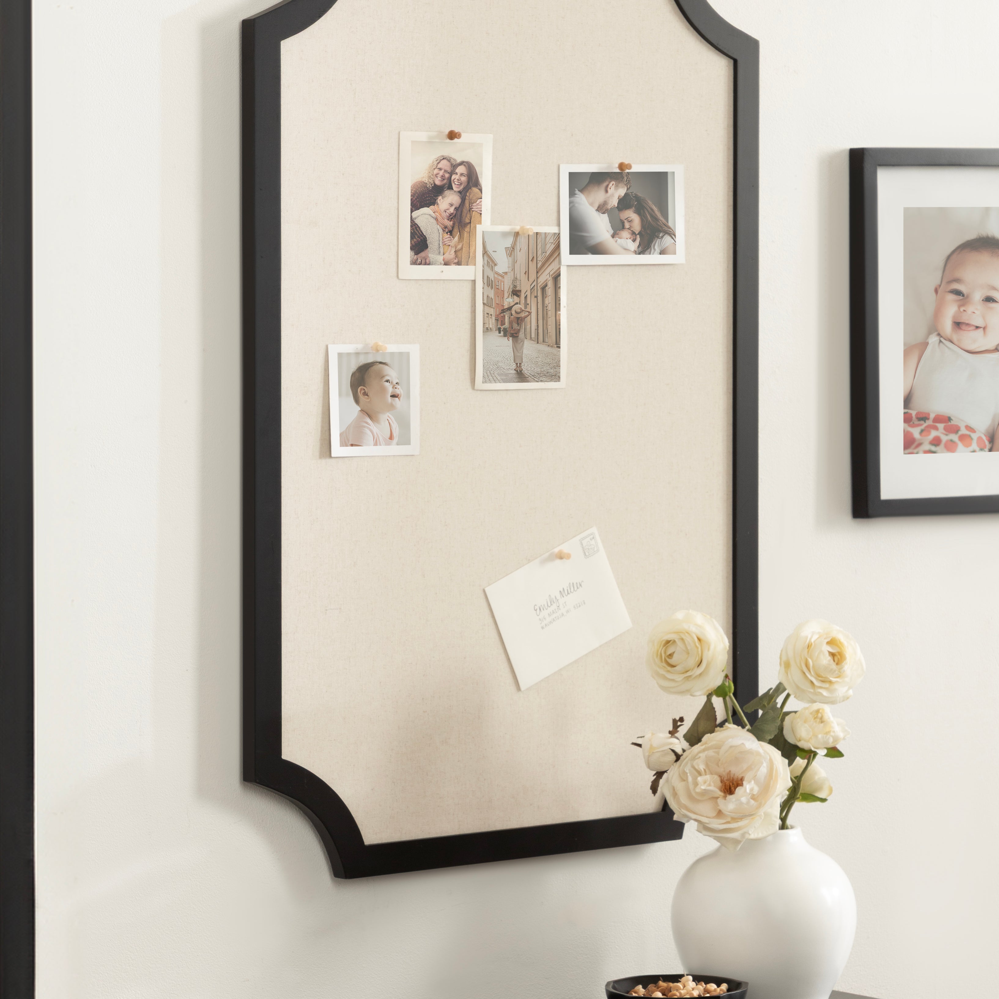 The Holbrook pinboard brings glamorous sophistication and functional elegance to your home organization. This bulletin board features Moroccan-like scalloped corners with an attractive geometric shape to draw the eye and bring a lovely accent to your wall. Use the smooth fabric pinning surface for posting photos, holiday cards, invitations, and stellar report cards. It's a beautiful way to set up a family command center or create a vision or memory board.