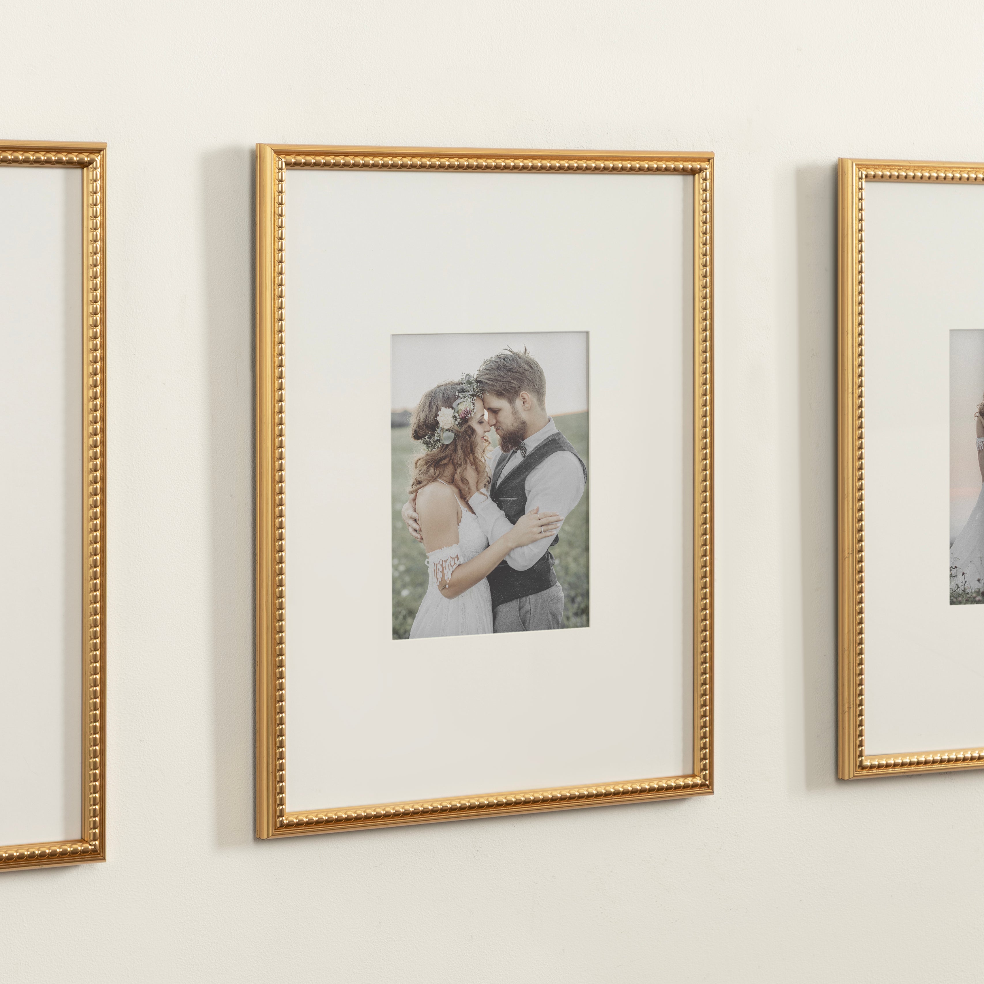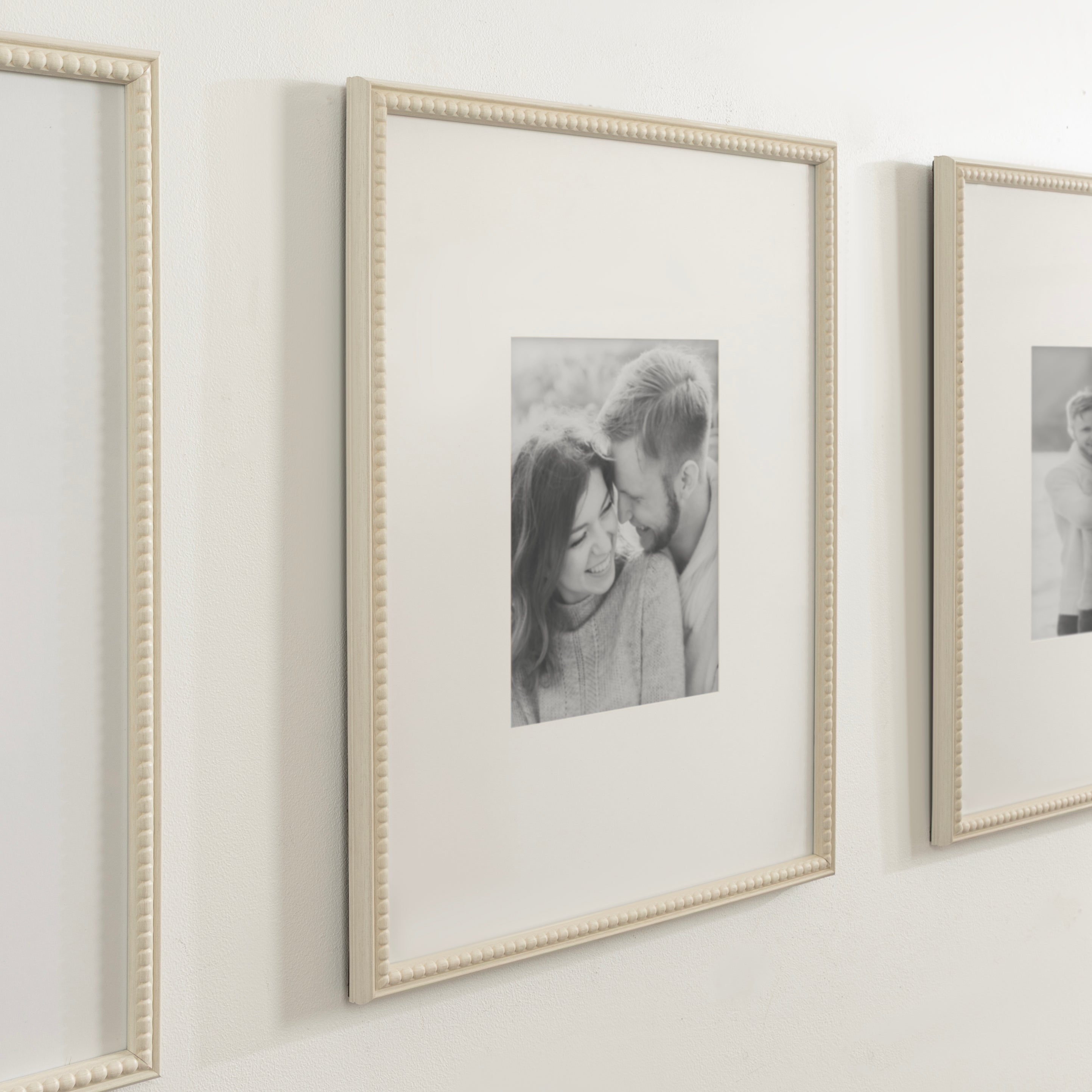 Enjoy the latest addition to our viral Adlynn picture frame set. The beaded frame design gives your space a tactile addition that fits a variety of decor styles. Family photographs should be displayed where they can be a constant reminder that time spent with family and friends should be remembered and enjoyed by everyone. Sharing those photos is a joy that brings both satisfaction and entertainment. This three-piece set fills your space with a cohesive, refined look. With three separate frames, you can showcase them together for a statement look or throughout your home for a sprawling connective look. The Kate and Laurel Adlynn picture frame set helps you tell your story creatively, tastefully and with the theme you have in mind.