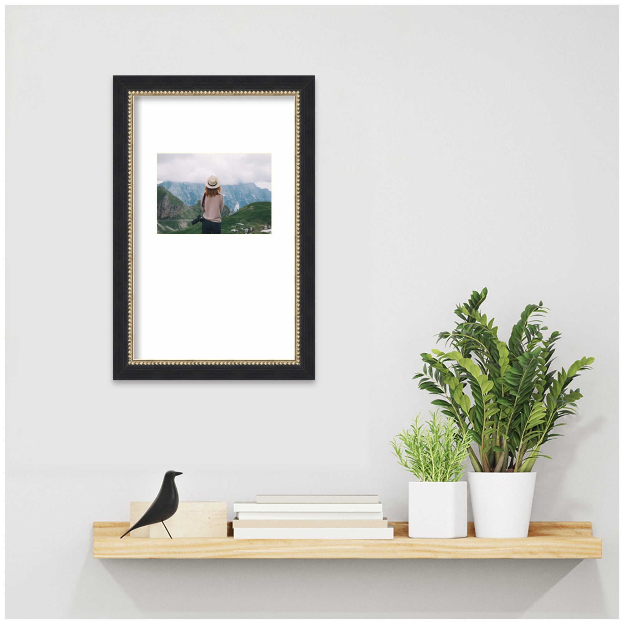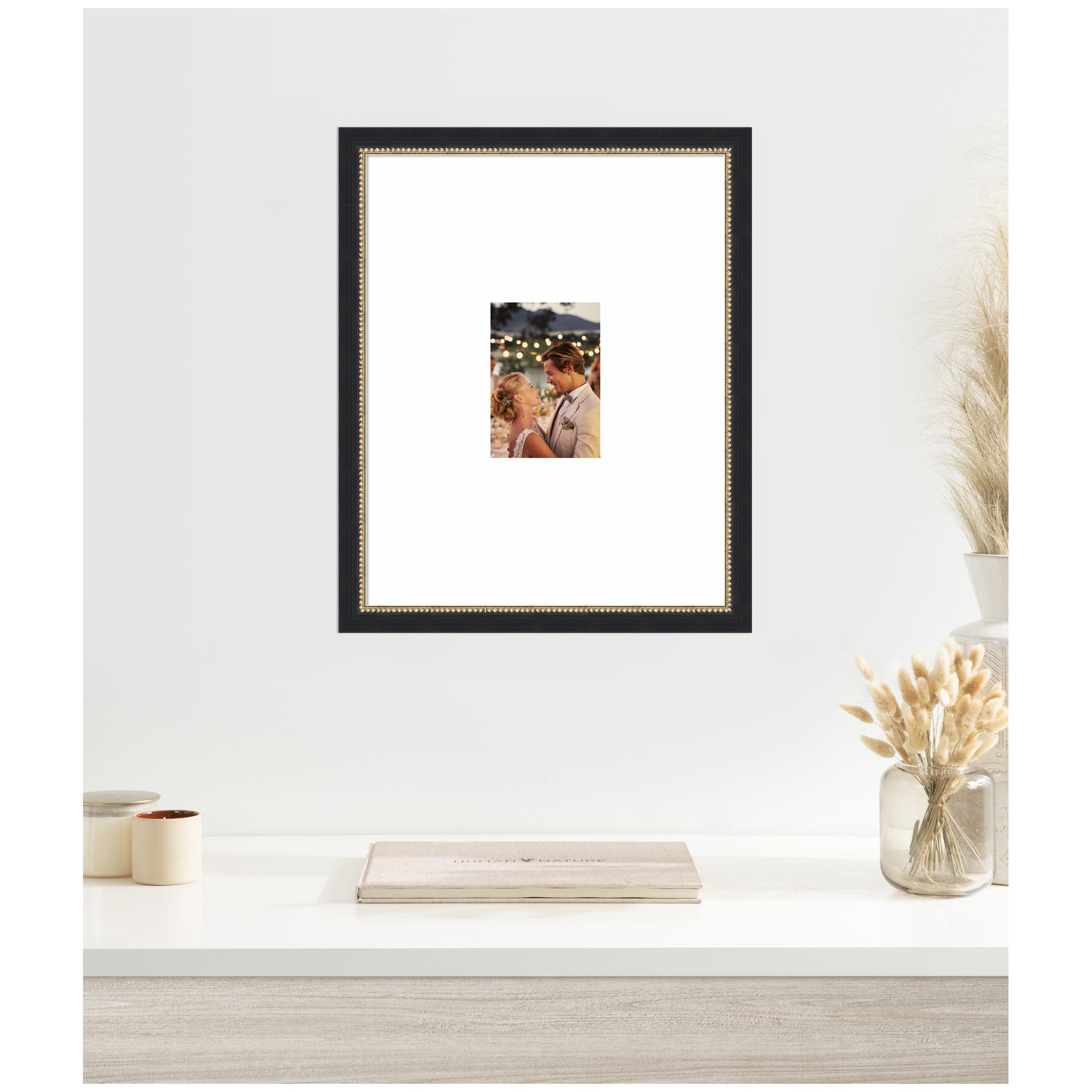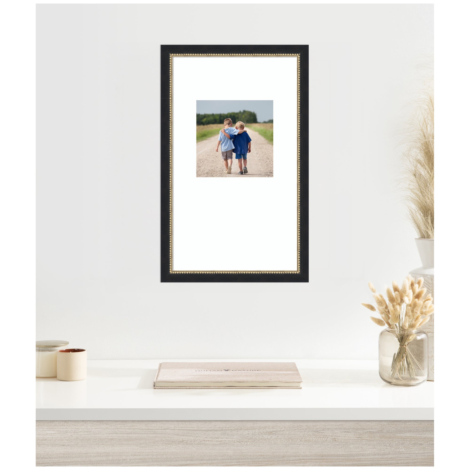 Make a statement with your photos using this stunning picture frame. Thoughtfully designed and beautifully framed by hand in Madison, WI, this photo frame is crafted to elevate any space. Featuring a specialty mat, it creates a striking presentation for your favorite photo, artwork, or award. Your image is protected with gallery-quality acrylic that provides crystal clear visibility and fade resistance. Stronger and safer than glass, it helps shield your photo from UV rays and light damage, ensuring it remains beautifully displayed for years to come. Set in the Belmont Black designer moulding, this traditional accent is made to stand out, whether styled in a living room, bedroom, office, or hallway. It also makes a meaningful gift for housewarmings, birthdays, or any special occasion.