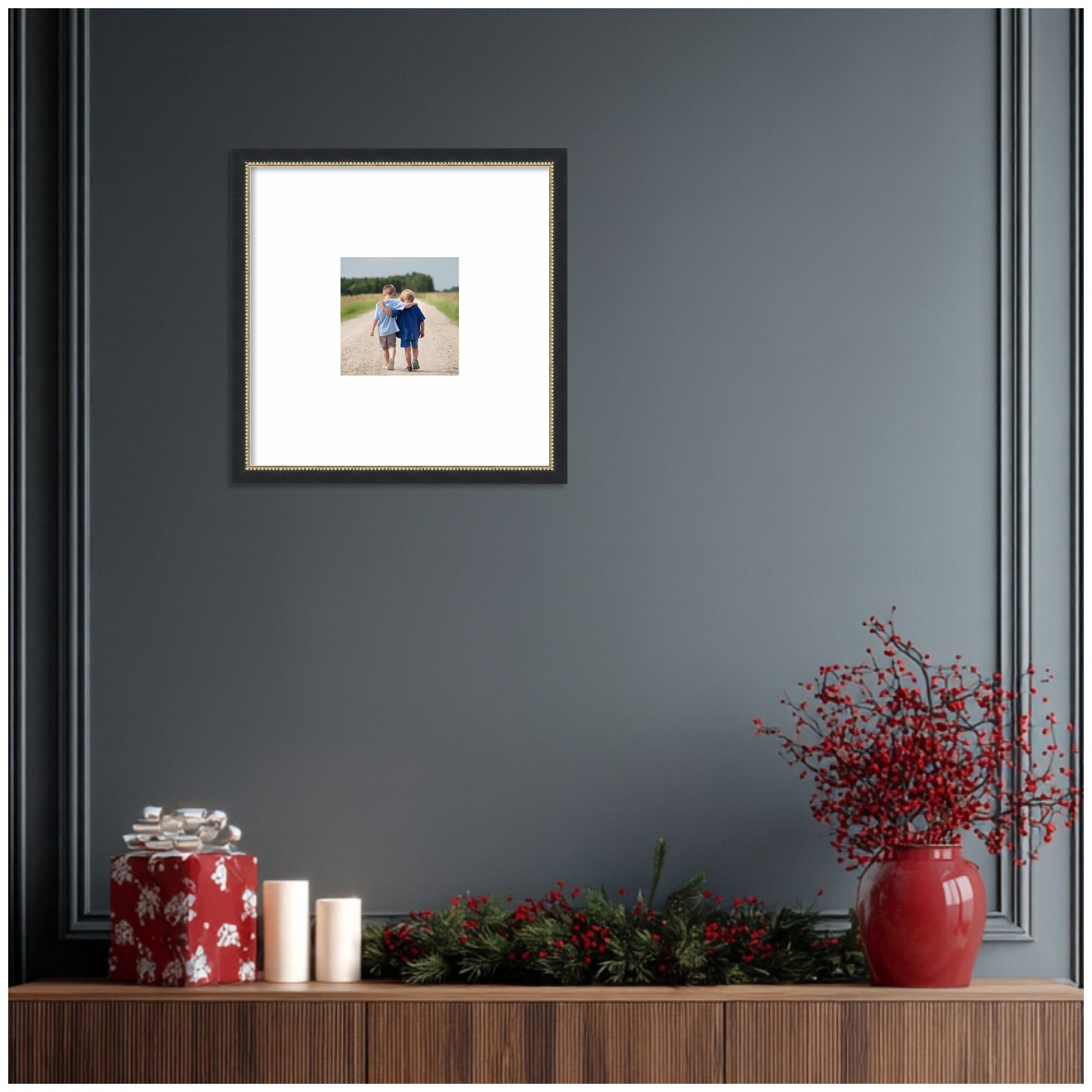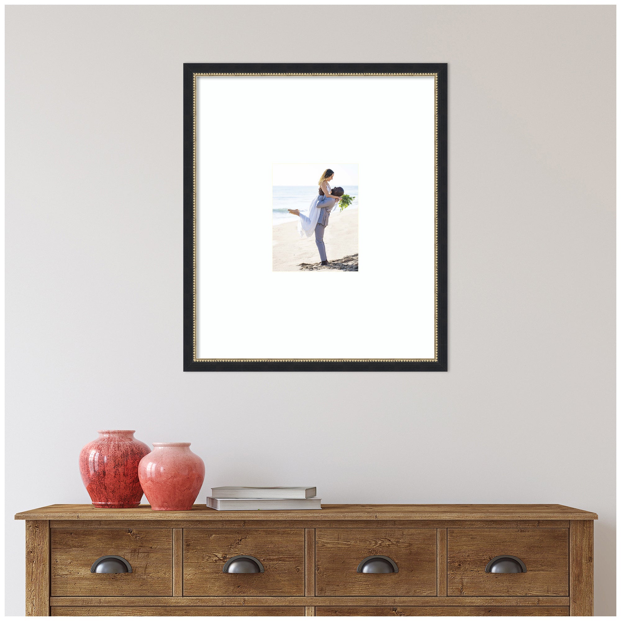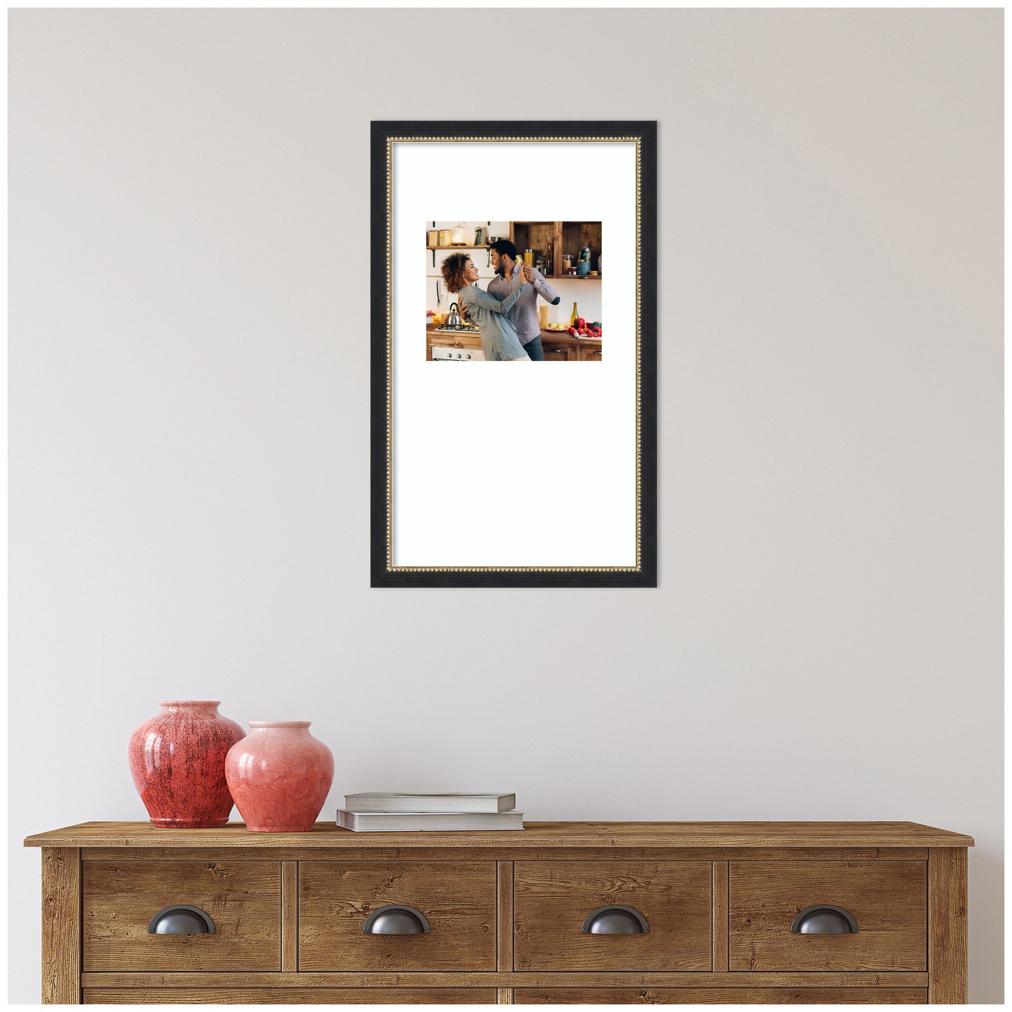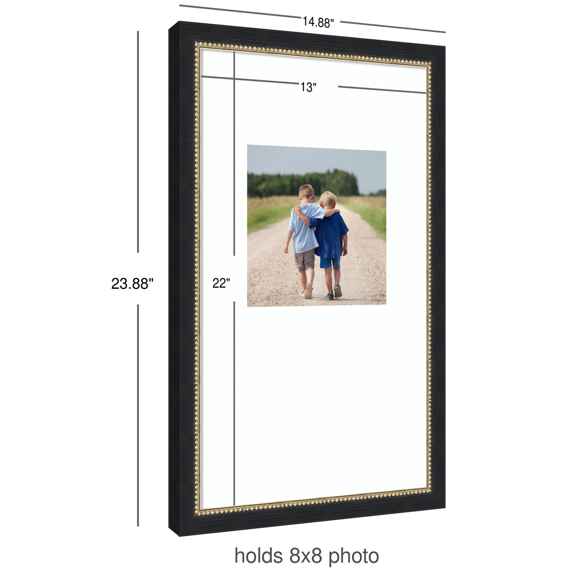 Make a statement with your photos using this stunning picture frame. Thoughtfully designed and beautifully framed by hand in Madison, WI, this photo frame is crafted to elevate any space. Featuring a specialty mat, it creates a striking presentation for your favorite photo, artwork, or award. Your image is protected with gallery-quality acrylic that provides crystal clear visibility and fade resistance. Stronger and safer than glass, it helps shield your photo from UV rays and light damage, ensuring it remains beautifully displayed for years to come. Set in the Belmont Black designer moulding, this traditional accent is made to stand out, whether styled in a living room, bedroom, office, or hallway. It also makes a meaningful gift for housewarmings, birthdays, or any special occasion.