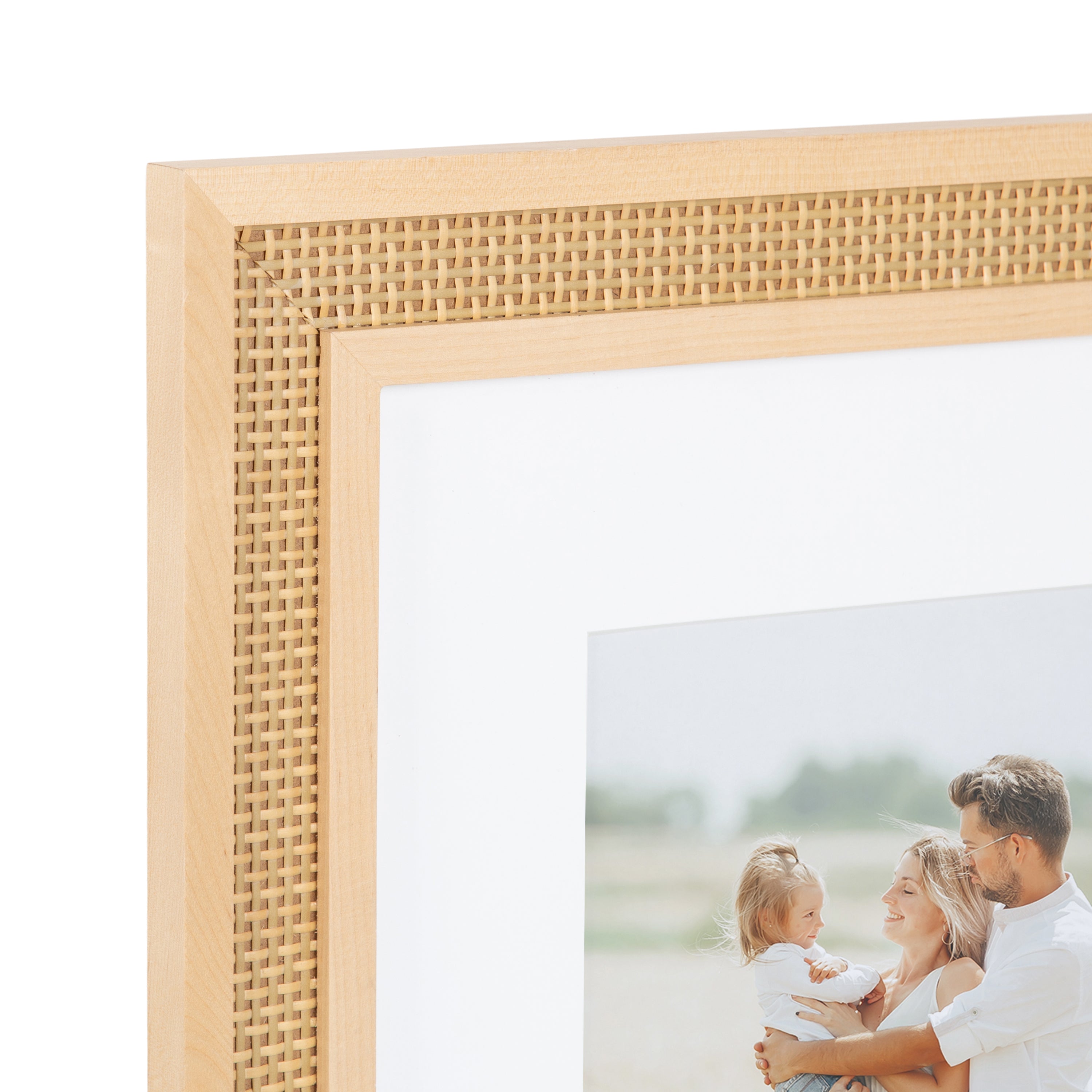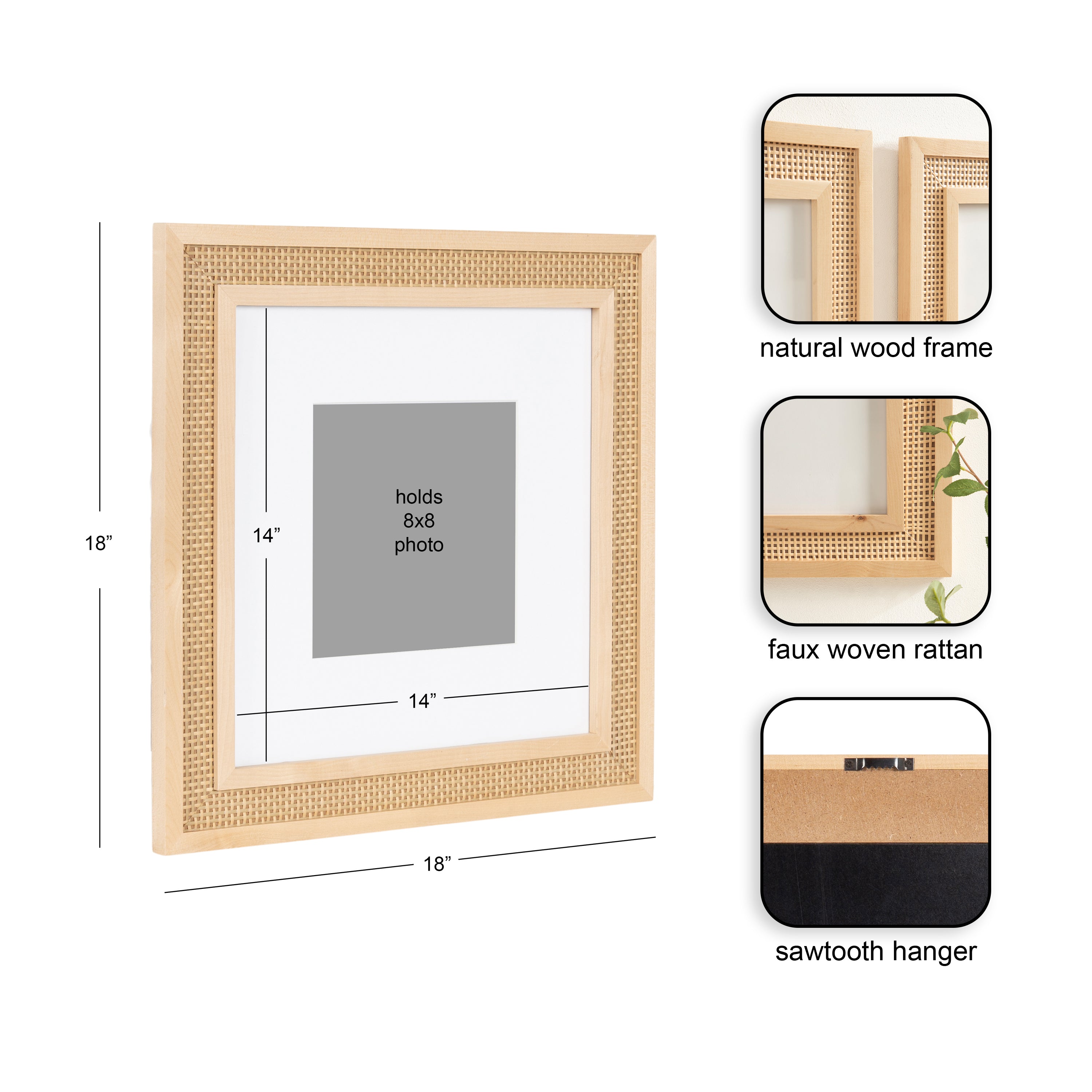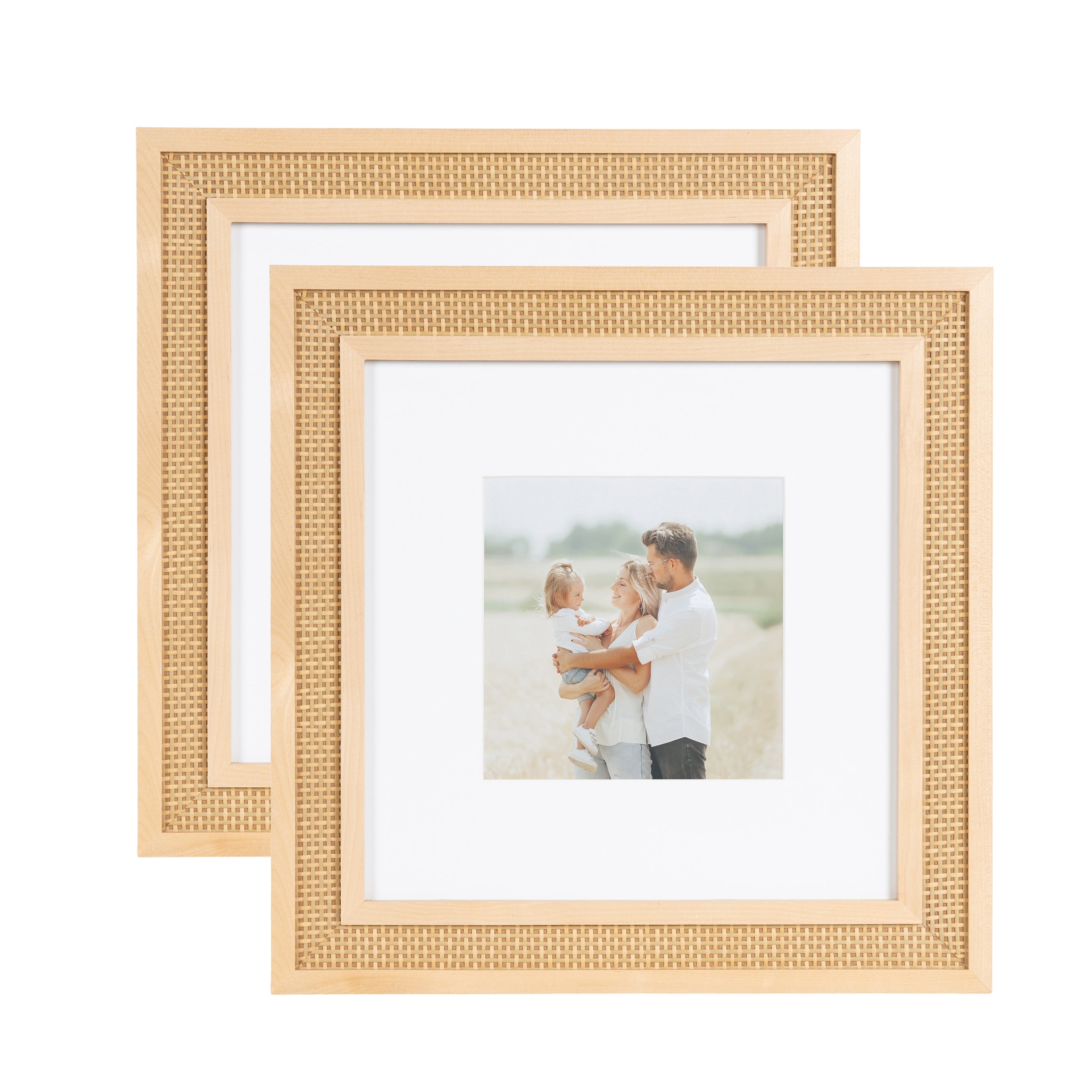 Add a delightful picture frame set to your home decor scheme with this Corah wall frame collection. Family photographs should be displayed where they can be a constant reminder that time spent with family and friends should be remembered and enjoyed by everyone. Sharing those photos is a joy that brings both satisfaction and entertainment. This two-piece set fills your space with a cohesive, coastal look due to its wood and faux rattan frame. With two separate frames, you can showcase them together for a statement look or throughout your home for a sprawling yet connected look. The boho picture frame set helps to tell your story creatively, tastefully, and within the theme you have in mind. The natural look of the frame profiles create a modern look and feel that accentuates your favorite photographs.