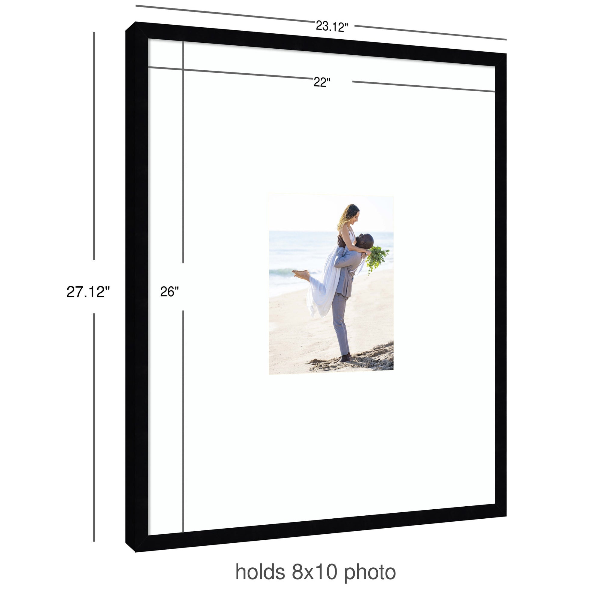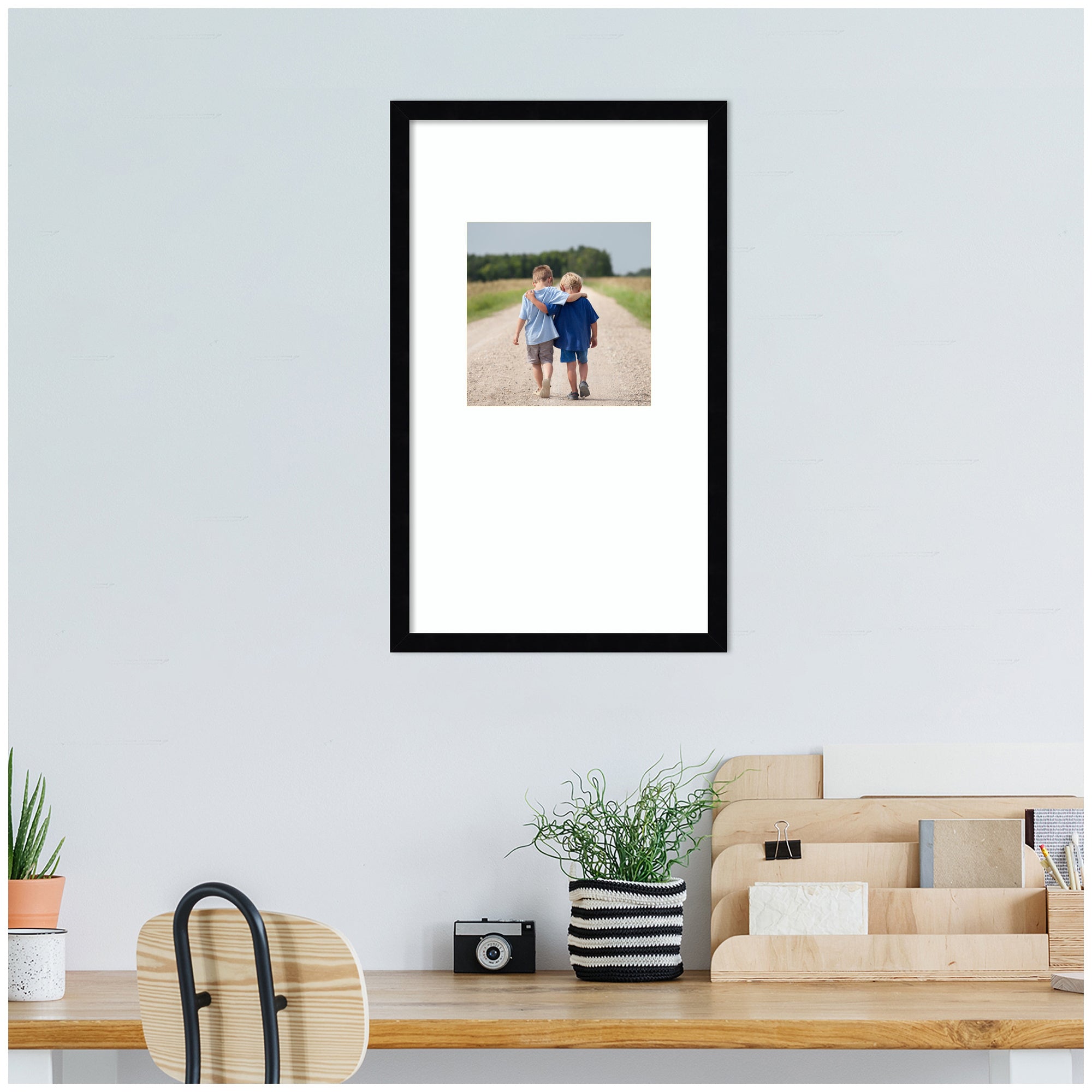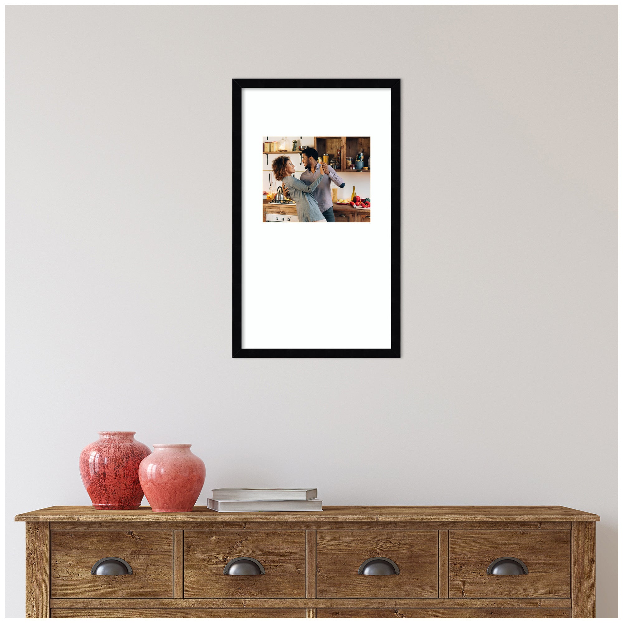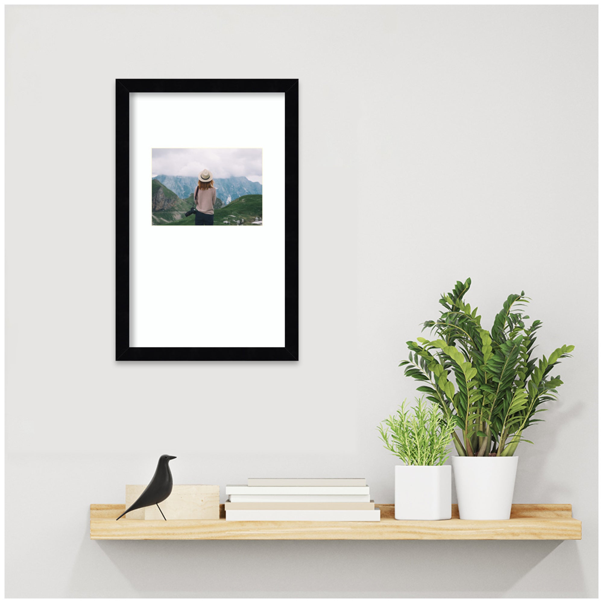 Make a statement with your photos using this stunning picture frame. Thoughtfully designed and beautifully framed by hand in Madison, WI, this photo frame is crafted to elevate any space. Featuring a specialty mat, it creates a striking presentation for your favorite photo, artwork, or award. Your image is protected with gallery-quality acrylic that provides crystal clear visibility and fade resistance. Stronger and safer than glass, it helps shield your photo from UV rays and light damage, ensuring it remains beautifully displayed for years to come. Set in the Svelte Noir Black designer moulding, this modern contemporary accent is made to stand out, whether styled in a living room, bedroom, office, or hallway. It also makes a meaningful gift for housewarmings, birthdays, or any special occasion.
