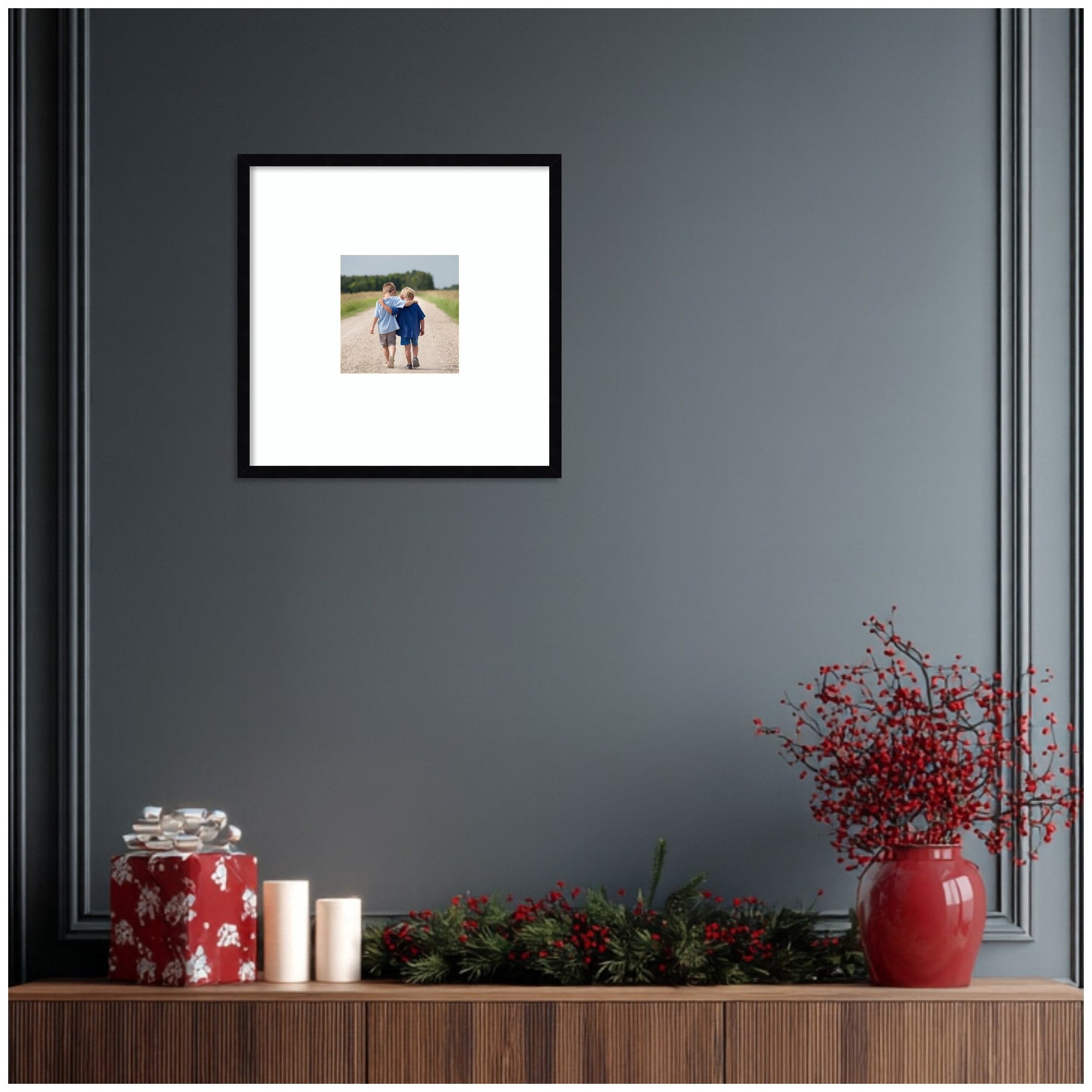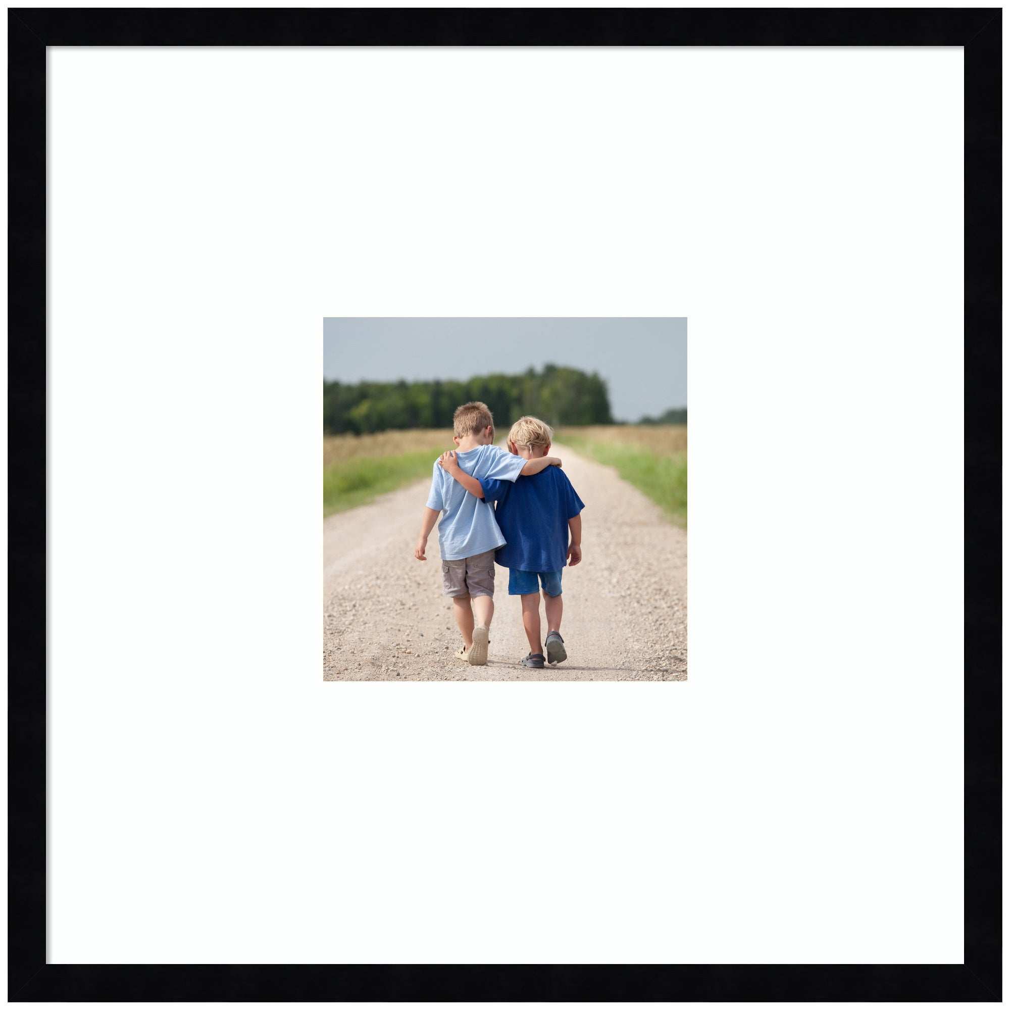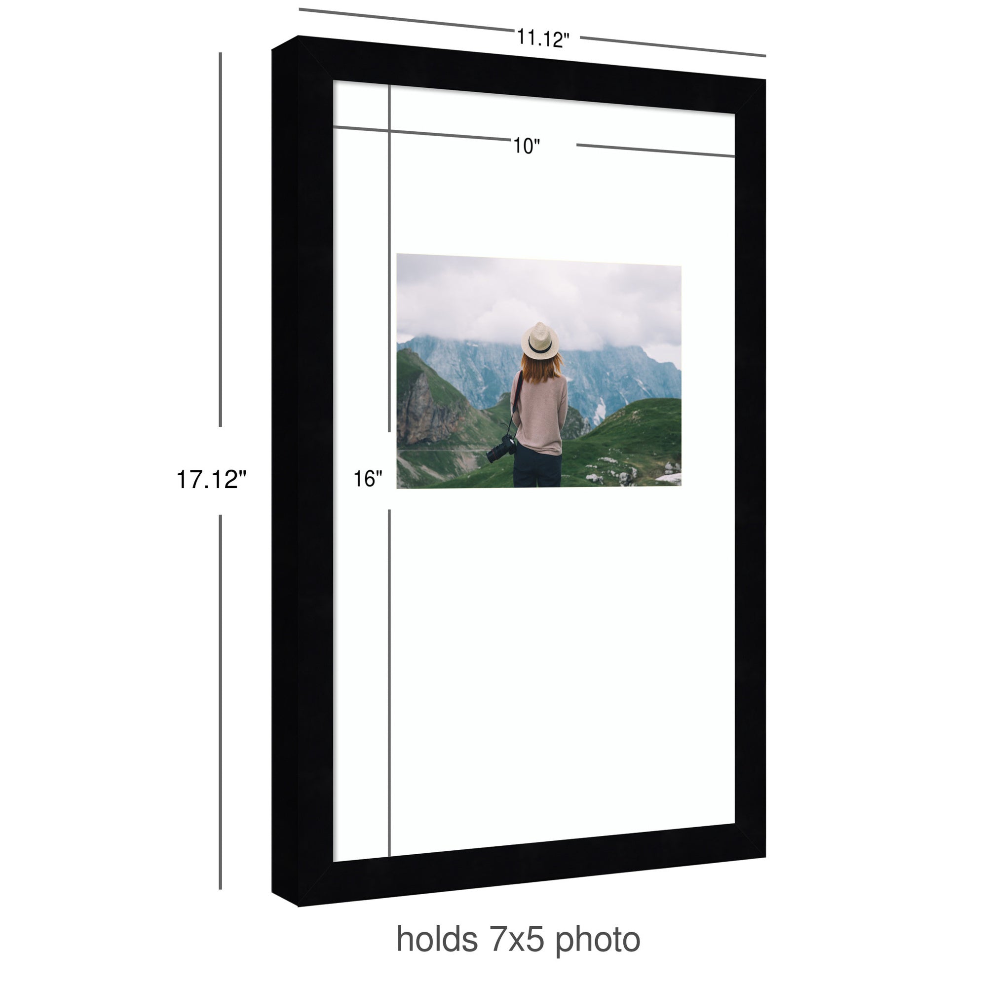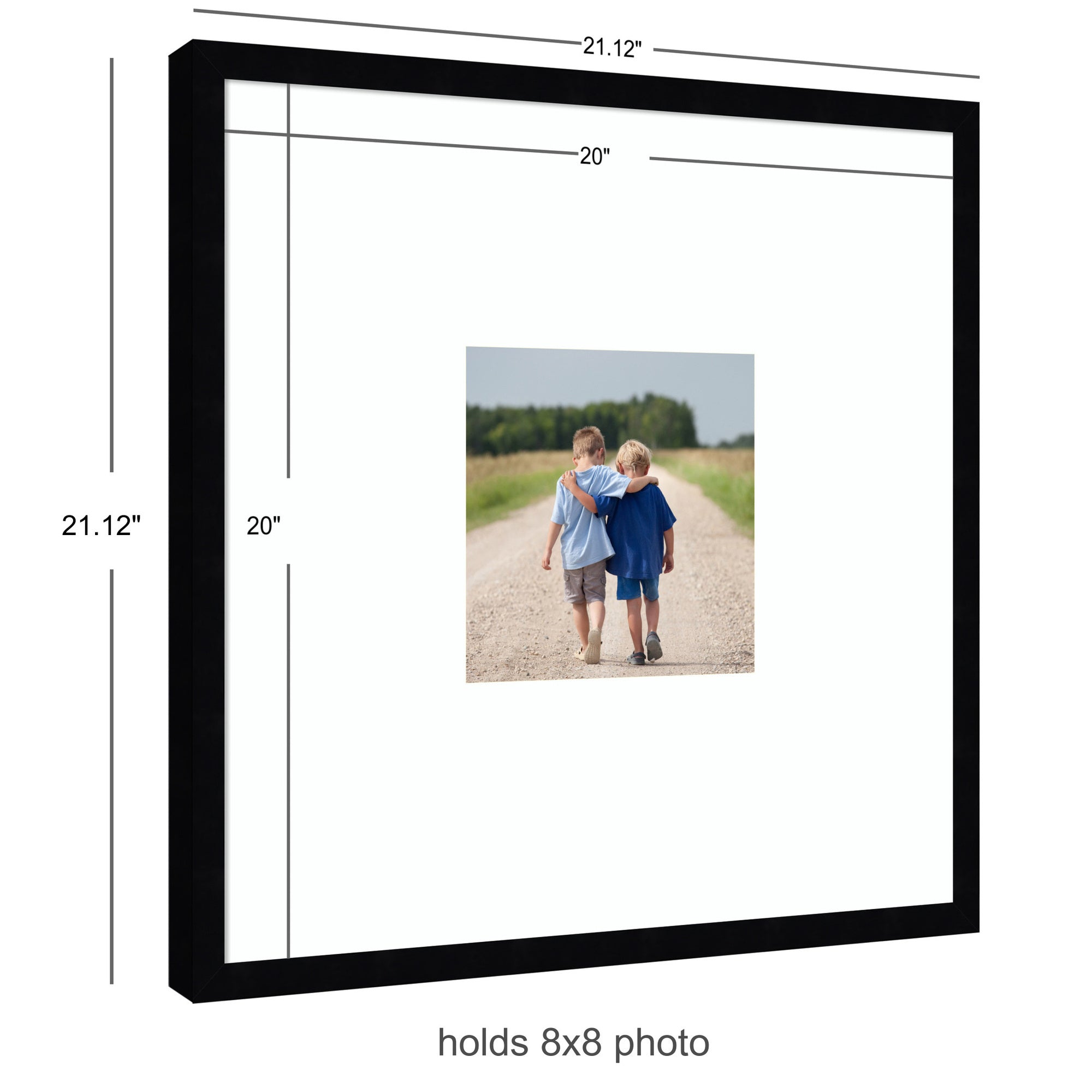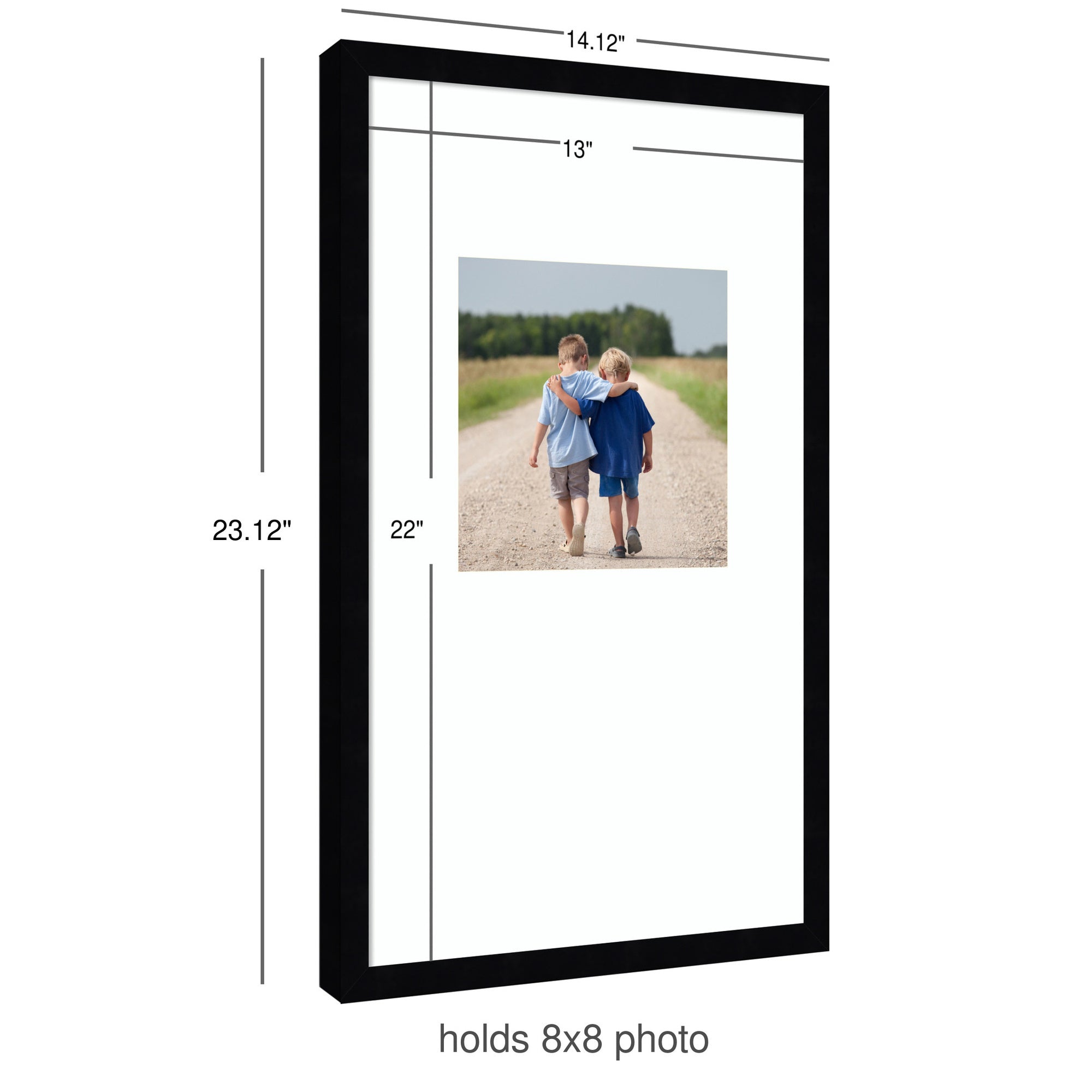 Make a statement with your photos using this stunning picture frame. Thoughtfully designed and beautifully framed by hand in Madison, WI, this photo frame is crafted to elevate any space. Featuring a specialty mat, it creates a striking presentation for your favorite photo, artwork, or award. Your image is protected with gallery-quality acrylic that provides crystal clear visibility and fade resistance. Stronger and safer than glass, it helps shield your photo from UV rays and light damage, ensuring it remains beautifully displayed for years to come. Set in the Svelte Noir Black designer moulding, this modern contemporary accent is made to stand out, whether styled in a living room, bedroom, office, or hallway. It also makes a meaningful gift for housewarmings, birthdays, or any special occasion.