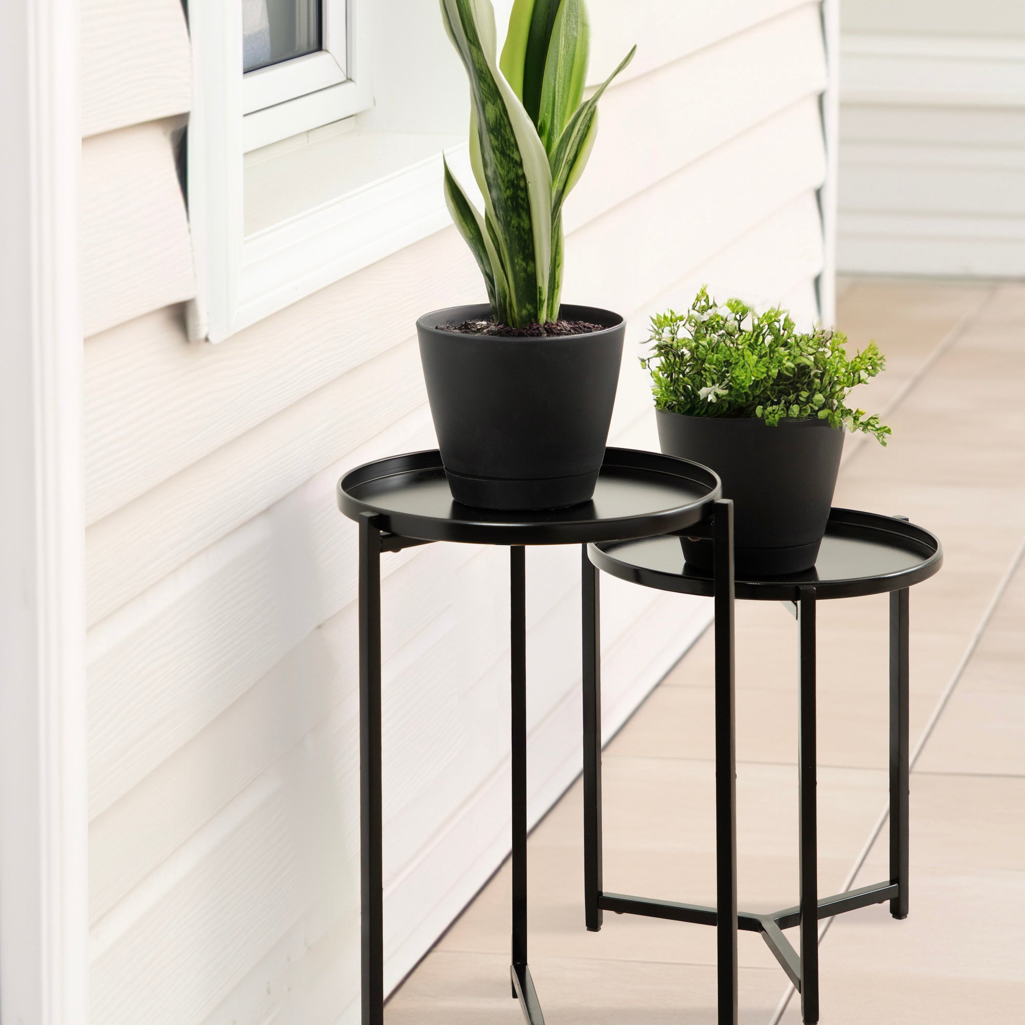 Discover a beautiful way to showcase your decorative house plants and other household items with the charming Aguilar plant stand set. The Aguilar plant stands take inspiration from the sophisticated aesthetics of modern design, featuring simple yet secure bases and graduated sizes. Both of the Aguilar plant risers feature an outdoor-grade finish for use on your patio, porch, or balcony. While these planter stands were designed primarily for outdoor use, they are also excellent plant stands for indoor plants or as small accent tables throughout your home.