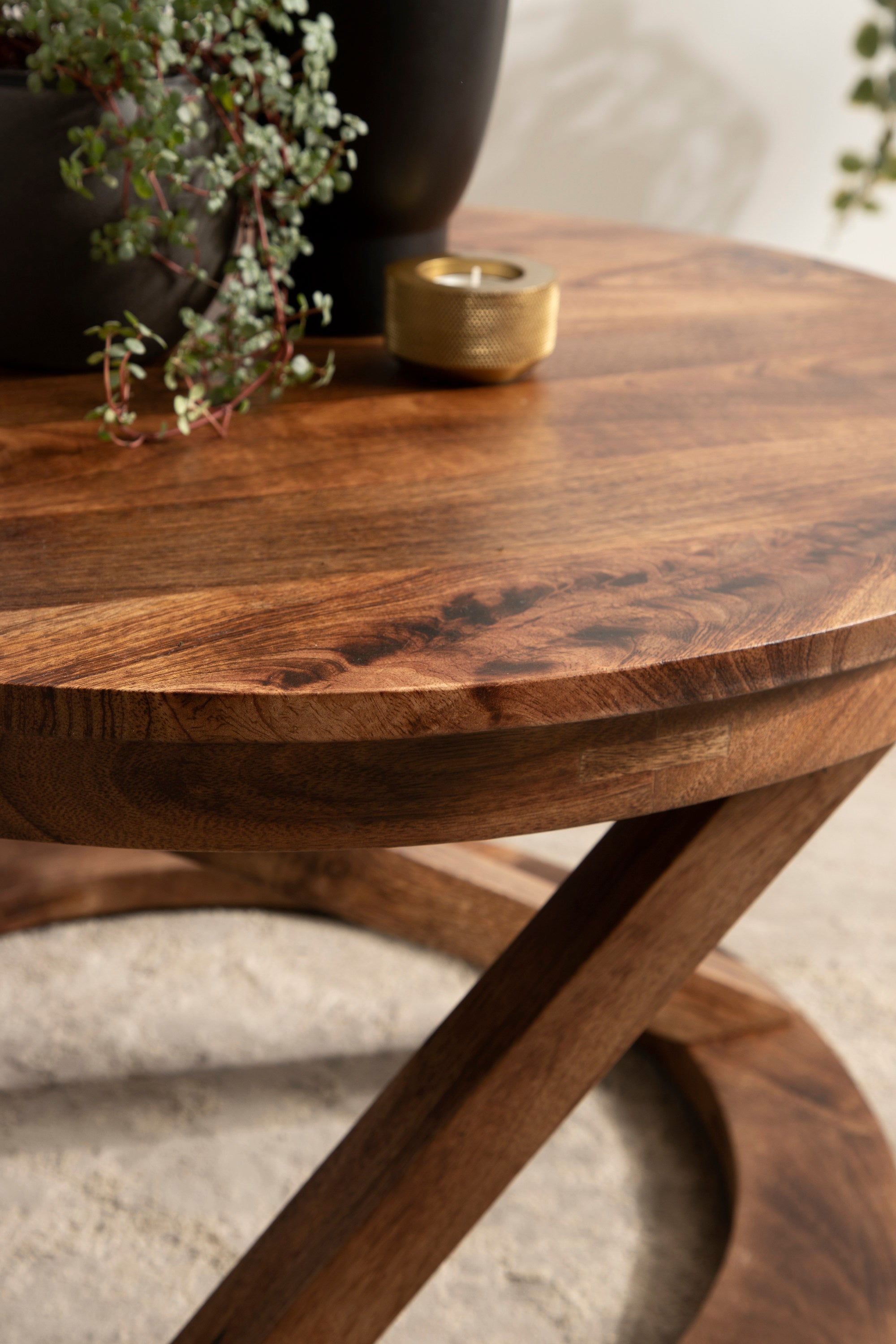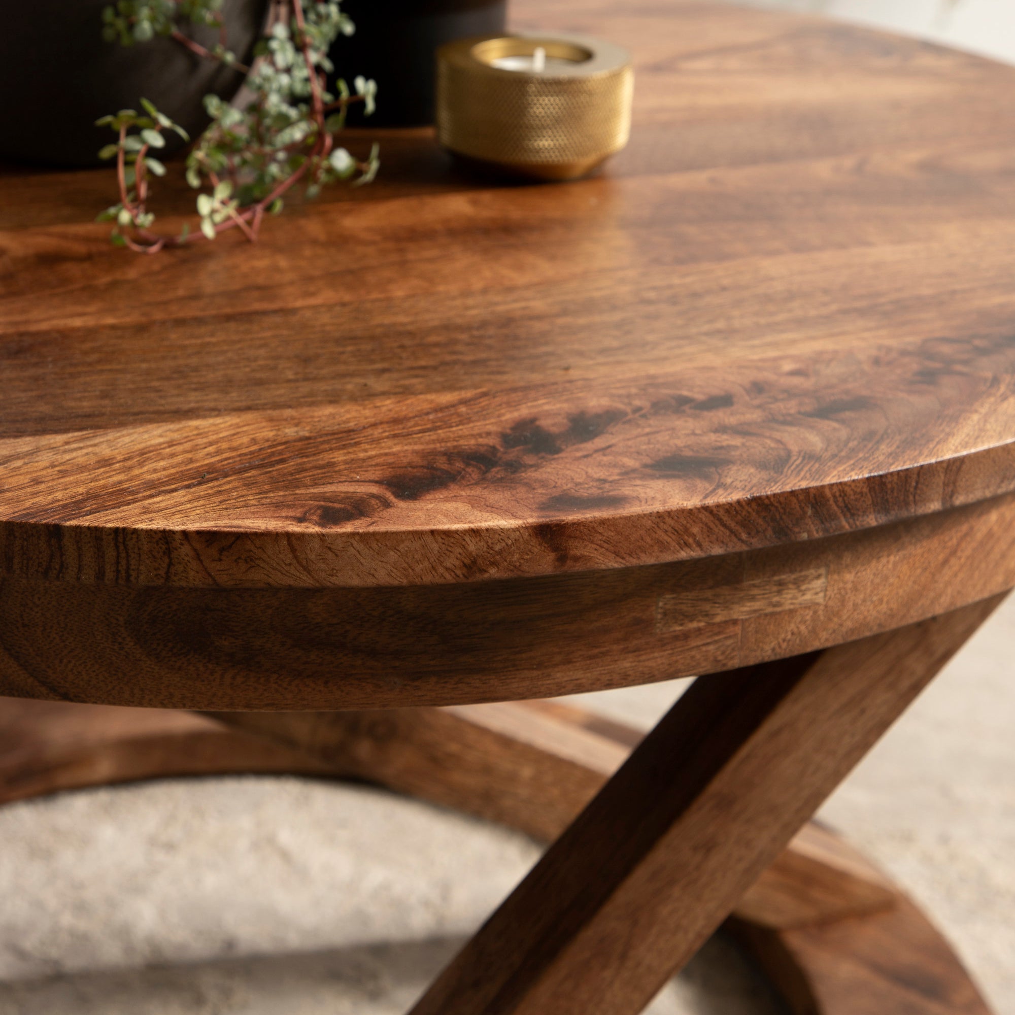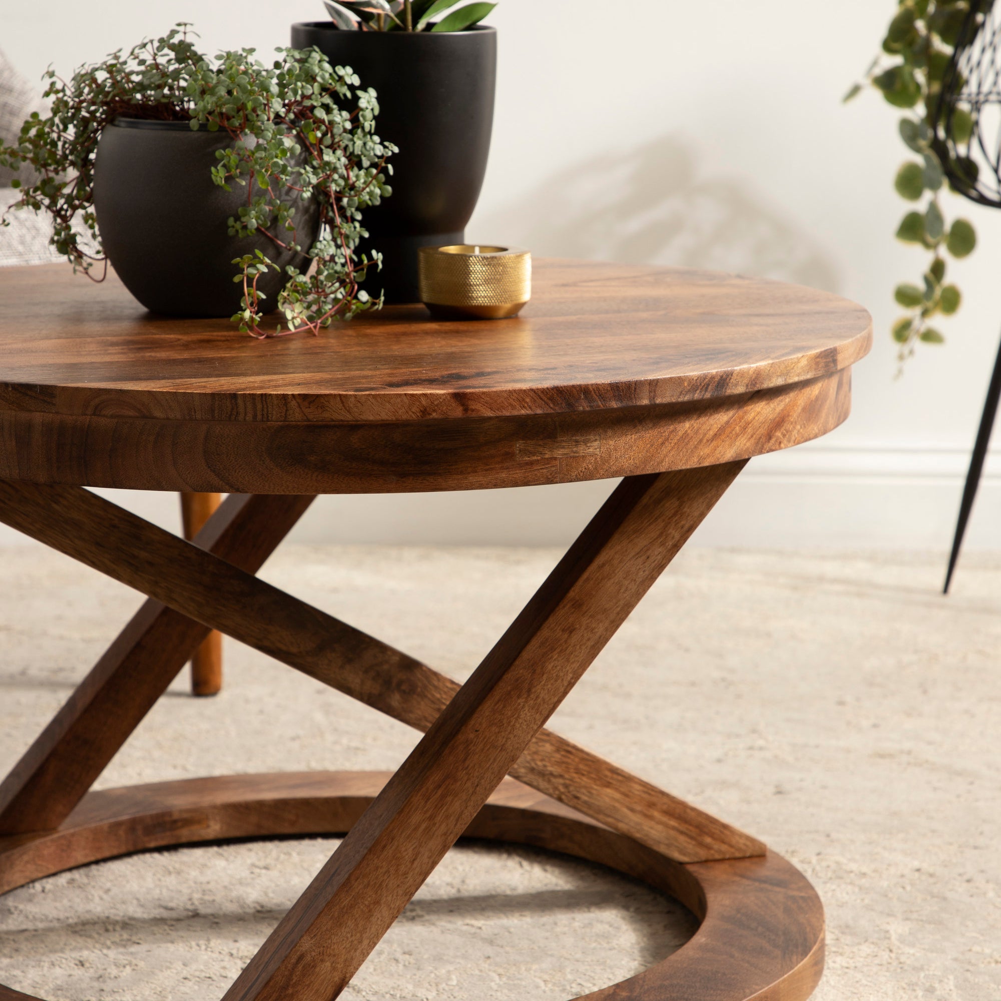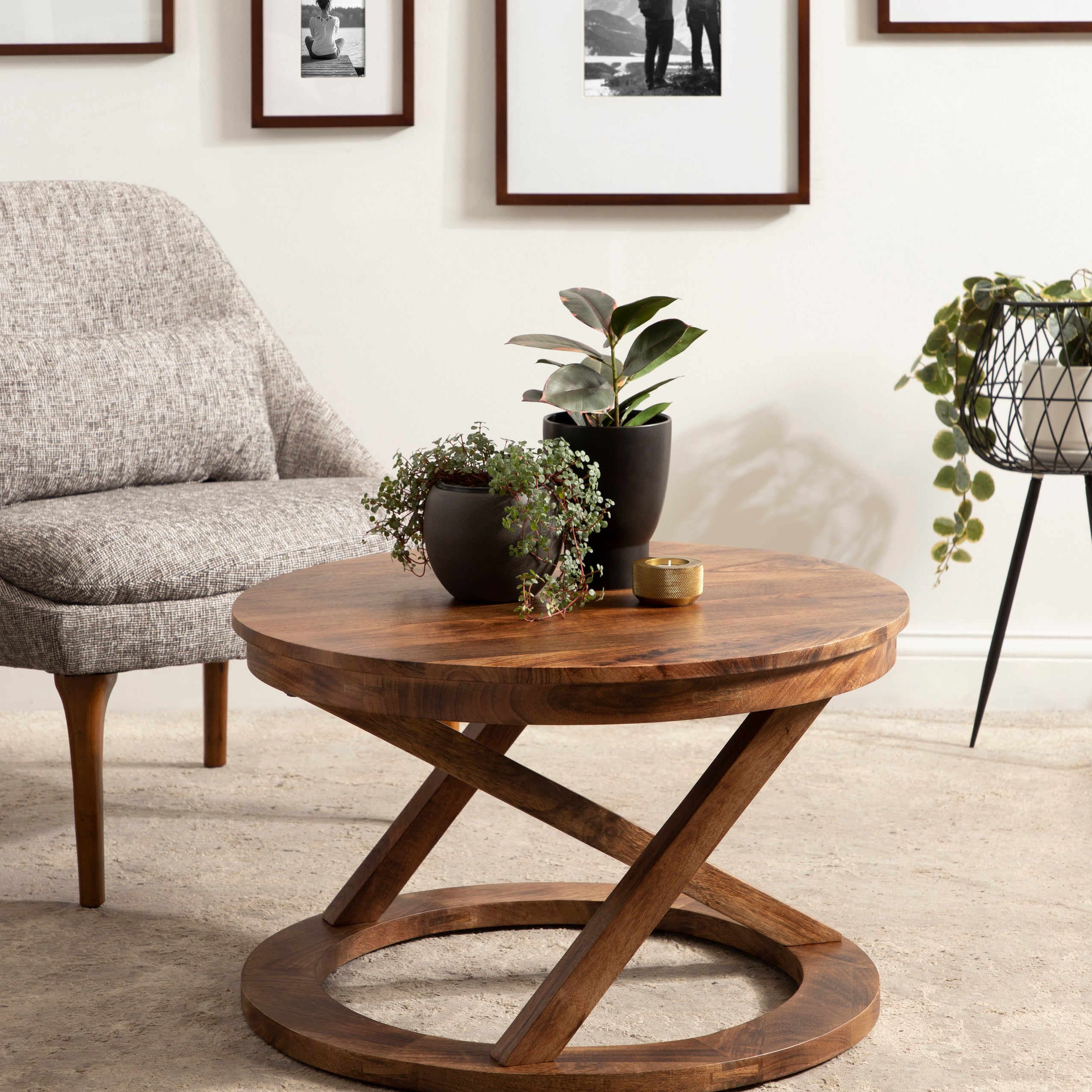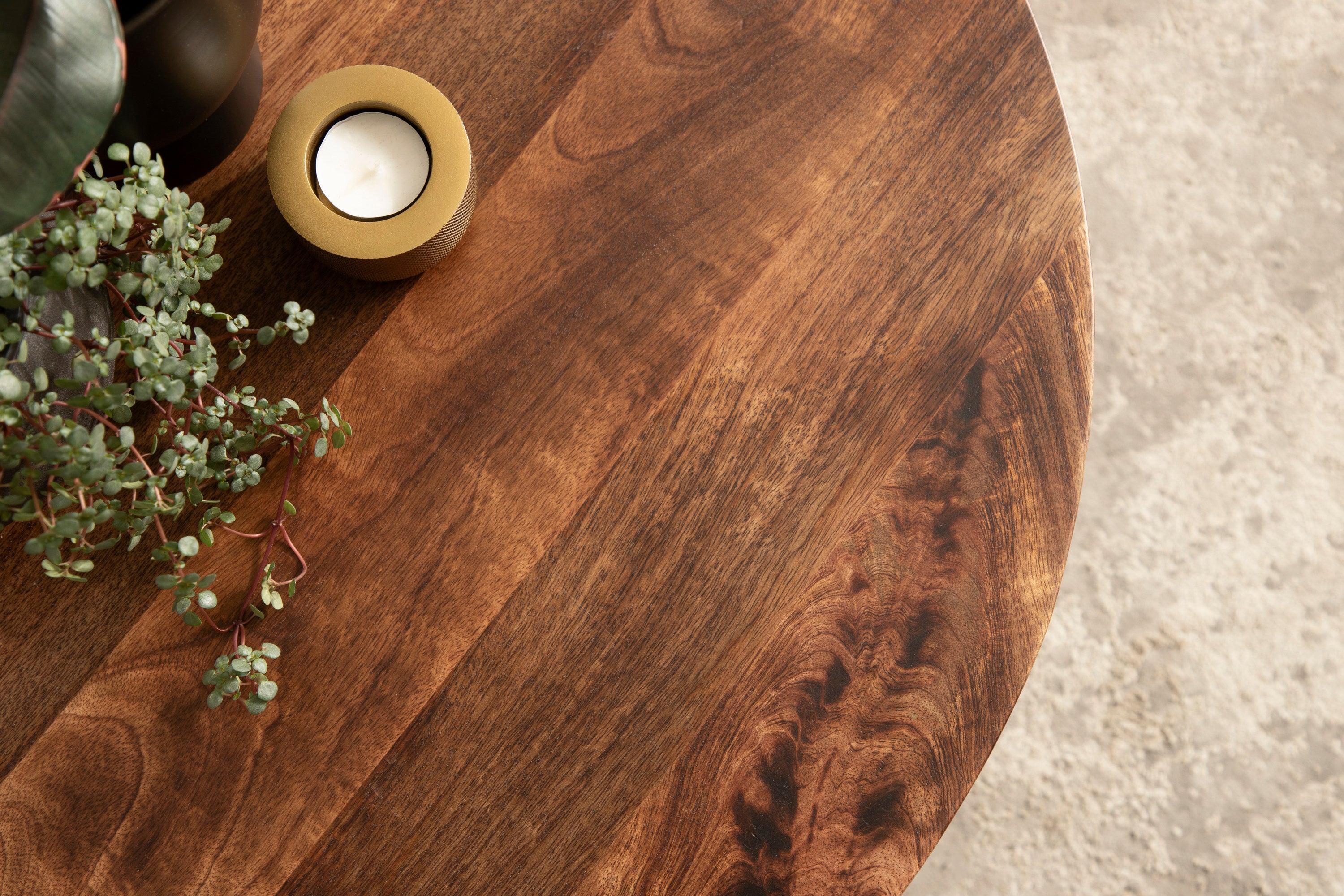 Set the tone of your space by using the modern Aja coffee table as a visual focal point! This stylish coffee table features a one-of-a-kind construction due to its handcrafted design, rich mango wood varying in woodgrain, and finishing from piece to piece. Its robust surface is perfect as the center of your get-together, allowing you to serve drinks on coasters and be the ultimate host. It's also an opportunity to showcase your style, not only in its unique design but with additional textural accent pieces on display. The Aja coffee table's combination of quality craftsmanship and multifunctionality makes it the perfect centerpiece for your living room.