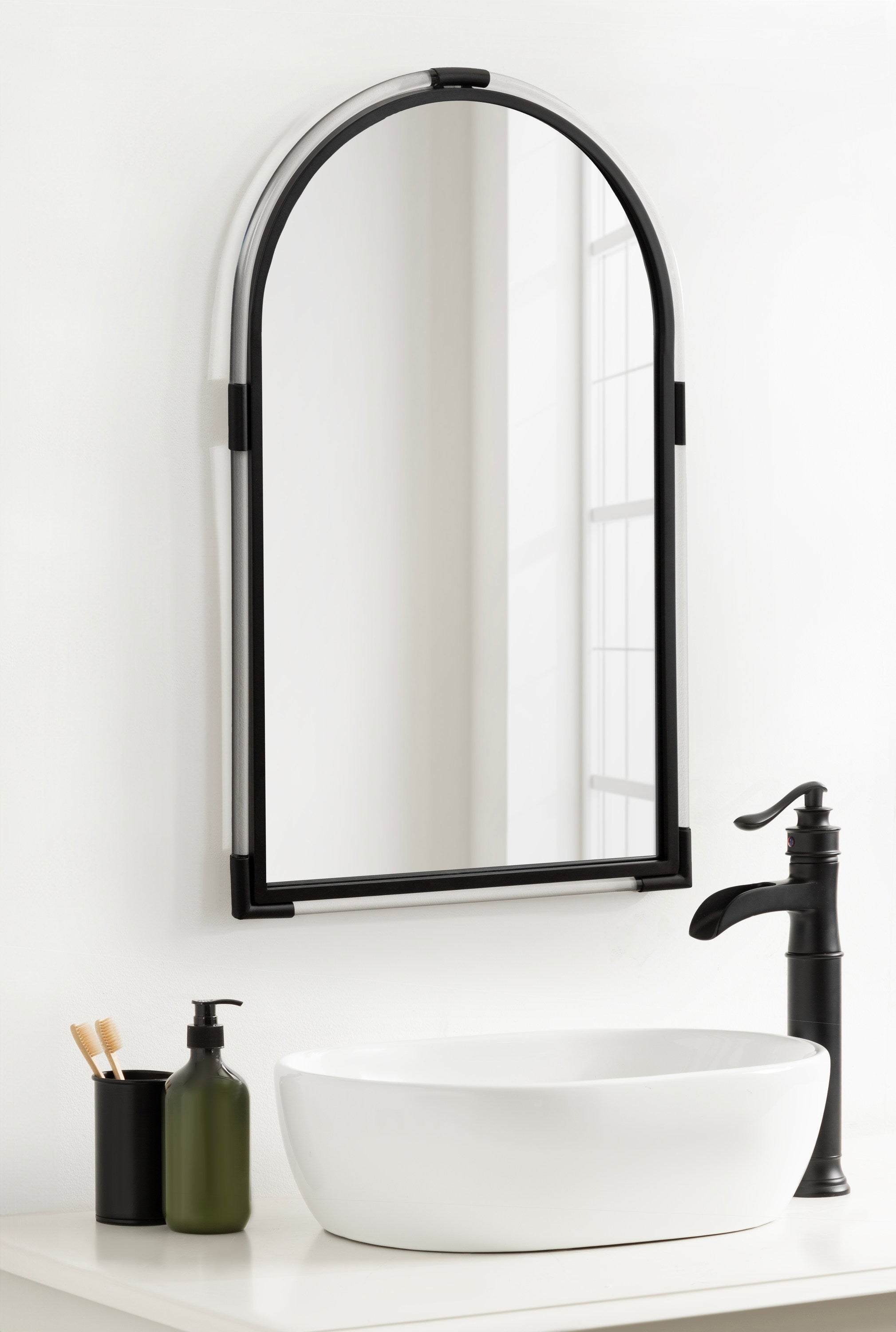 Transform your bathroom with the Kate and Laurel Arceo acrylic arch mirror. The sleek design of this arched mirror, coupled with modern acrylic construction, adds a touch of sophistication to your decor. The combination of acrylic and metal creates a stylish yet durable piece that stands out above your sink or in your bedroom. The arch design adds a unique focal point, making it more than just a functional mirror—it's a decorative statement. Whether you're upgrading an existing space or starting fresh, this bathroom mirror brings a contemporary flair to any setting. Redefine your space with this arched mirror, where form meets function above your sink.