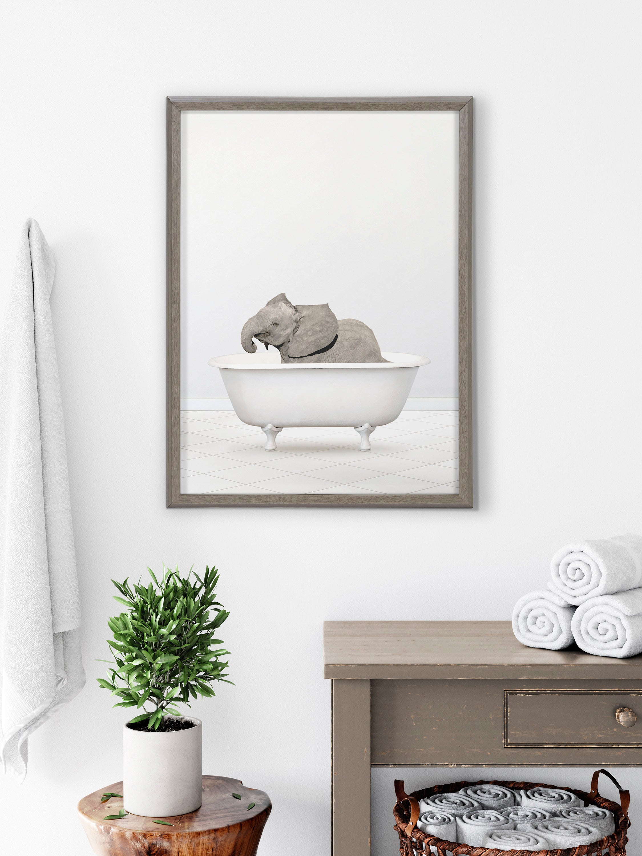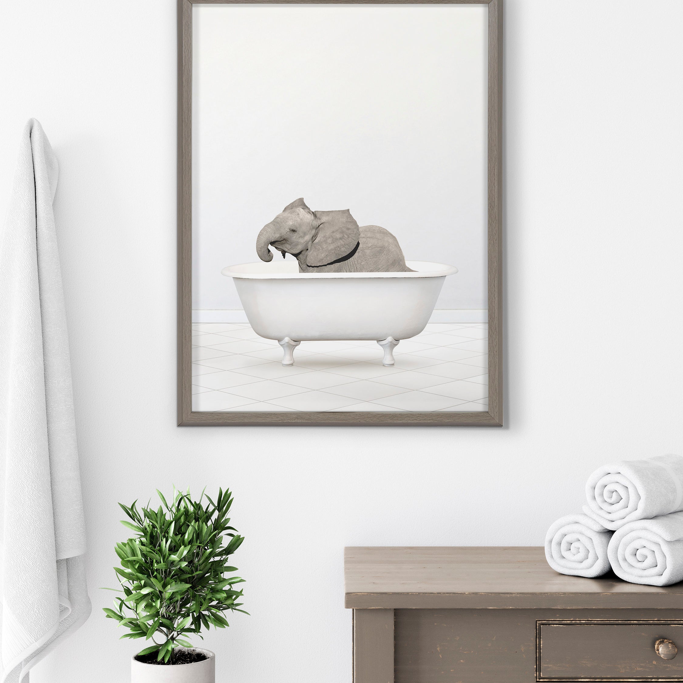Blake Baby Elephant Solo Bathtub Framed Printed Glass by Amy Peterson
