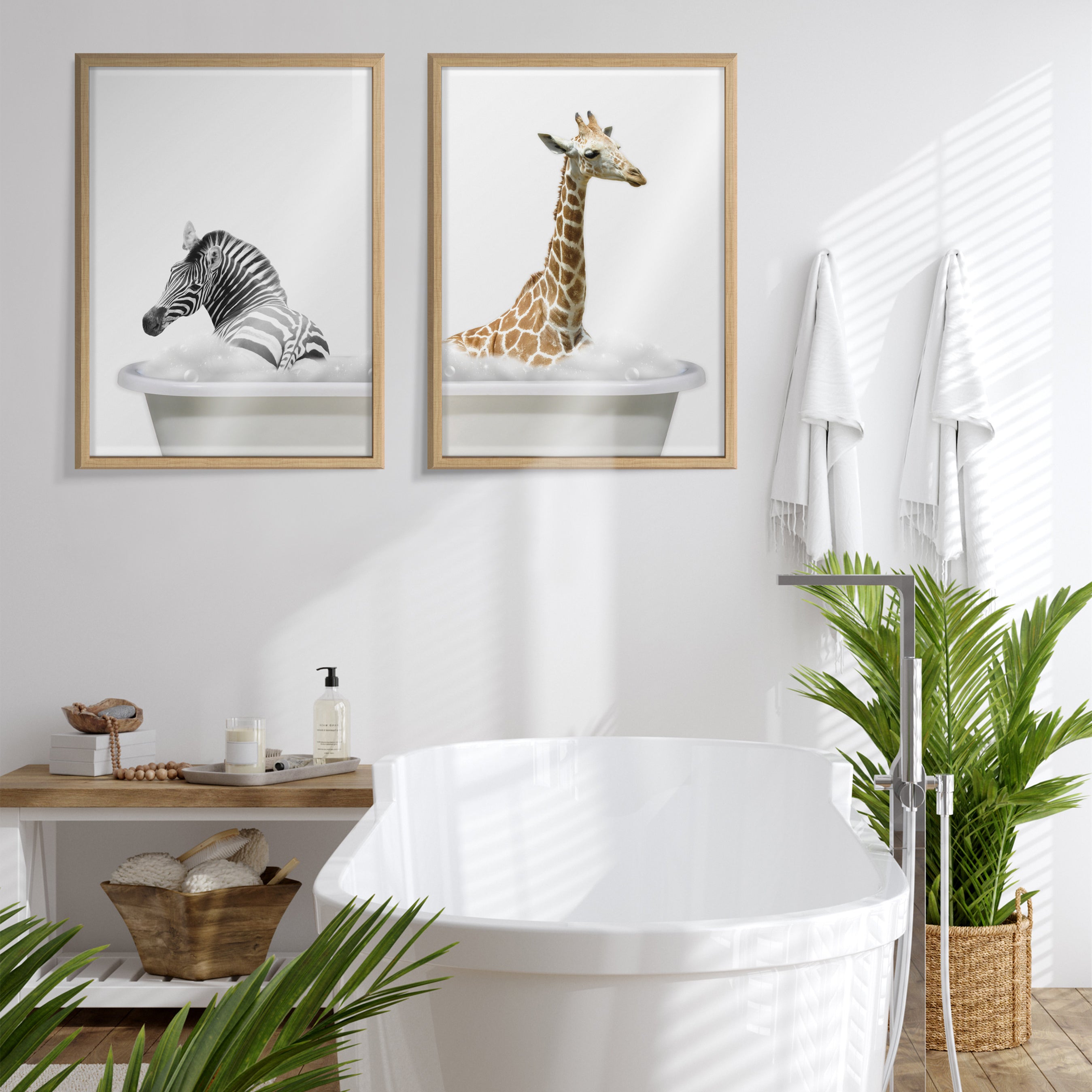 Blake Bathroom Bubble Bath Giraffe Framed Printed Glass by The Creative Bunch Studio