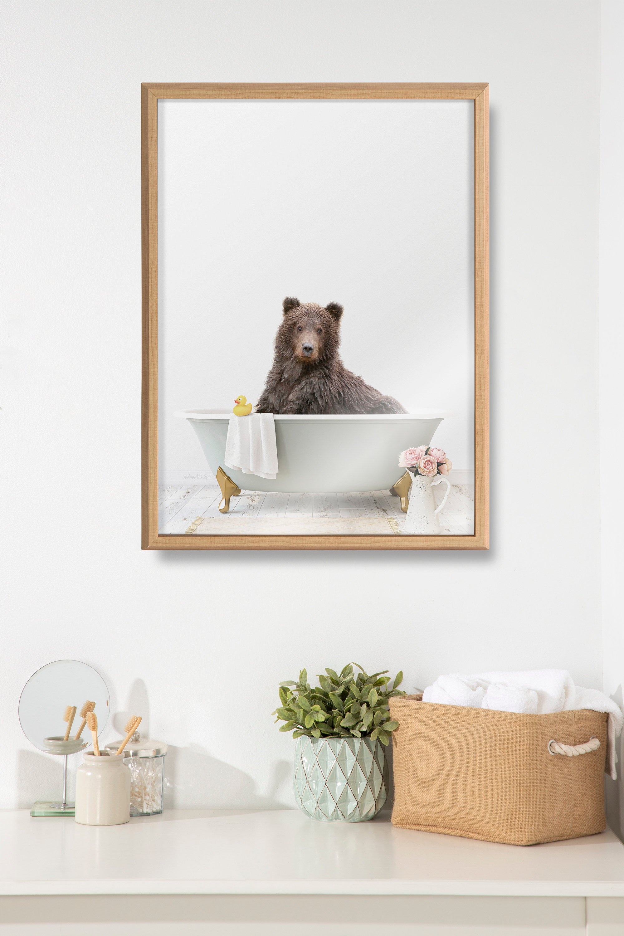 Blake Bear Cottage Bathroom Framed Printed Glass by Amy Peterson Art Studio