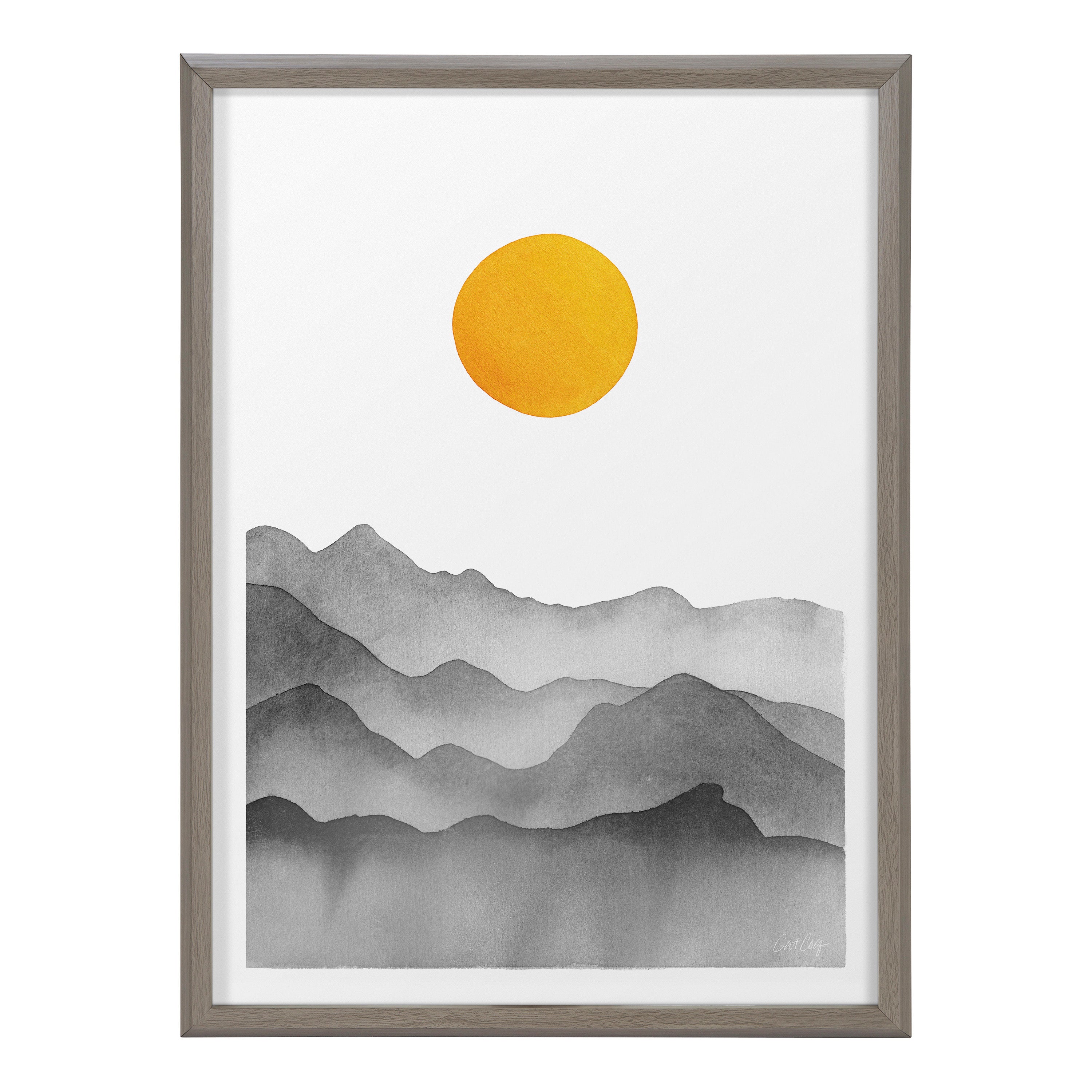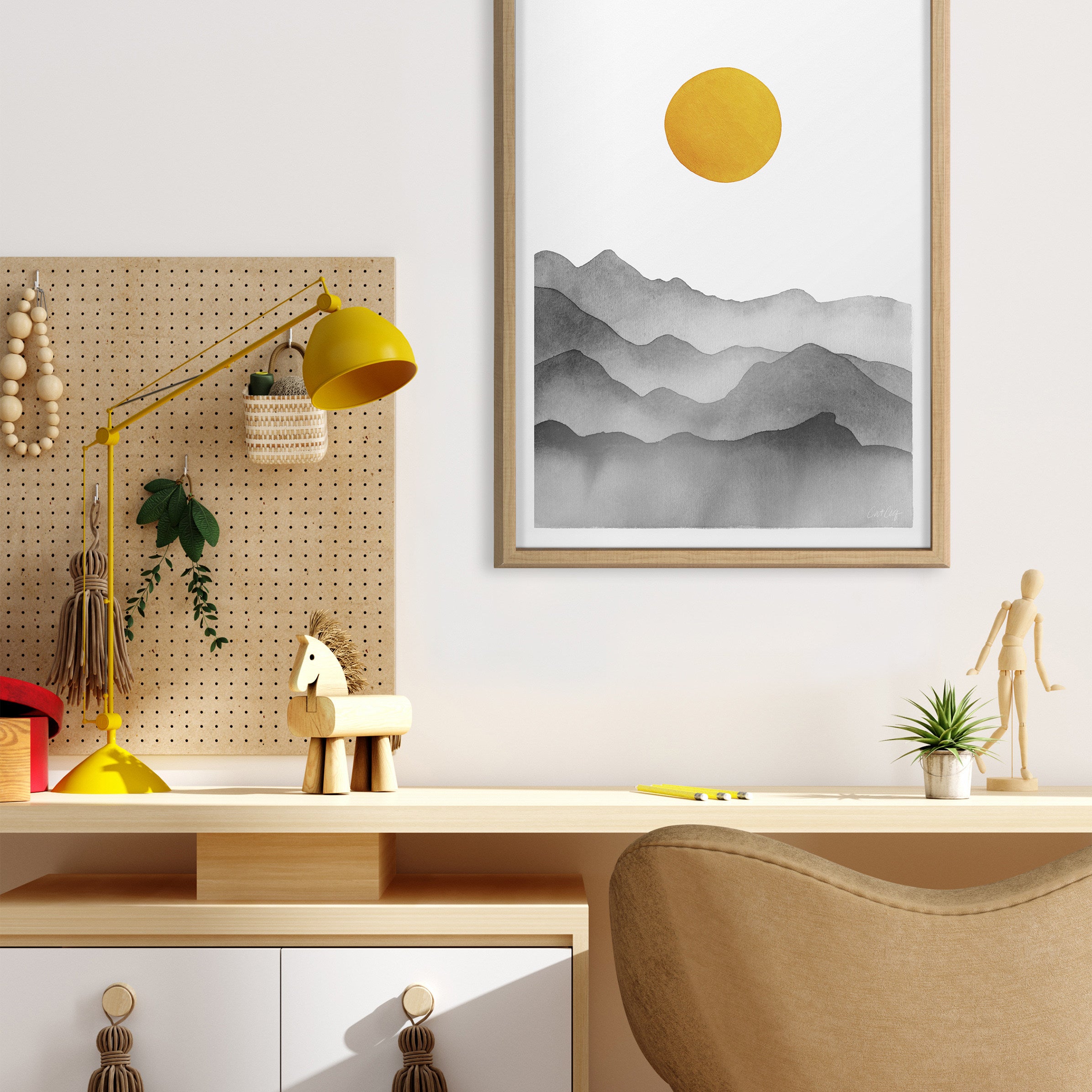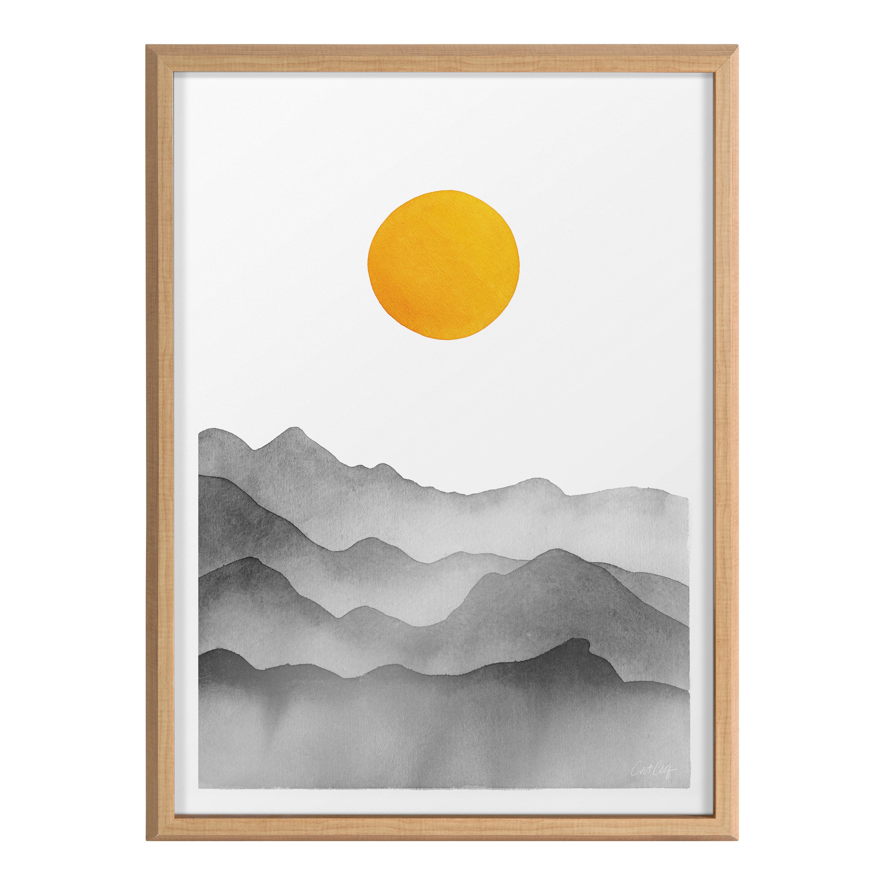 Blake Black Yellow Mountain Range Silhouette Framed Printed Glass by Cat Coquillette