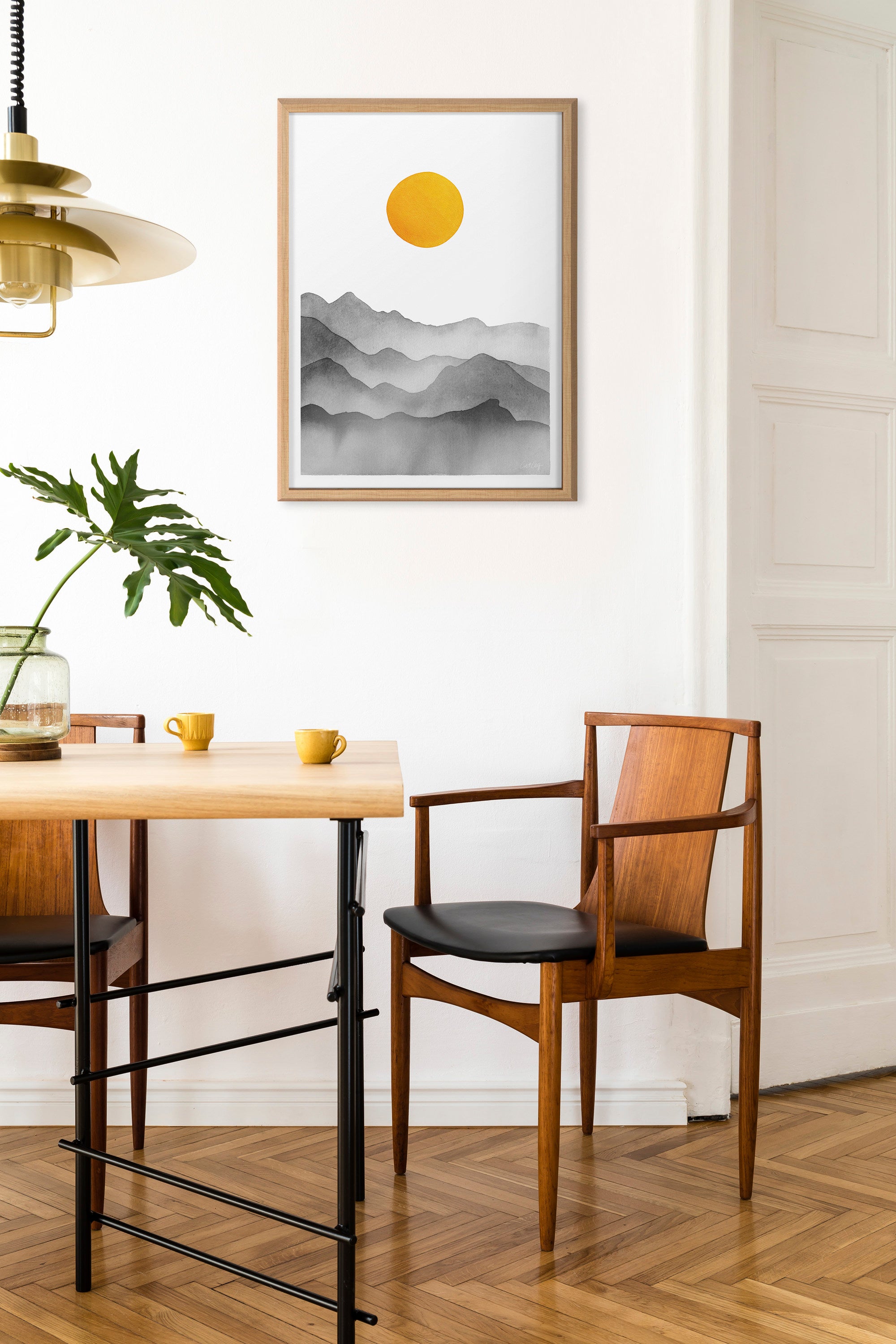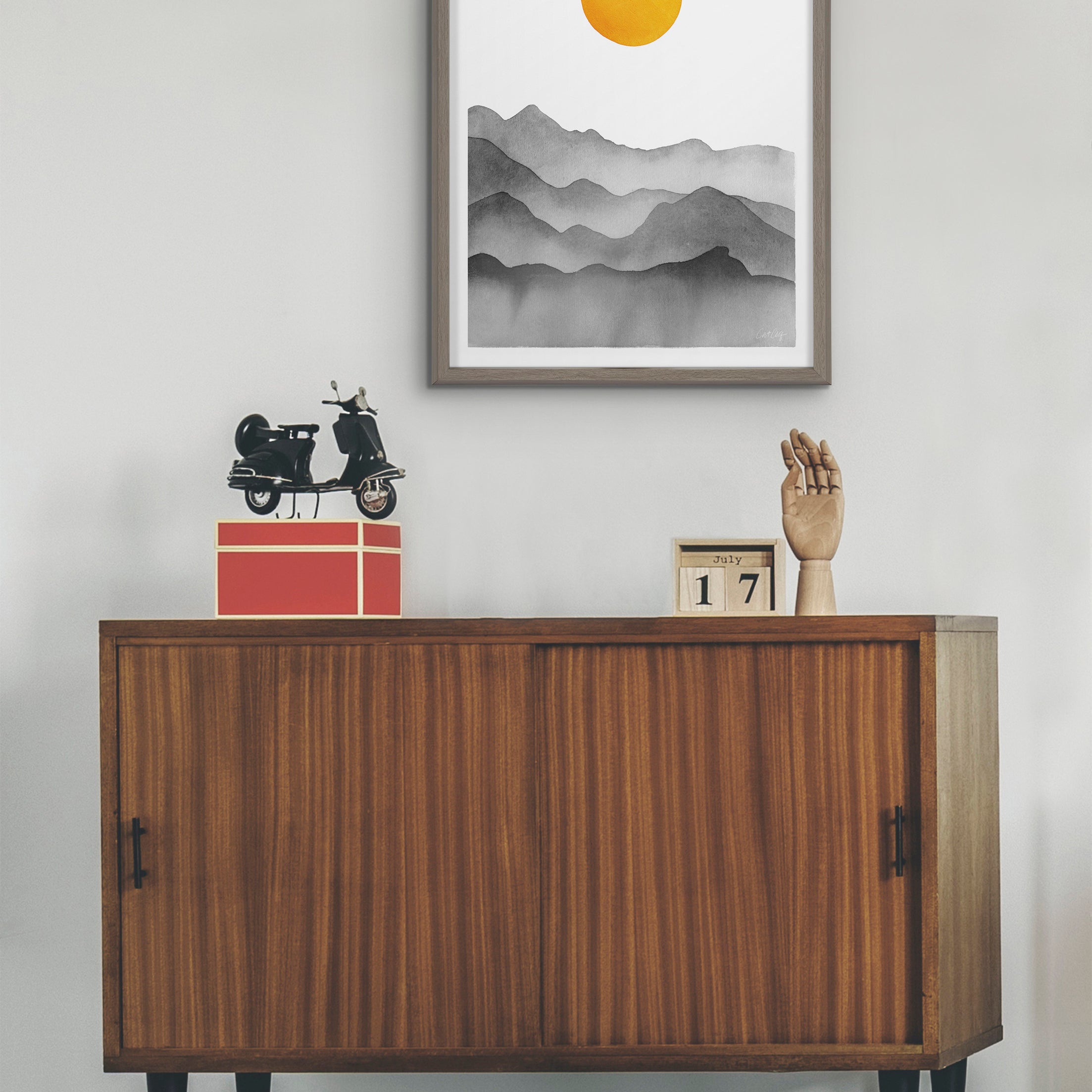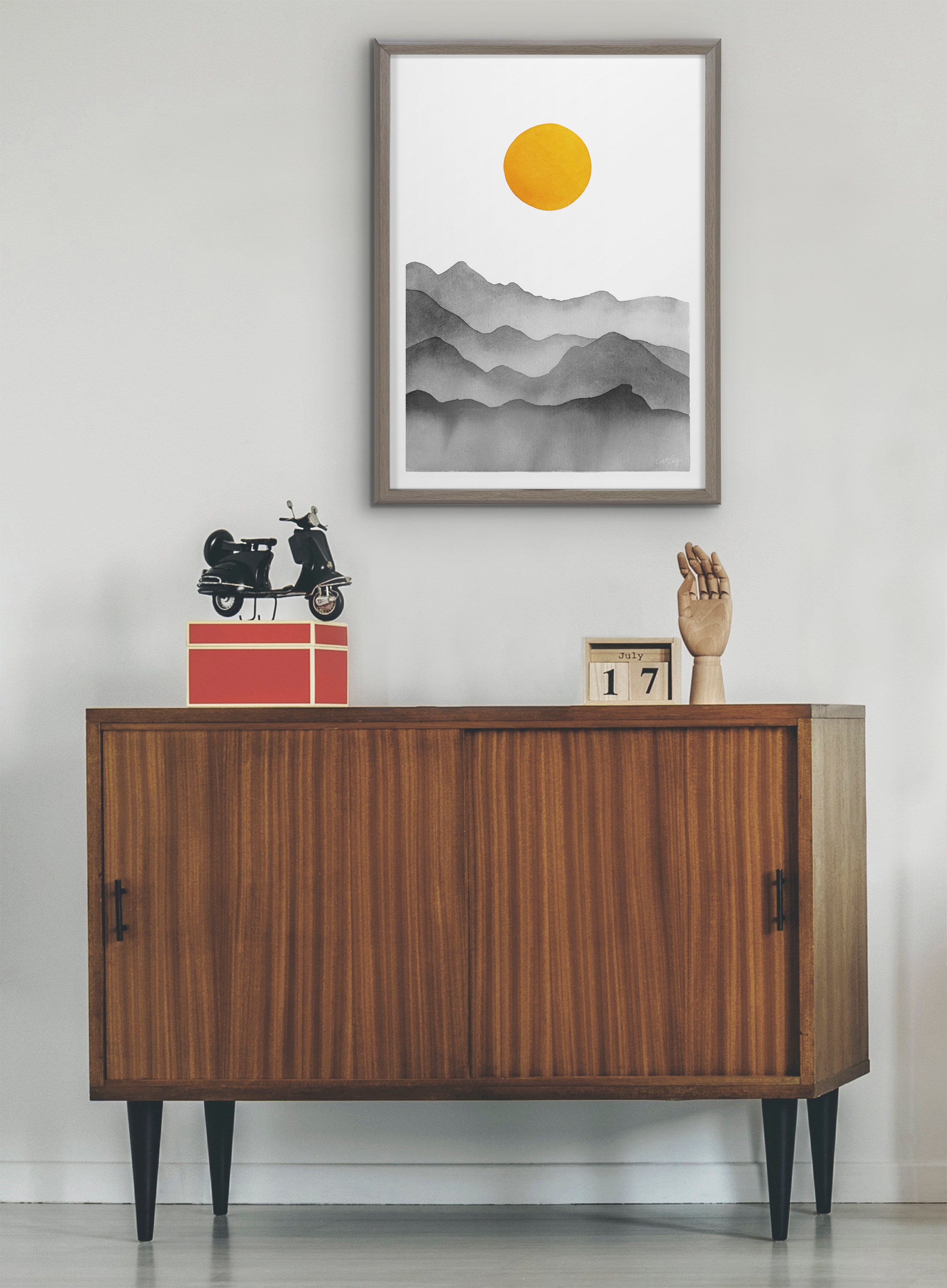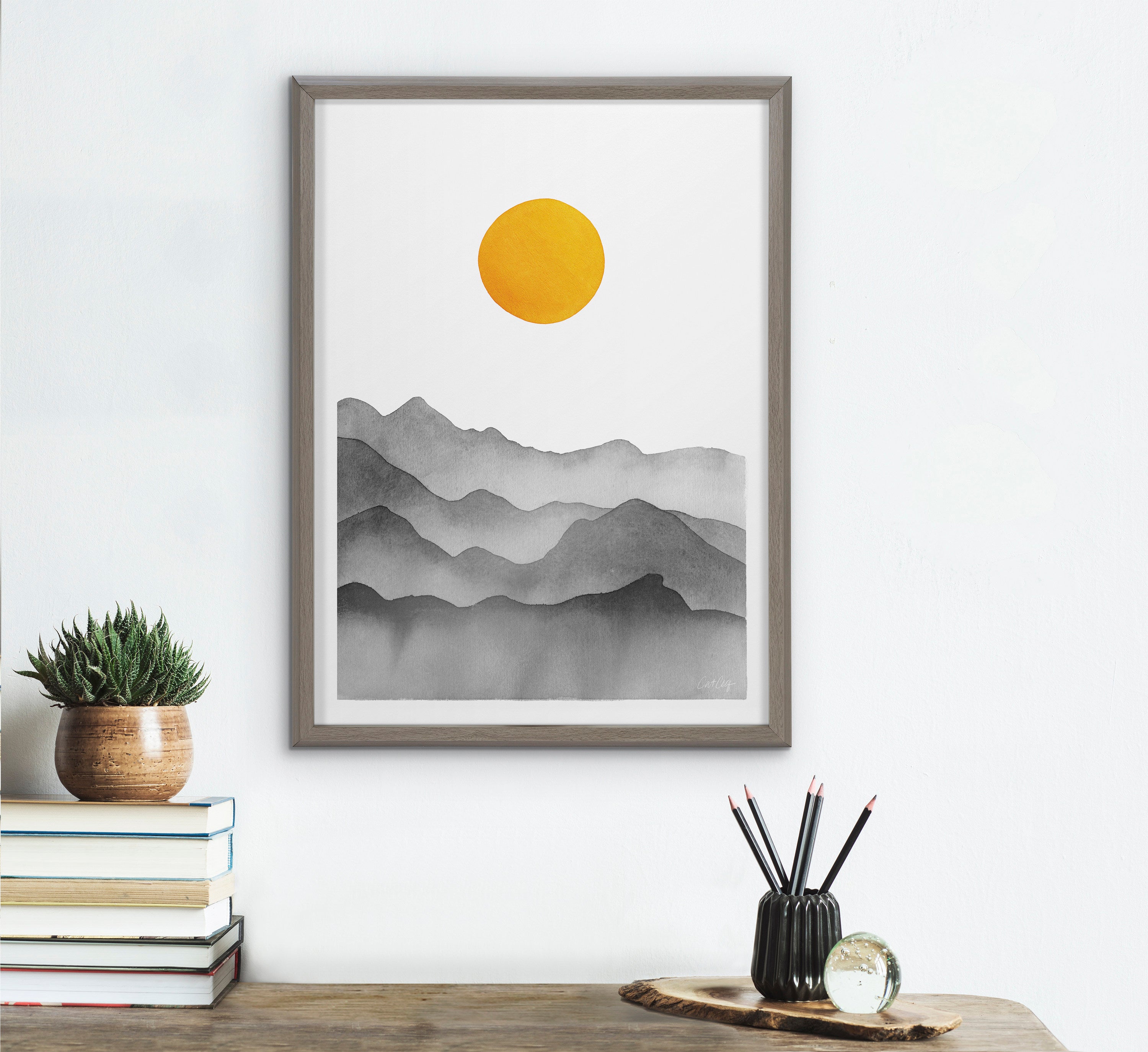Blake Black Yellow Mountain Range Silhouette Framed Printed Glass by Cat Coquillette