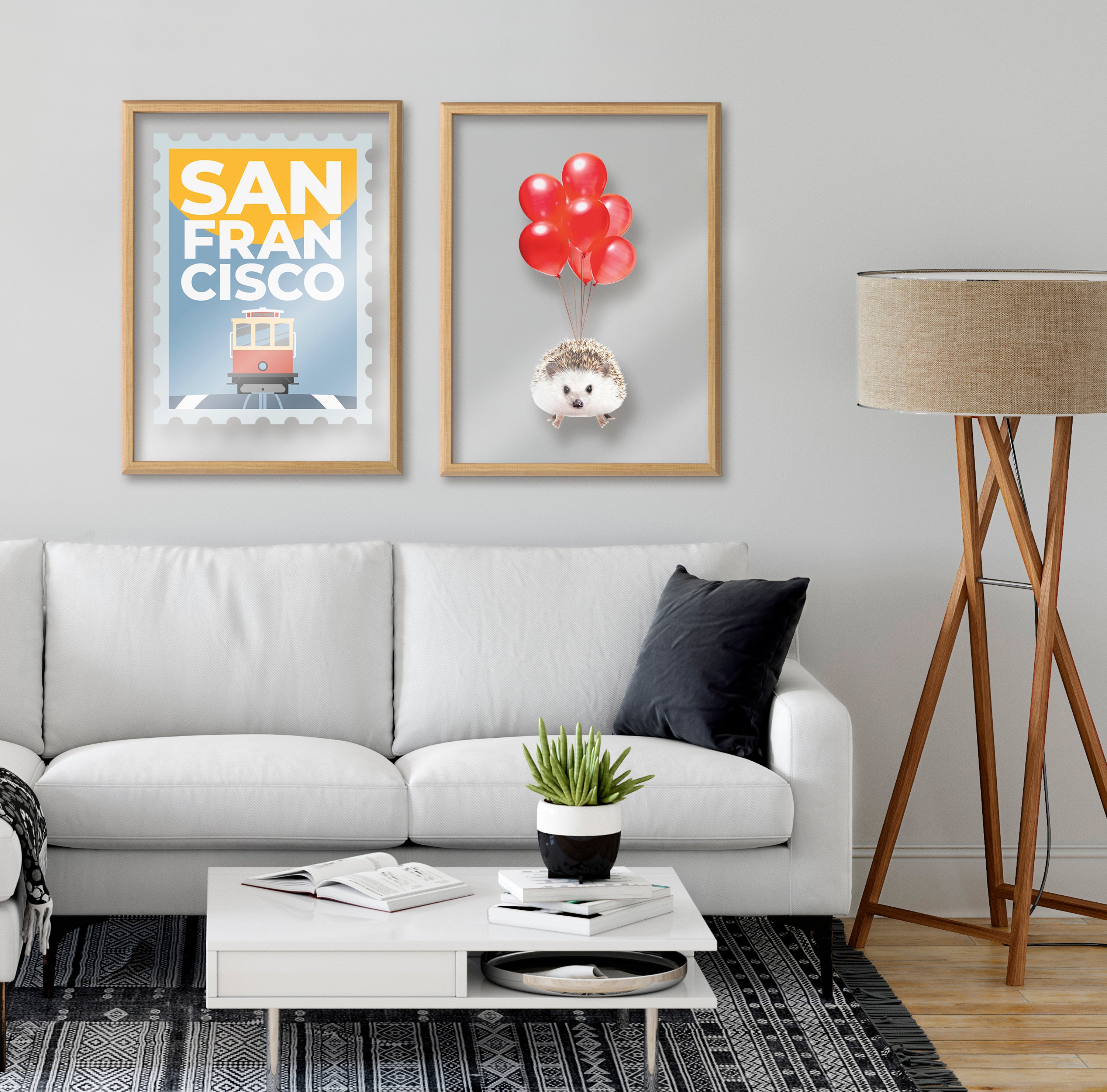 This whimsical hedgehog is planning his escape! Give him a new home by hanging this fun art print on your wall. Printed and framed in the USA in Waunakee, Wisconsin, this framed glass art will be a pleasure to look at every day in your living room, bedroom, office, or any room in the home. This art print also makes an excellent gift for birthdays, holidays, or house-warming parties. Printed on glass and framed with a lightweight polystyrene frame, this wall art has two hangers already attached to the back for easy wall display.