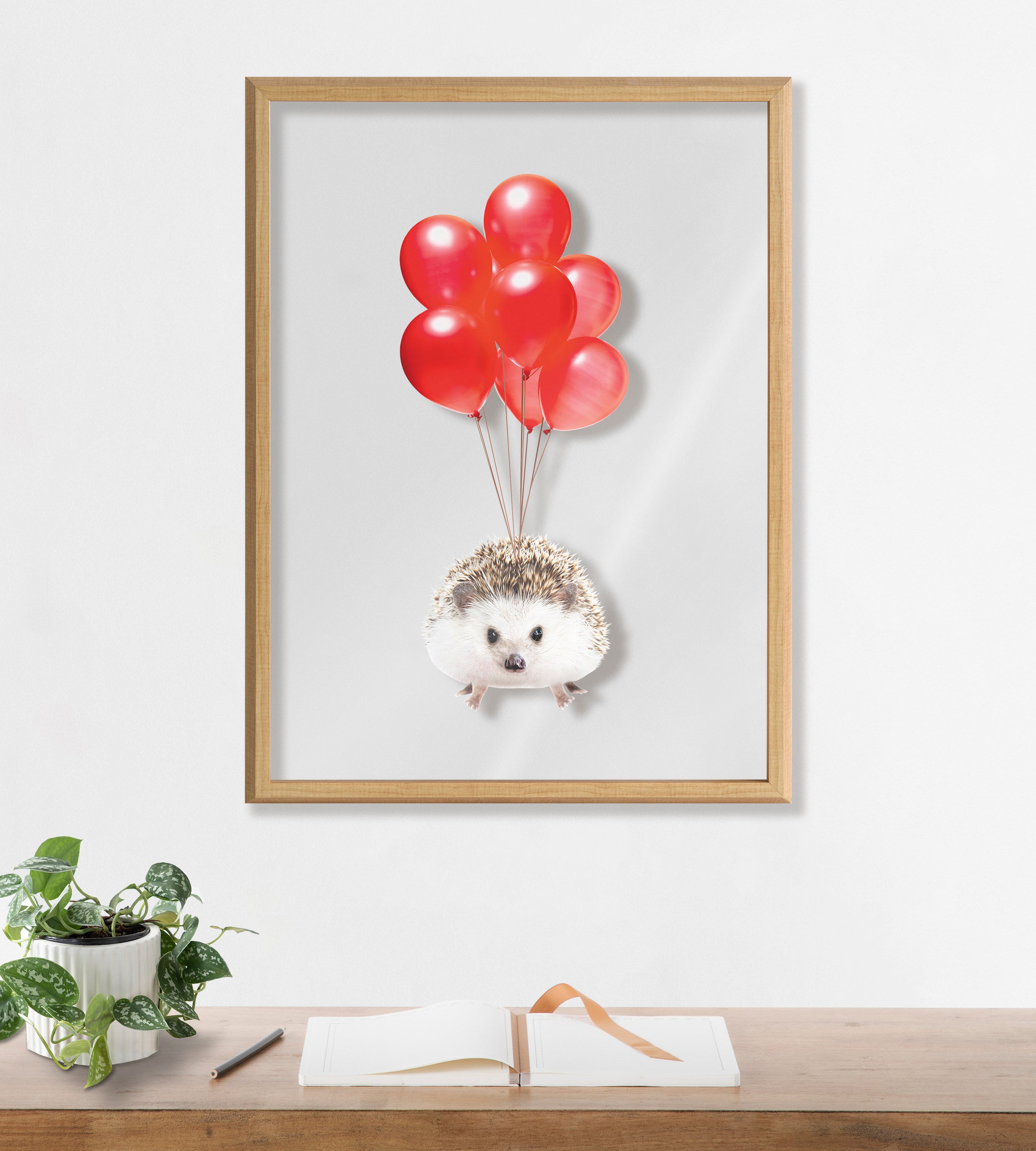 Blake Hedgehog Balloons Framed Printed Glass by Amy Peterson Art Studio