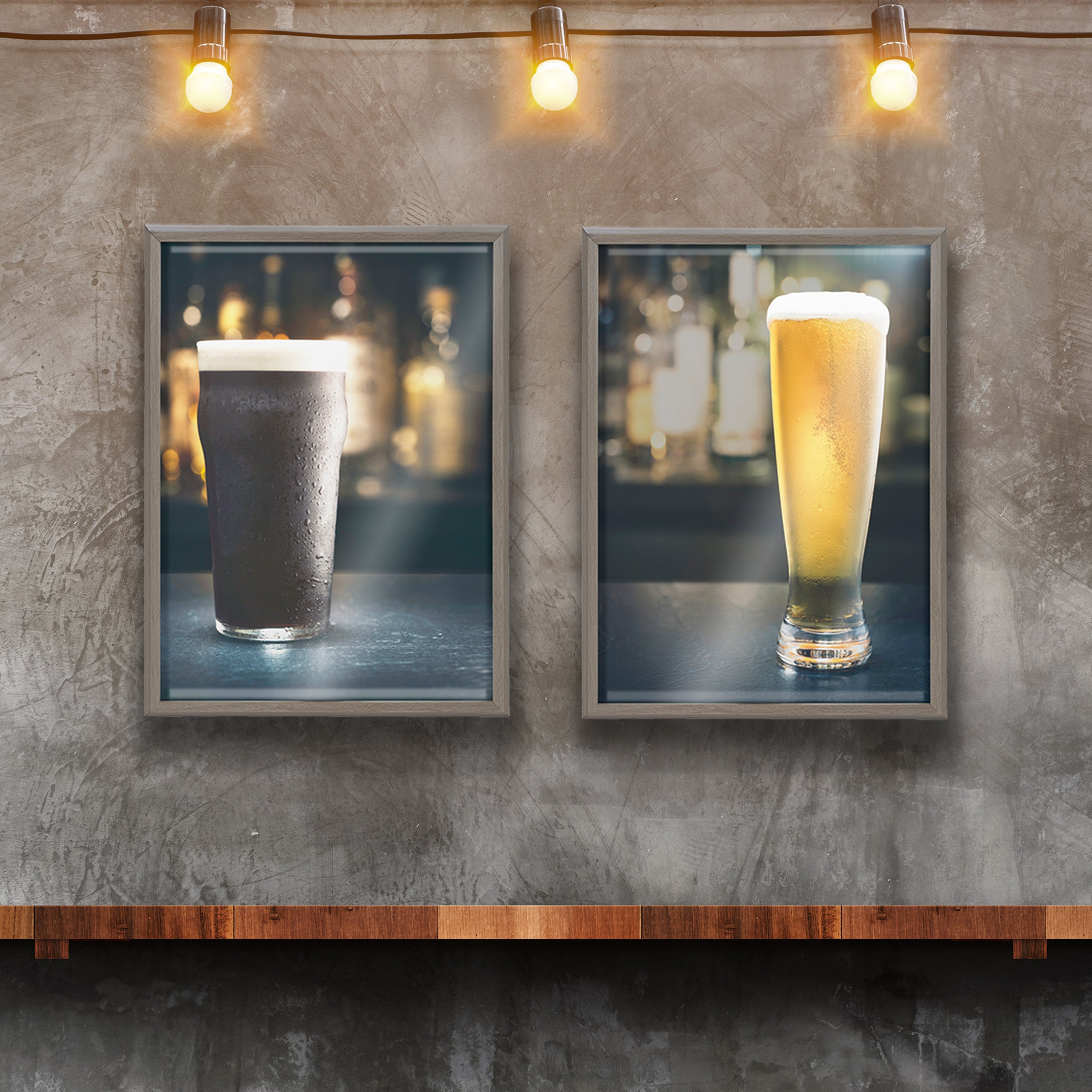 Decorate your bar area with this cool glass beer art for your wall! Printed and framed in the USA in Waunakee, Wisconsin, this framed glass art will be a pleasure to look at every day in your living room, bedroom, office, or any room in the home. This art print also makes an excellent gift for birthdays, holidays, or house-warming parties. Printed on glass and framed with a lightweight polystyrene frame, this wall art has two hangers already attached to the back for easy wall display.