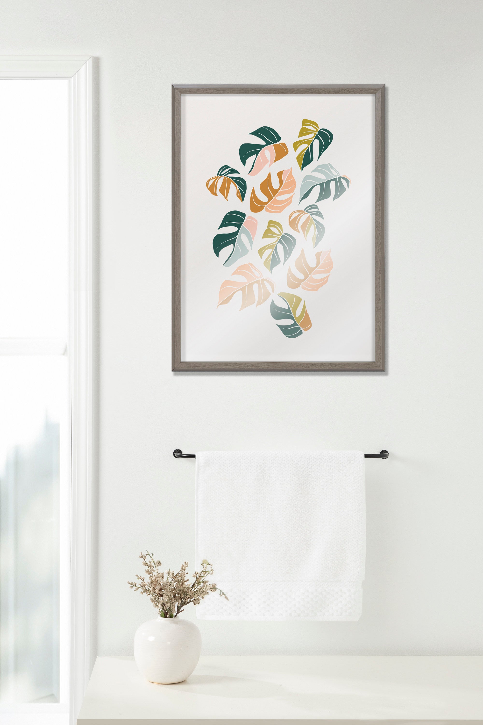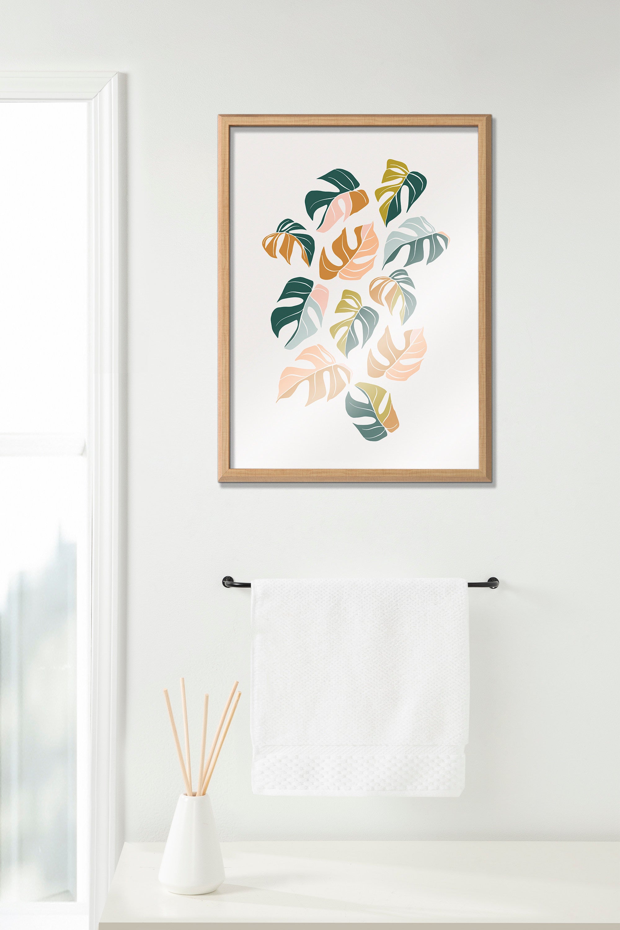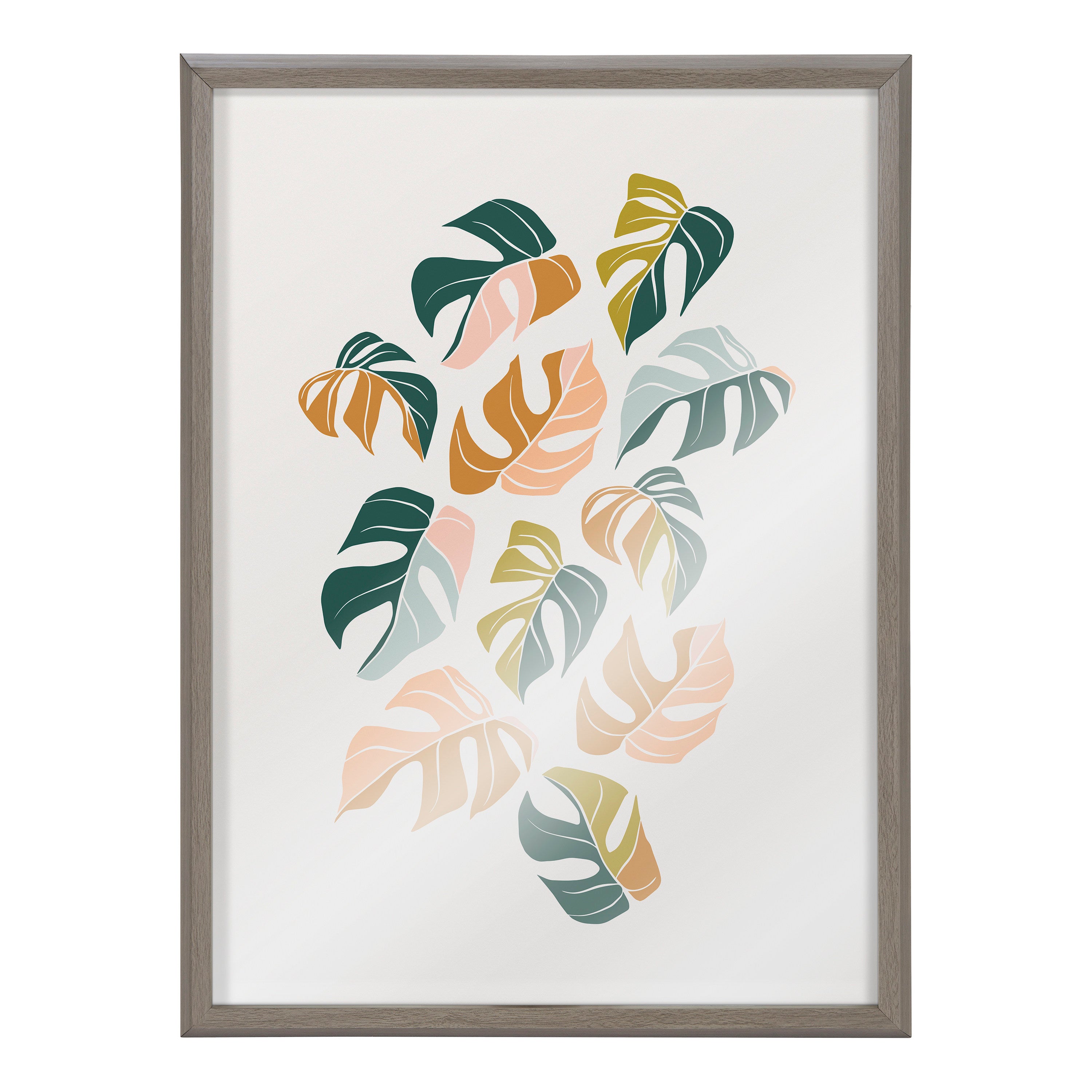 Create the colorful and tropical home of your dreams with this abstract monster print. Printed and framed in the USA in Waunakee, Wisconsin, this framed glass art will be a pleasure to look at every day in your living room, bedroom, office, or any room in the home. This art print also makes an excellent gift for birthdays, holidays, or house-warming parties. Printed on glass and framed with a lightweight polystyrene frame, this wall art has two hangers already attached to the back for easy wall display.