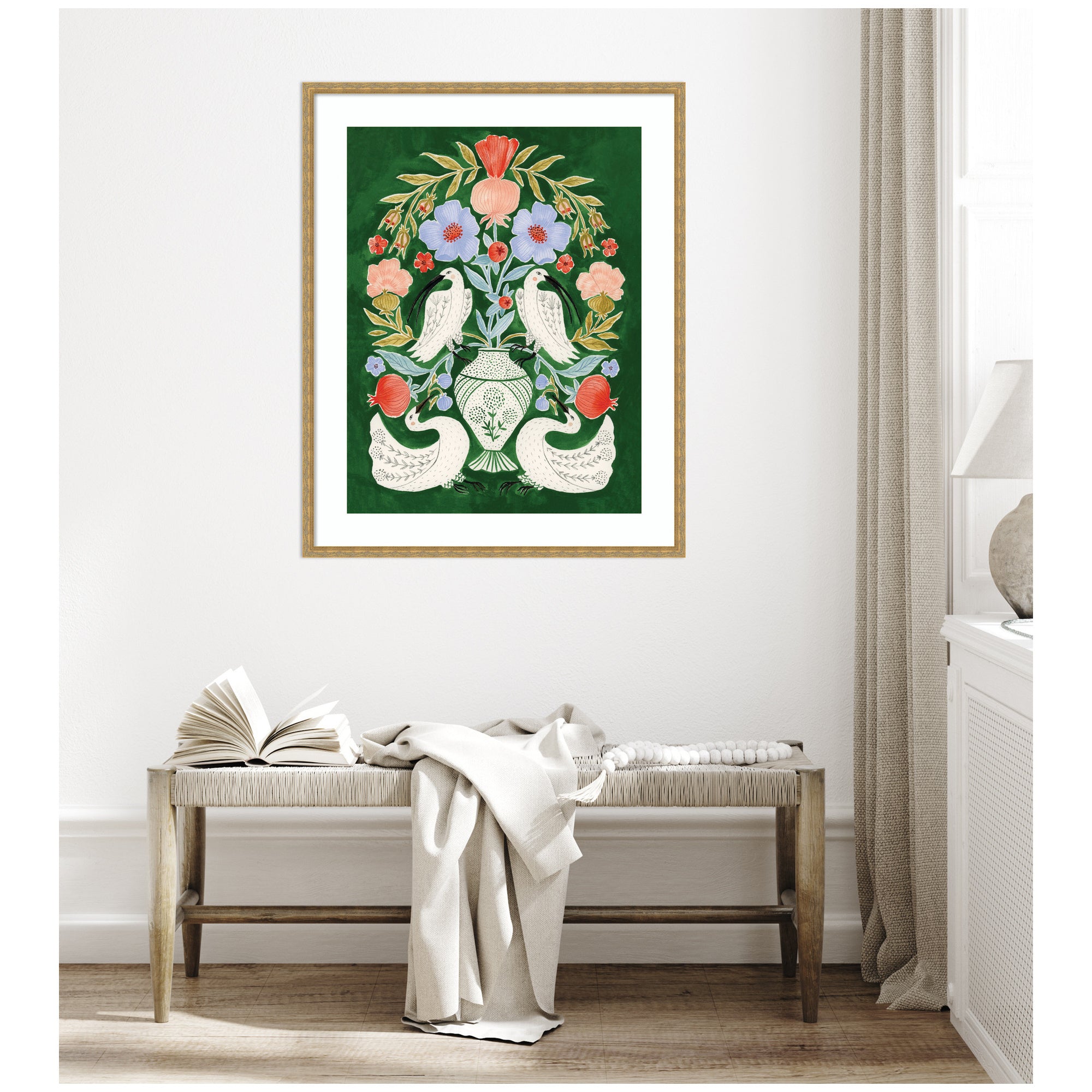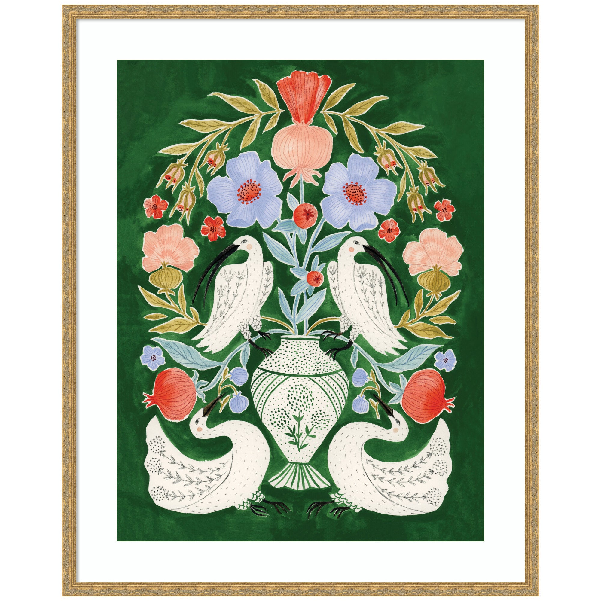 Floral Folklore Ibises and Swan by Jill Labieniec Framed Wall Art Print