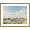 - Authentic Artist Collaboration: 'Marshland' is an officially licensed work by independent artist Crystal Lynn Collins, thoughtfully presented in our Woodgrain Stripe Mocha molding. The finished piece measures 26 x 22, offering a sophisticated statement for your space. Visual Story: The image showcases a serene landscape with a vast sky filled with scattered clouds. Below, a waterway meanders through tall, golden reeds. The scene exudes tranquility and openness, capturing a peaceful natural setting. Crystal Lynn Collins's Artist Profile: California farm girl turned photographer whose serene coastal and nature imag