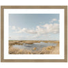 Elevate your space through thoughtfully curated style with this stunning piece designed by independent artist Crystal Lynn Collins and beautifully framed by hand in Madison, WI. The image is giclee printed using fade-resistant inks, ensuring every detail comes to life in rich, lasting color. Set in designer moulding, its a Rustic Farmhouse accent crafted to make a statement. Visual Story: The image showcases a serene landscape with a vast sky filled with scattered clouds. Below, a waterway meanders through tall, golden reeds. The scene exudes tranquility and openness, capturing a peaceful natural setting.