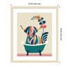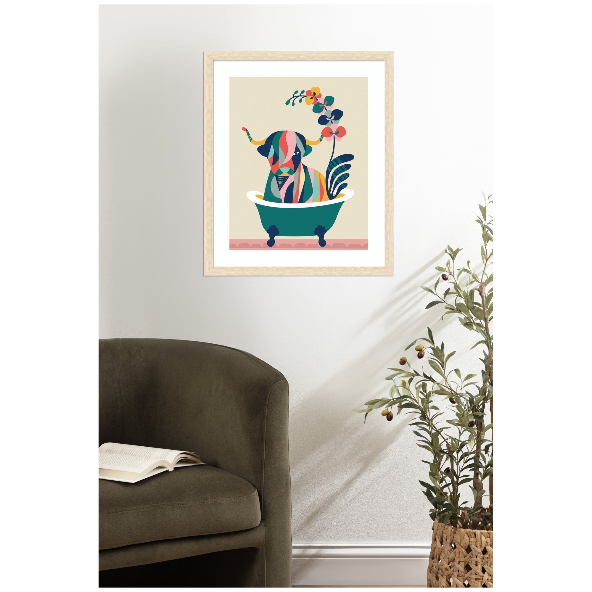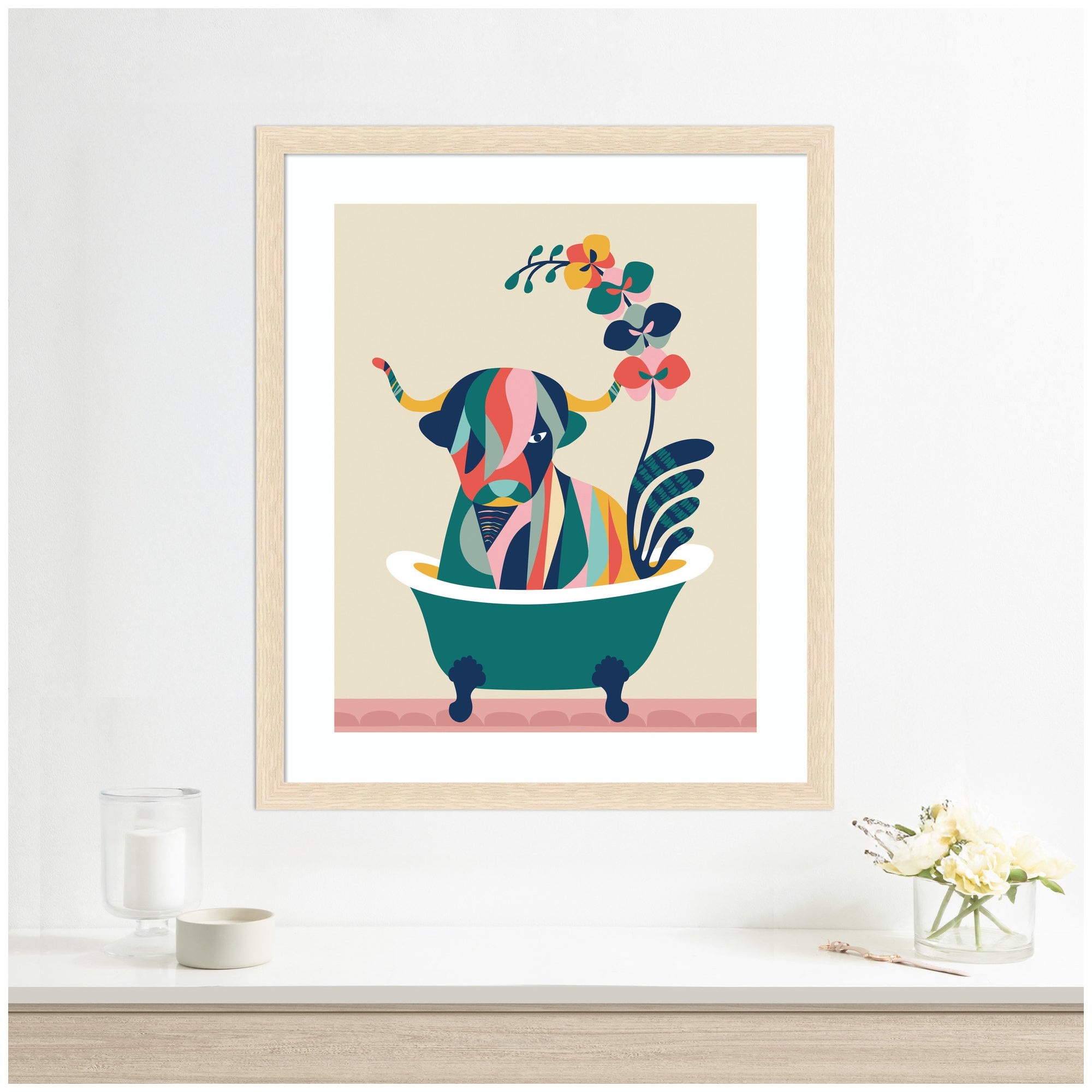 Framed Art Mid Century Modern Cow in Bathtub by Rachel Lee