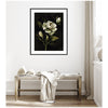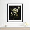 Elevate your space through thoughtfully curated style with this stunning piece designed by independent artist Annie Quigley and beautifully framed by hand in Madison, WI. The image is giclee printed using fade-resistant inks, ensuring every detail comes to life in rich, lasting color. Set in designer moulding, its a Modern Contemporary accent crafted to make a statement. Visual Story: The image depicts a delicate flower with light, textured petals against a dark background. The contrasting colors emphasize the elegance and intricate details of the botanical subject. Leaves in various shades of green surround the bloom, adding depth to the artwork.