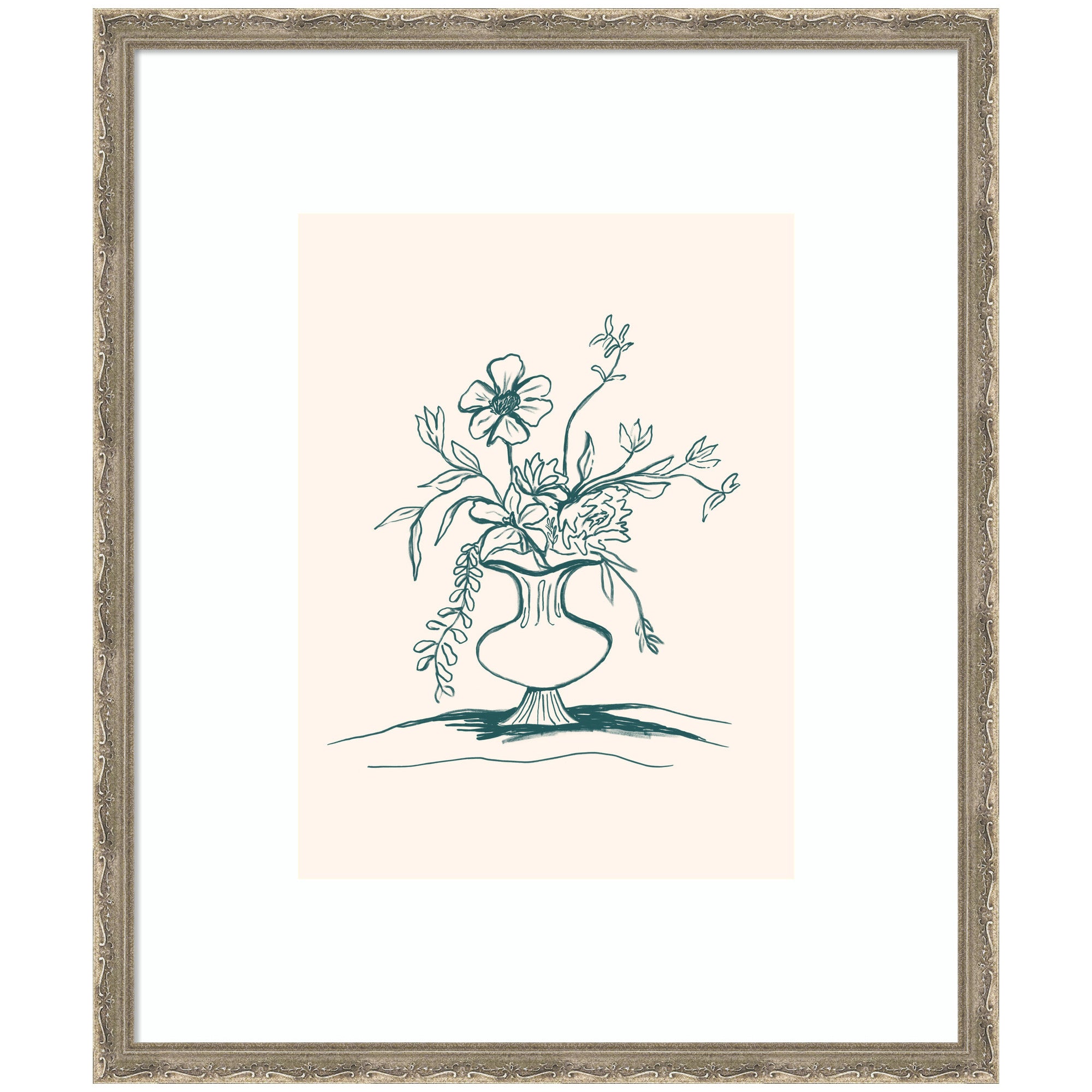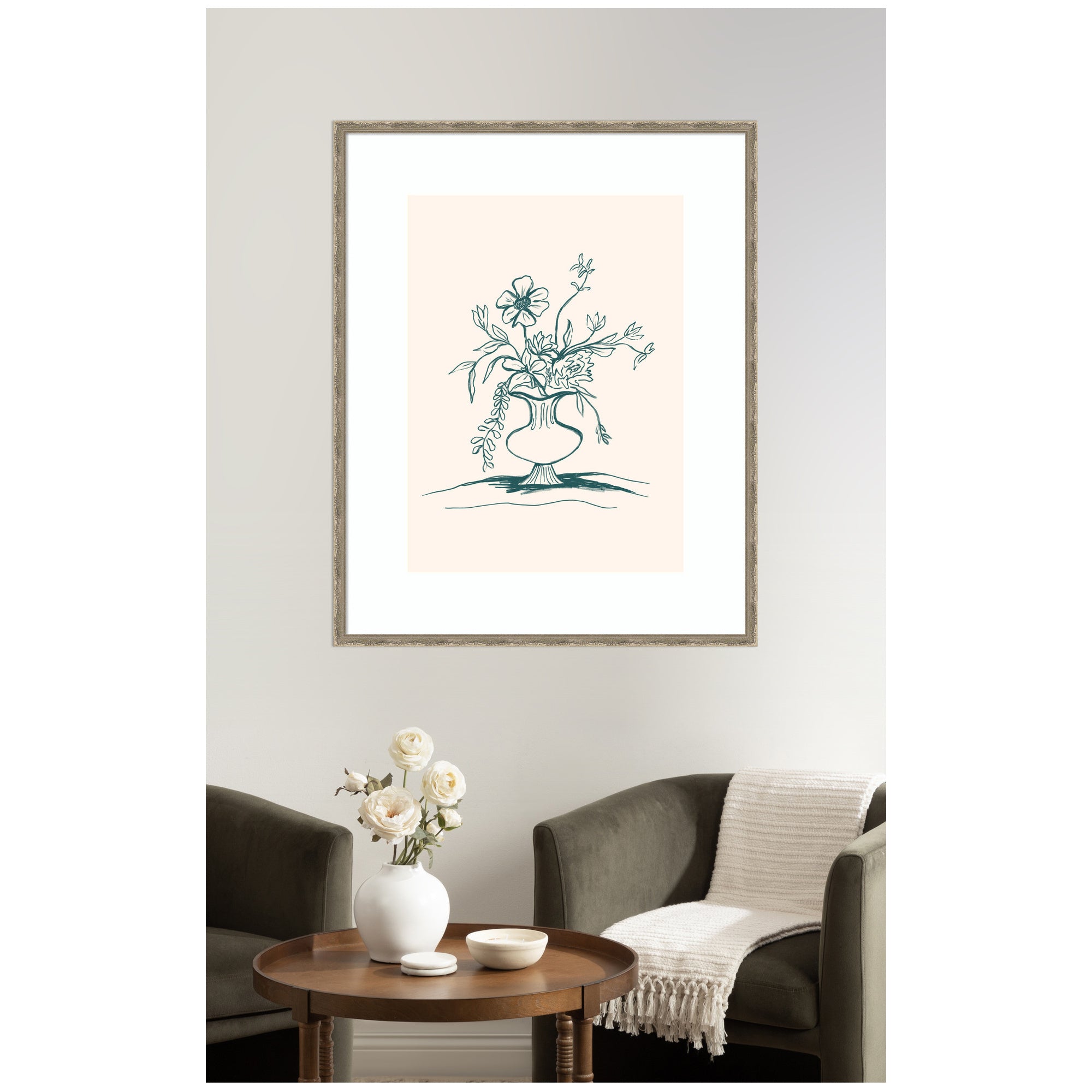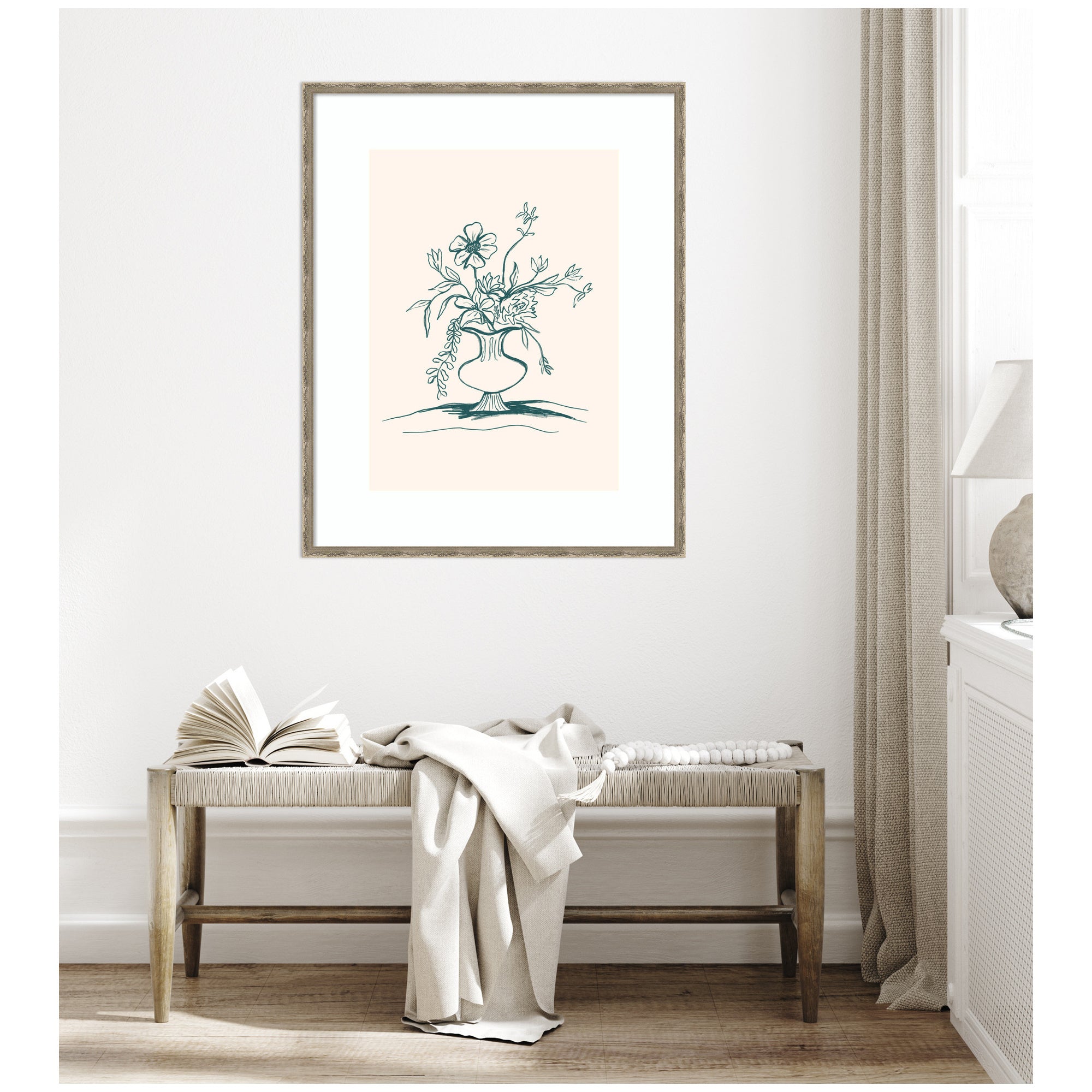 Elevate your space through thoughtfully curated style with this stunning piece designed by independent artist Kate Aurelia Holloway and beautifully framed by hand in Madison, WI. The image is giclee printed using fade-resistant inks, ensuring every detail comes to life in rich, lasting color. Set in designer moulding, its a Modern Contemporary accent crafted to make a statement. Visual Story: This minimalist artwork features a detailed illustration of a vase filled with various flowers. The botanical linework gives it an elegant and simple aesthetic. It is rendered in a monochromatic style, highlighting the natural beauty of the floral arrangement.