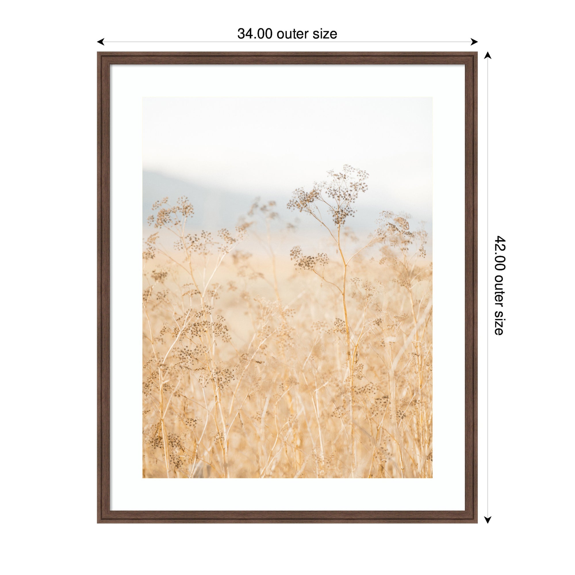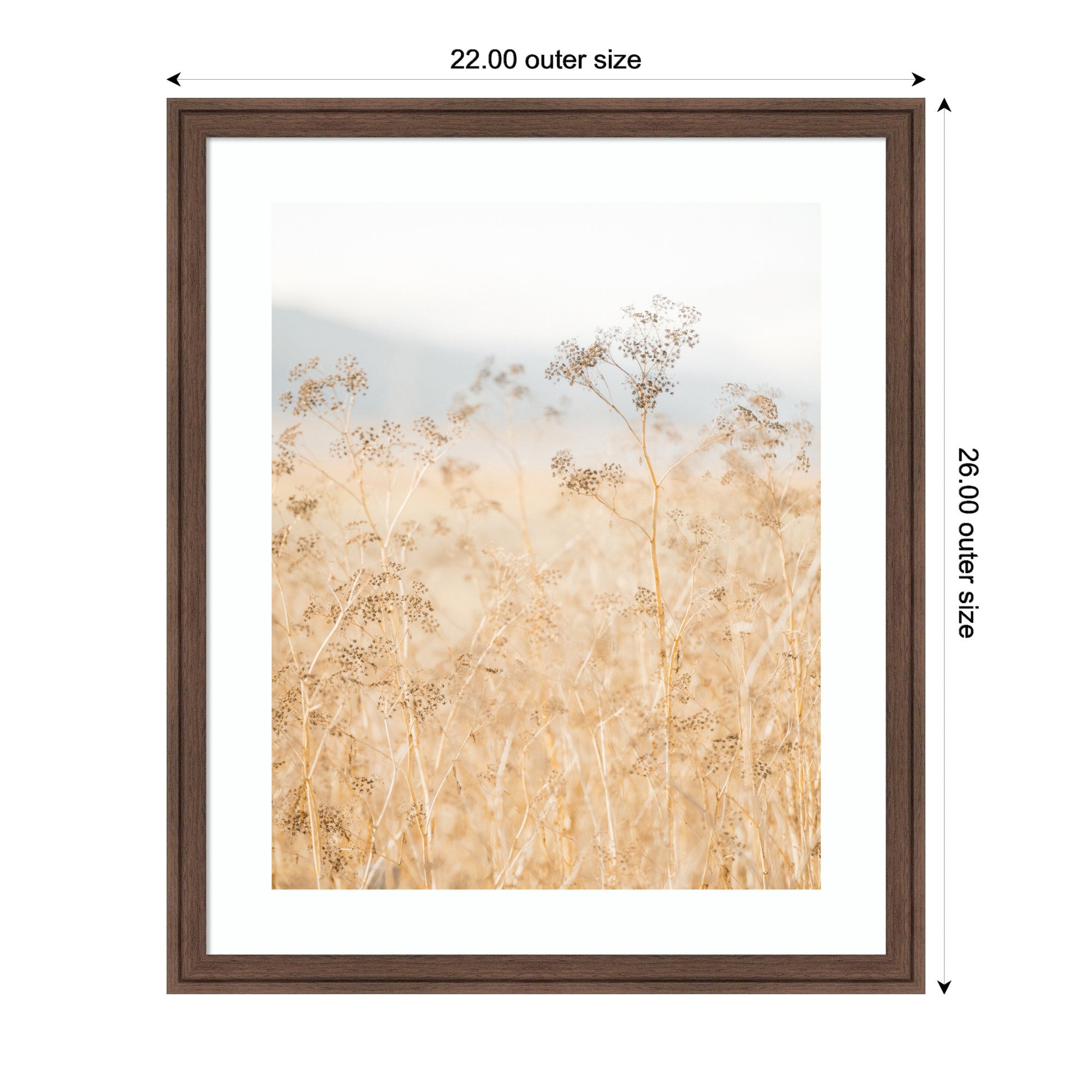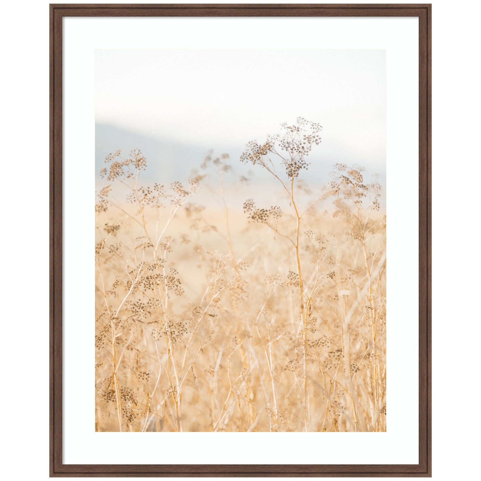 - Authentic Artist Collaboration: 'Wild Fennel' is an officially licensed work by independent artist Crystal Lynn Collins, thoughtfully presented in our Florence Medium Brown molding. The finished piece measures 22 x 26, offering a sophisticated statement for your space. Visual Story: The image captures a serene field of golden grasses swaying gently in the breeze. The delicate stalks and muted tones create a calming, ethereal atmosphere. The soft focus and natural light enhance the minimalistic beauty of the scene. Crystal Lynn Collins's Artist Profile: California farm girl turned photographer whose serene coastal and nature imagery invites viewers to "get quiet and observe."