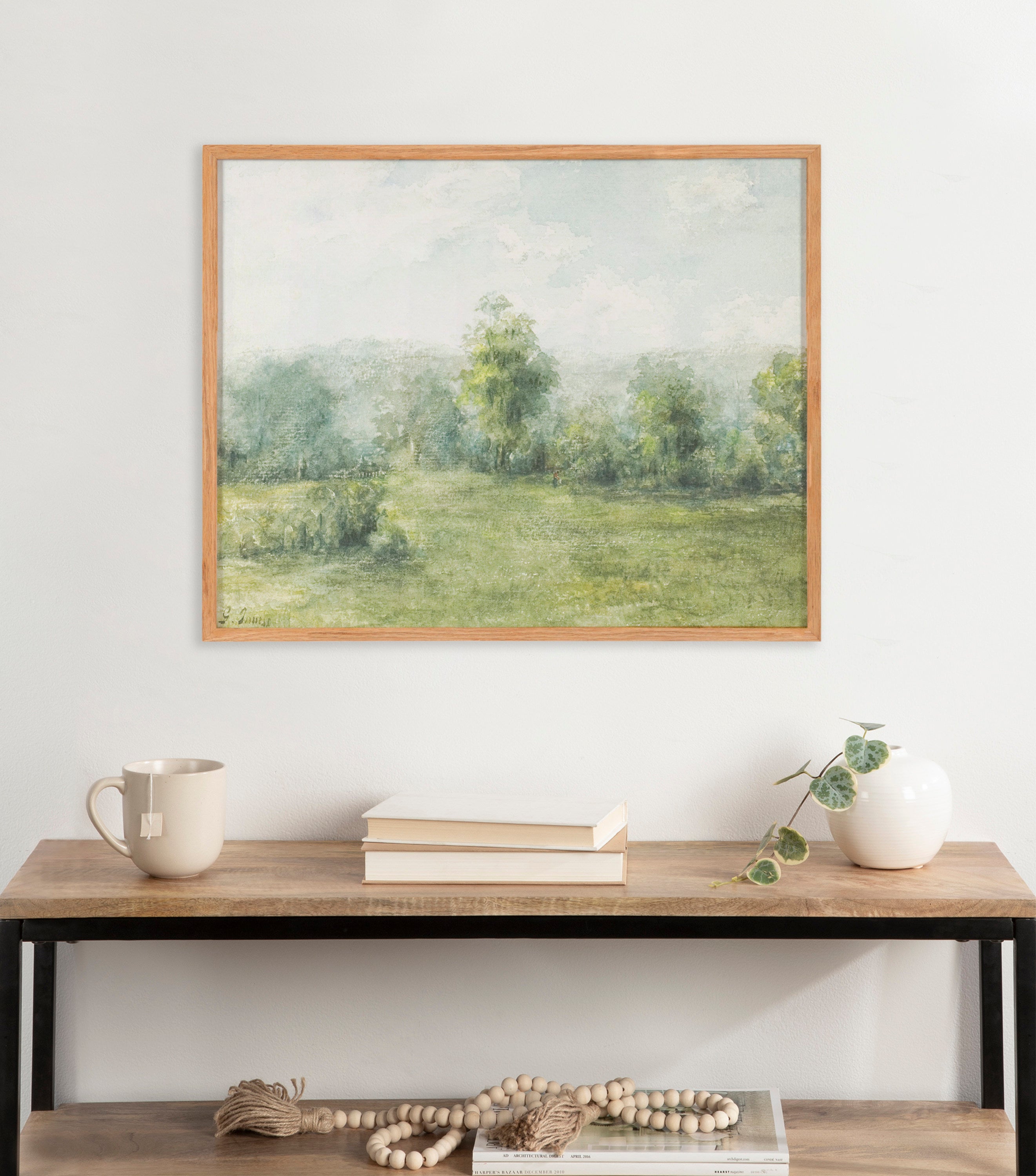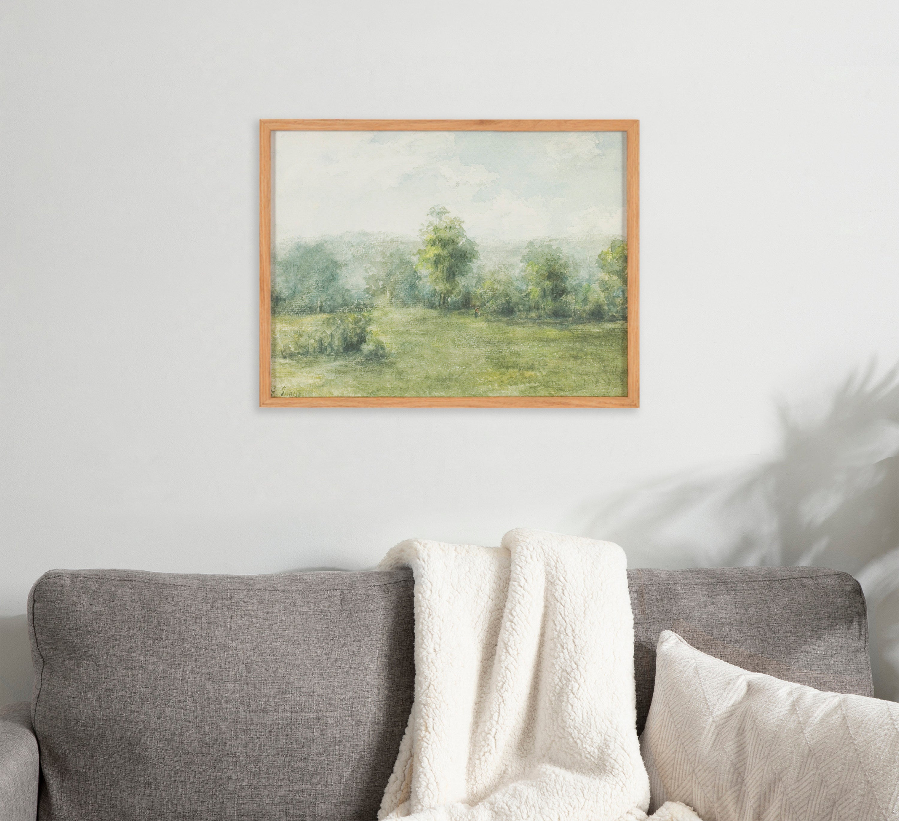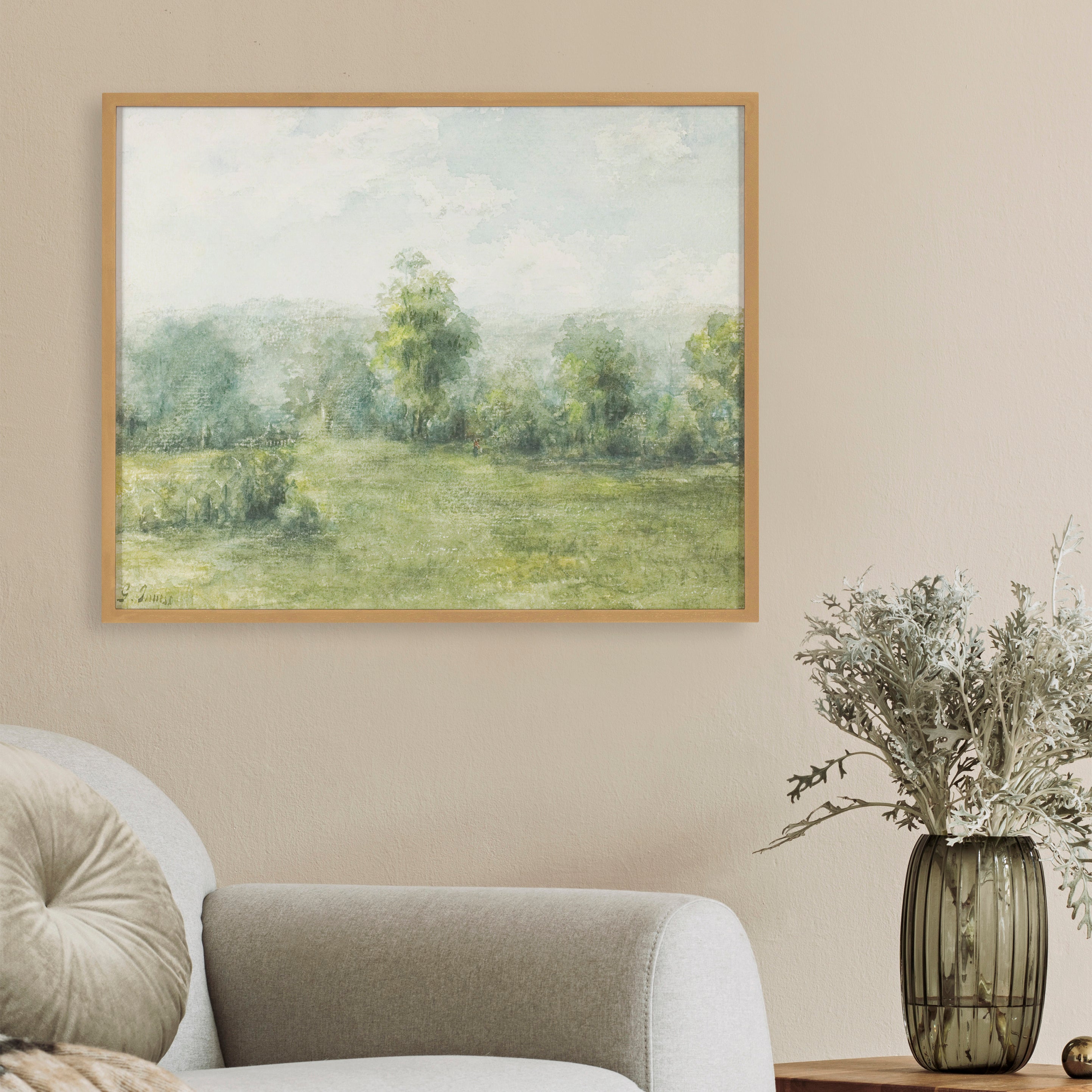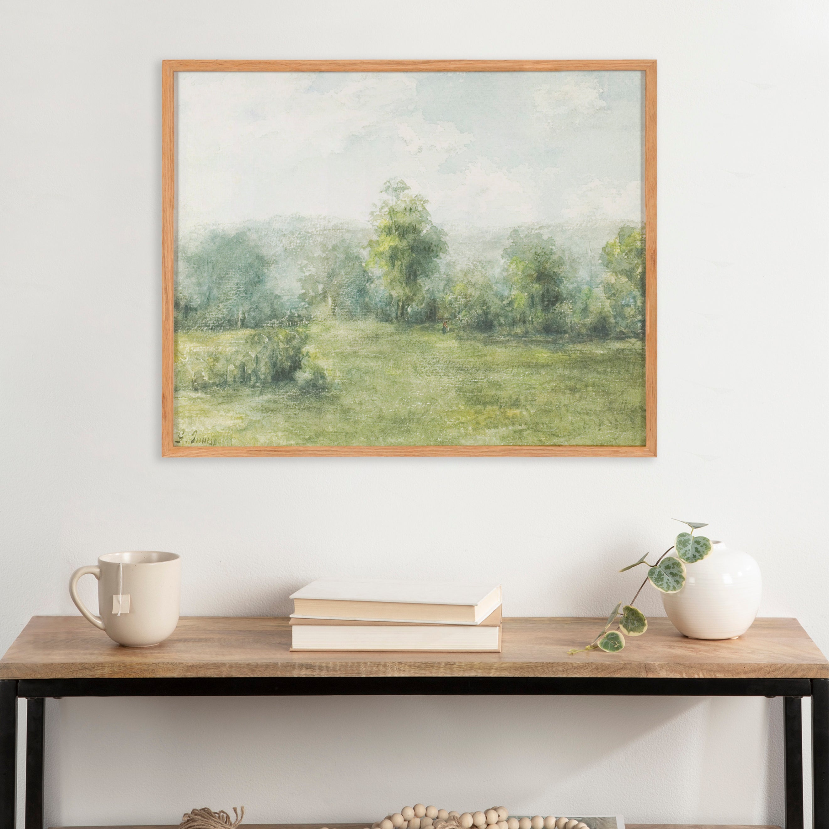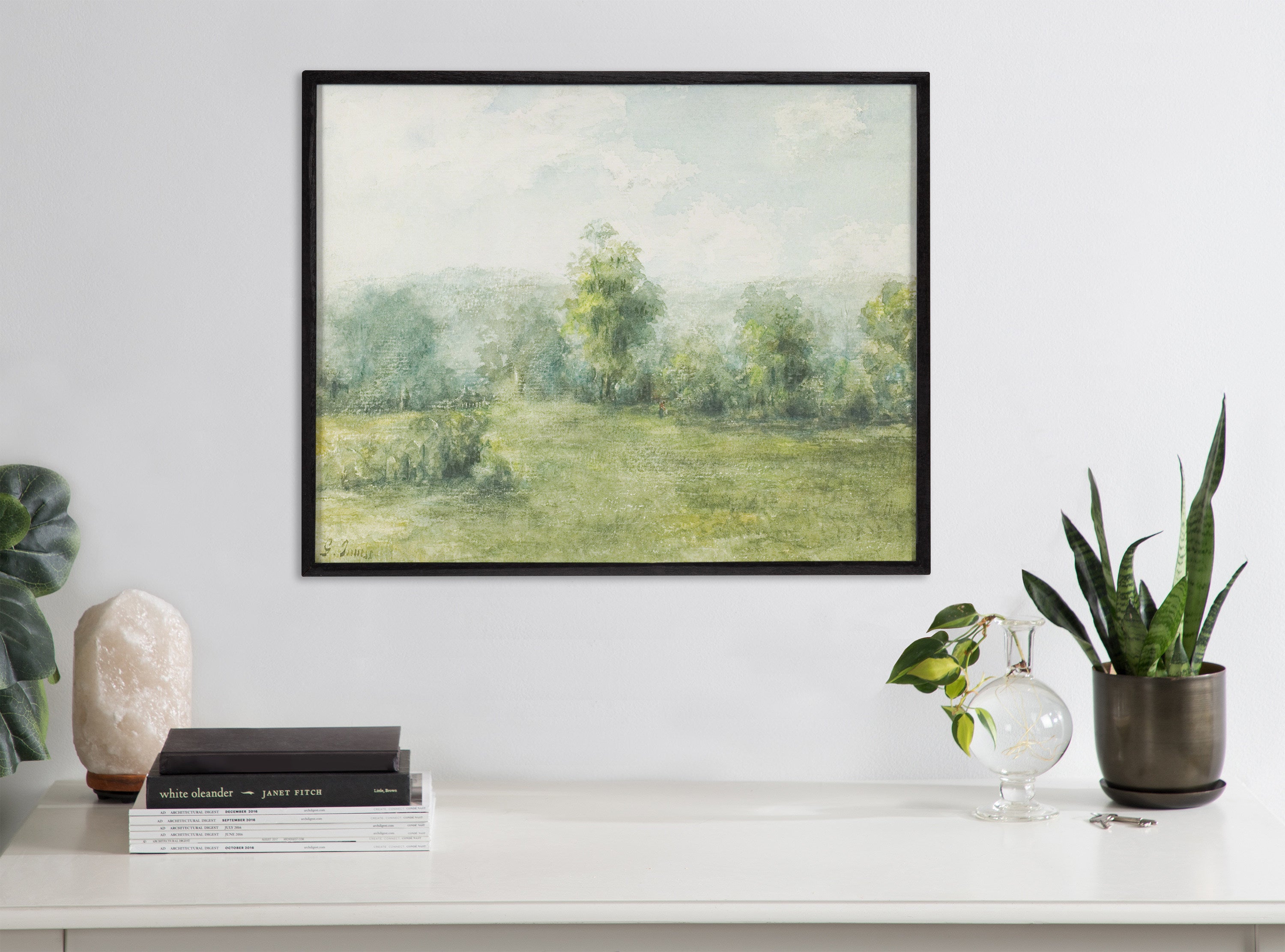 This peaceful landscape by George Inness features soft trees and natural scenery. Printed in the USA in Waunakee, Wisconsin, this modern framed wall art is sure to bring joy to your space. Our design team curates art that will fit perfectly in any room of your home. Printed on semi-gloss paper made of responsibly sourced wood fibers and framed with a simple solid wood gallery frame, this wall art is easy to display on the wall and will match any décor style. Showcase this curated art in your living room, bedroom, home office, kitchen, bathroom, nursery, or anywhere you want to bring a little beauty and charm to your walls. Specializing in home décor, we are continually bringing timeless works of art for the traditional decorator as well as trend-forward pieces for that eclectic art lover. Our high-quality framed wall art also makes excellent gifts for birthdays, holidays, or housewarming parties.