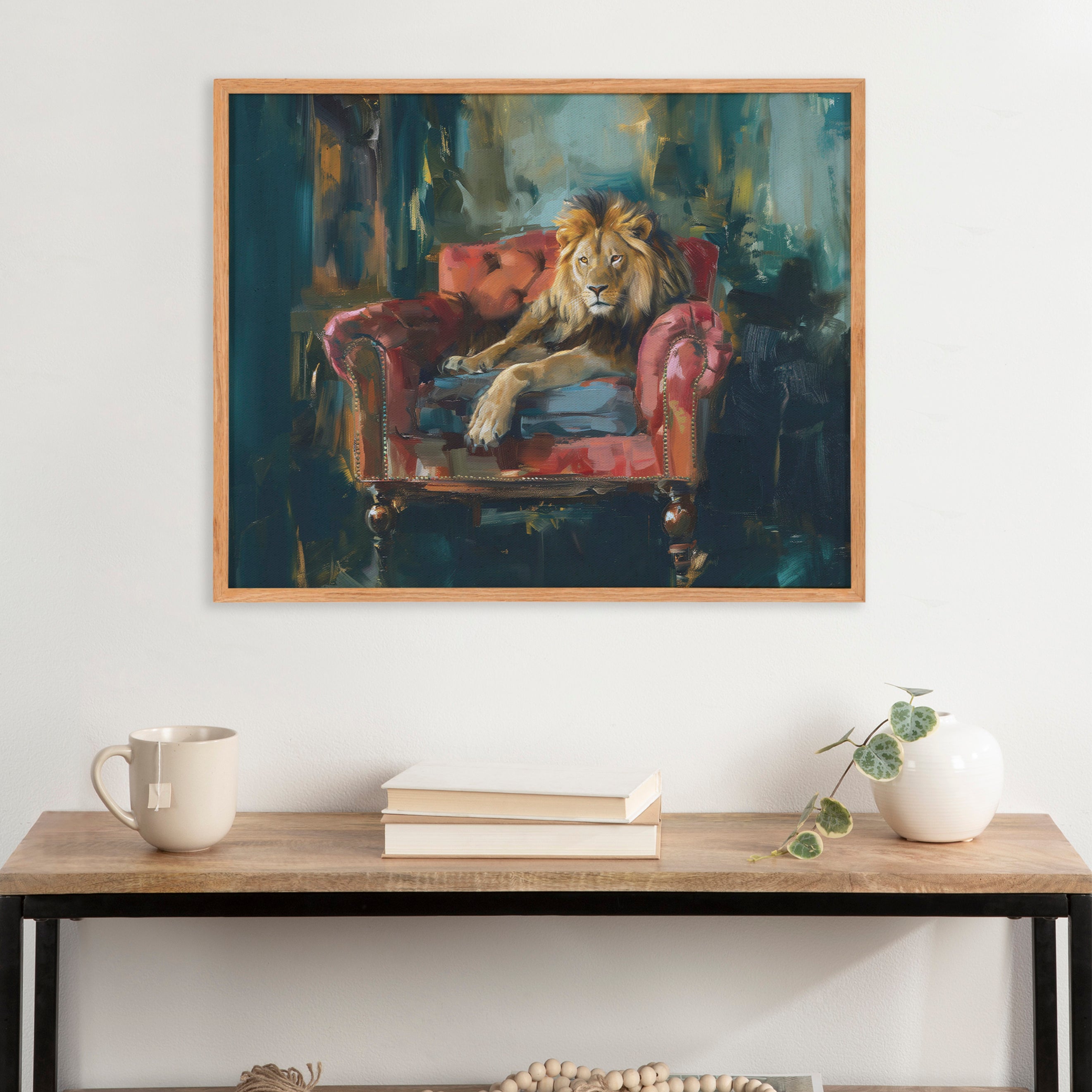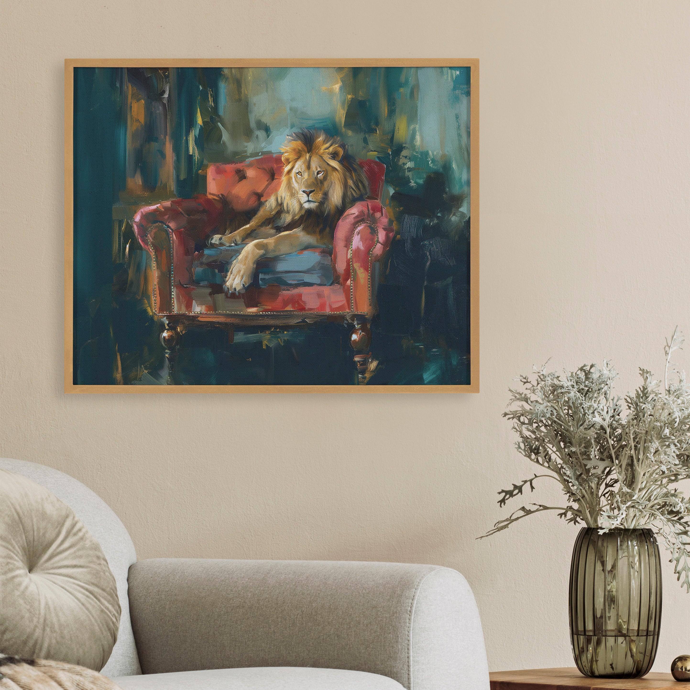 This majestic lion portrait showcases the king of the jungle in rich jewel tones, exuding power and elegance. Printed in the USA in Waunakee, Wisconsin, this modern framed wall art is sure to bring joy to your space. Our design team curates art that will fit perfectly in any room of your home. Printed on semi-gloss paper made of responsibly sourced wood fibers and framed with a simple solid wood gallery frame, this wall art is easy to display on the wall and will match any décor style. Showcase this curated art in your living room, bedroom, home office, kitchen, bathroom, nursery, or anywhere you want to bring a little beauty and charm to your walls. Specializing in home décor, we are continually bringing timeless works of art for the traditional decorator as well as trend-forward pieces for that eclectic art lover. Our high-quality framed wall art also makes excellent gifts for birthdays, holidays, or housewarming parties.