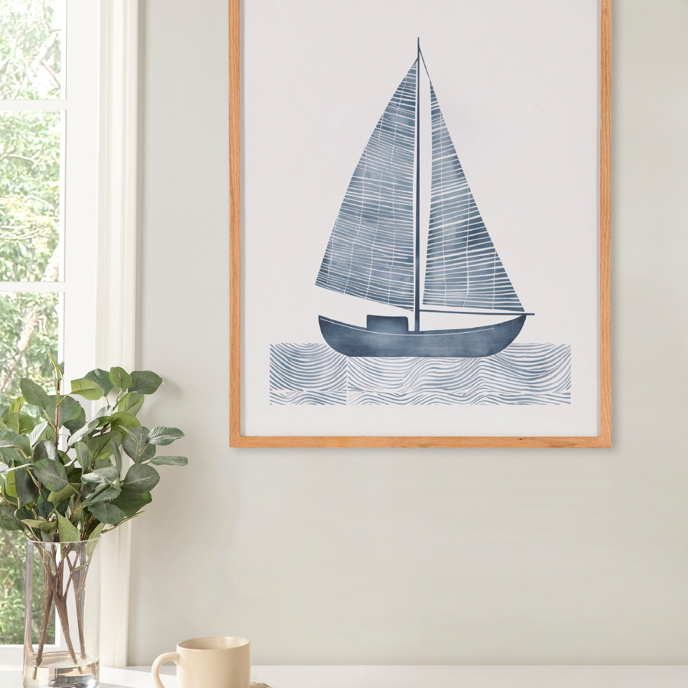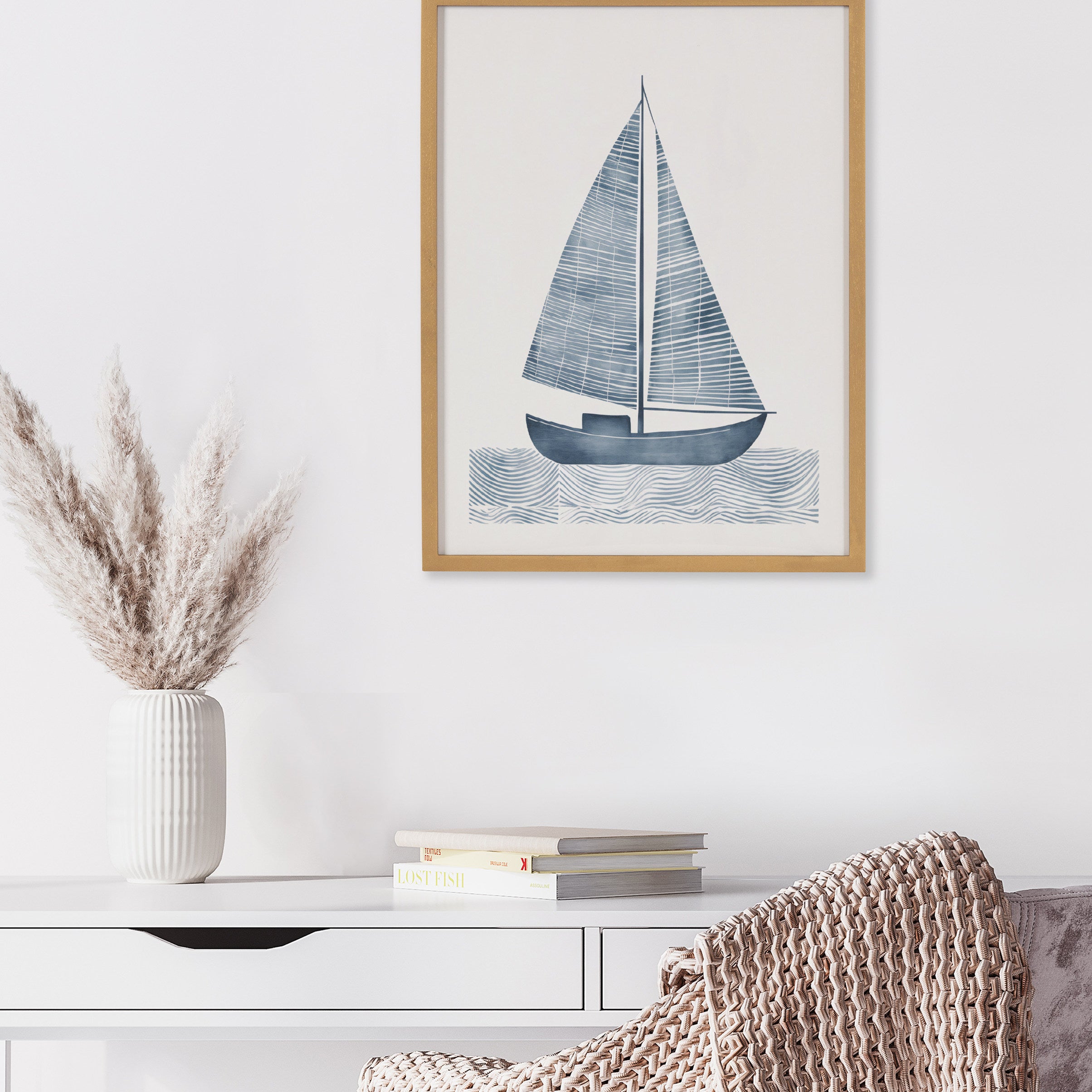 This nautical sailboat artwork captures the essence of serene ocean life. Printed in the USA in Waunakee, Wisconsin, this modern framed wall art is sure to bring joy to your space. Our design team curates art that will fit perfectly in any room of your home. Printed on semi-gloss paper made of responsibly sourced wood fibers and framed with a simple solid wood gallery frame, this wall art is easy to display on the wall and will match any décor style. Showcase this curated art in your living room, bedroom, home office, kitchen, bathroom, nursery, or anywhere you want to bring a little beauty and charm to your walls. Specializing in home décor, we are continually bringing timeless works of art for the traditional decorator as well as trend-forward pieces for that eclectic art lover. Our high-quality framed wall art also makes excellent gifts for birthdays, holidays, or housewarming parties.